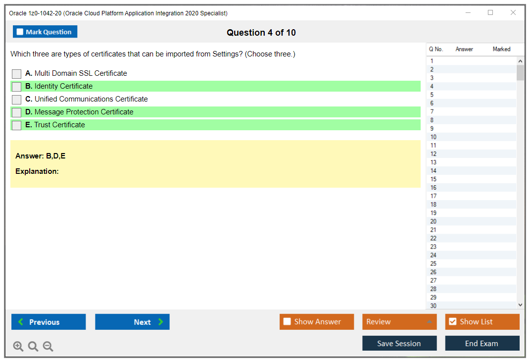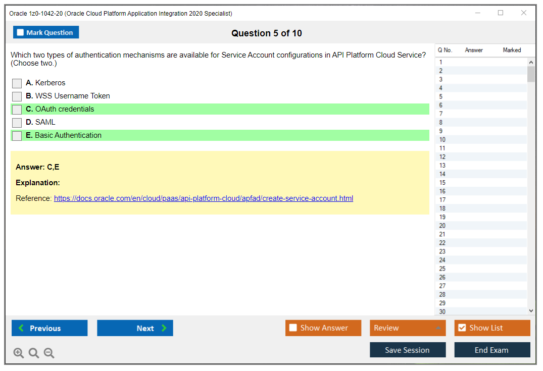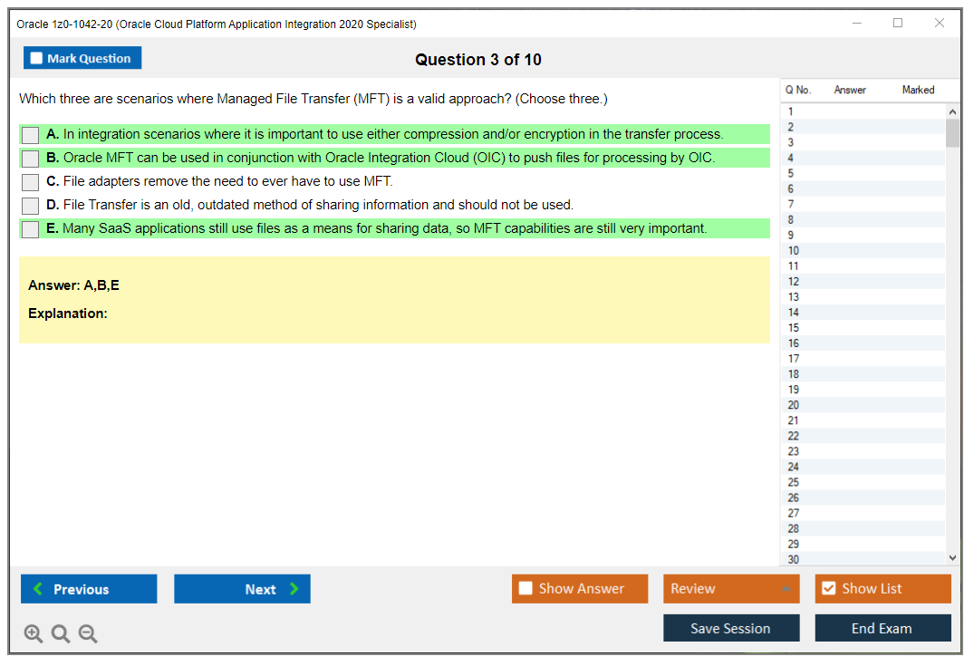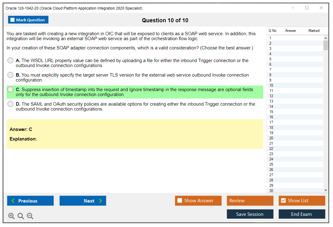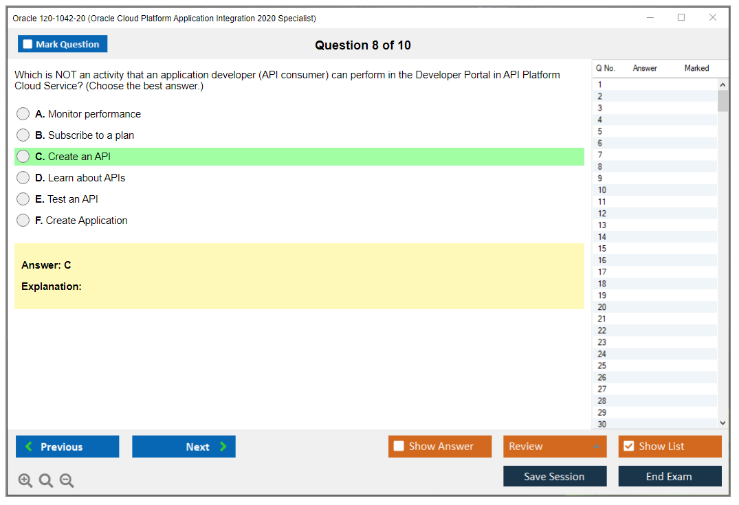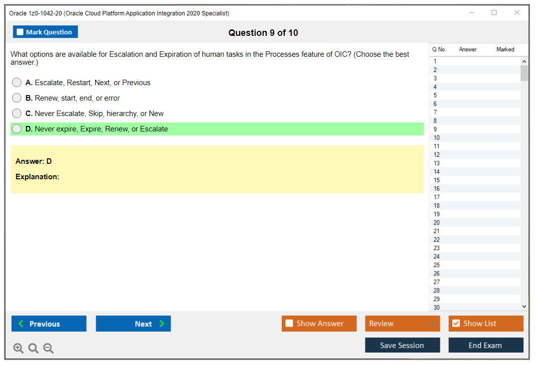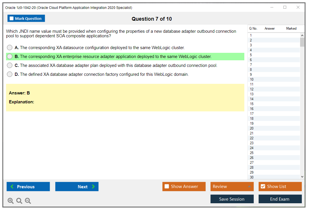 C'est maintenant aussi facile que de se promener dans un parc ! Utilisez uniquement les questions-réponses faciles de DumpsArena pour 1z0-1042-20 Oracle Cloud Platform Application Integration 2020 Specialist qui peuvent vous garantir un succès dès la première fois, avec une garantie de remboursement à 100 % ! Des milliers de professionnels de l'informatique ont déjà utilisé ces questions-réponses 1z0-1042-20 et ont obtenu leur certification de rêve dès la première tentative.