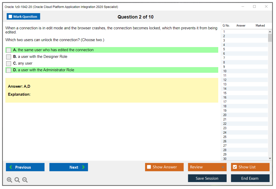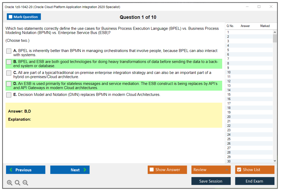 1z0-1042-20: Oracle Cloud Platform Application Integration 2020 Specialist Lernmaterial und Test Engine