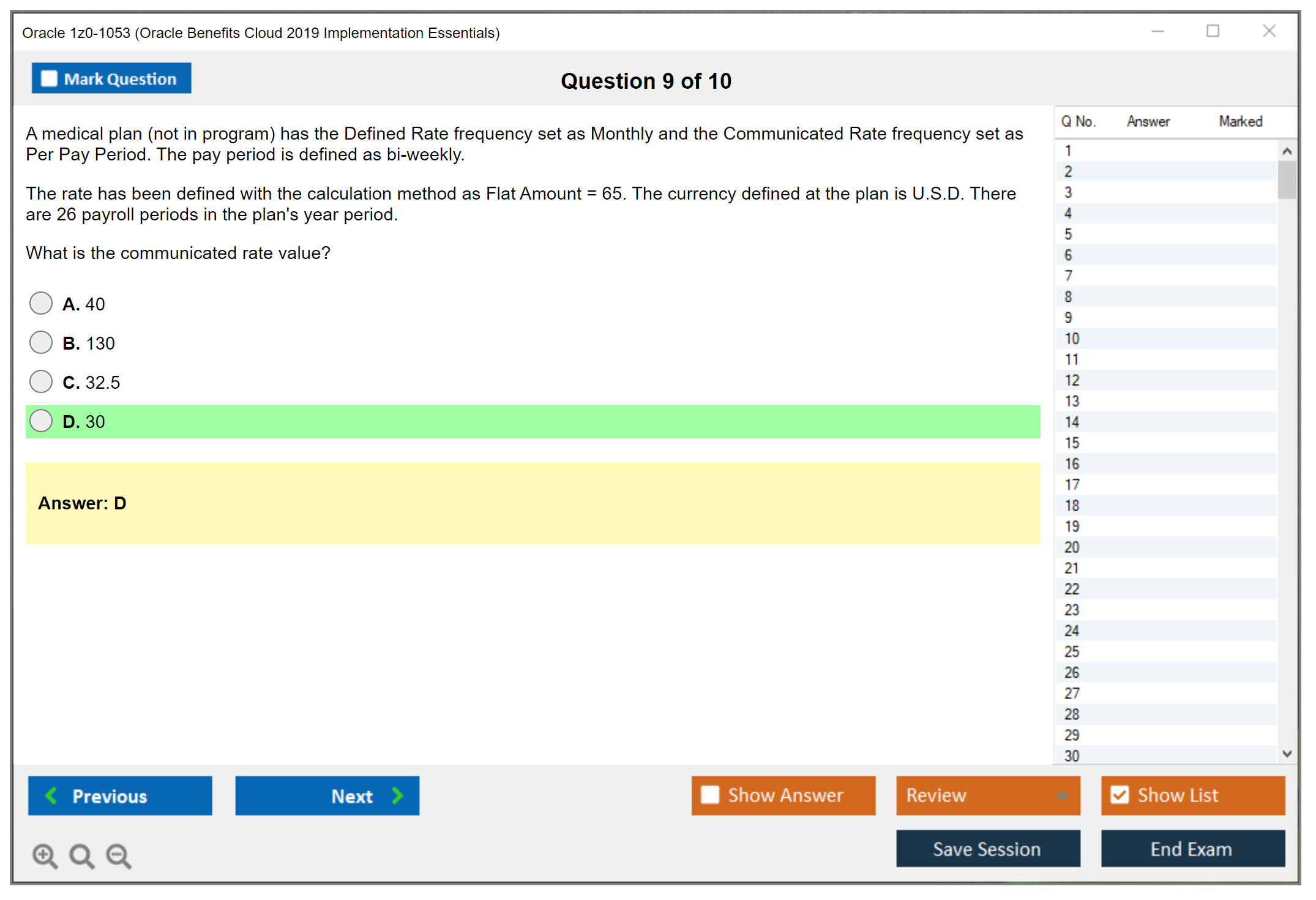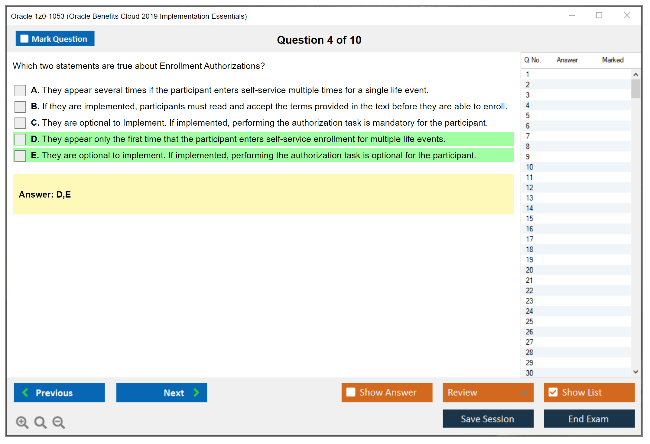 C'est maintenant aussi facile que de se promener dans un parc ! Utilisez uniquement les questions-réponses faciles de DumpsArena pour 1z0-1053 Oracle Benefits Cloud 2019 Implementation Essentials qui peuvent vous garantir un succès dès la première fois, avec une garantie de remboursement à 100 % ! Des milliers de professionnels de l'informatique ont déjà utilisé ces questions-réponses 1z0-1053 et ont obtenu leur certification de rêve dès la première tentative.