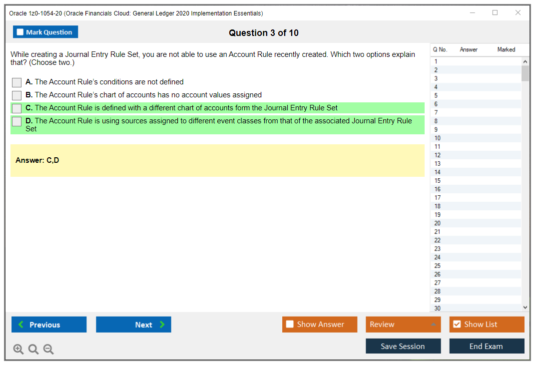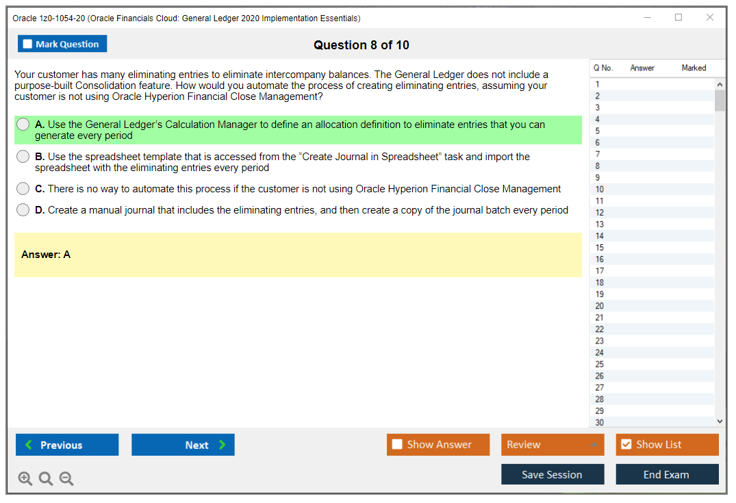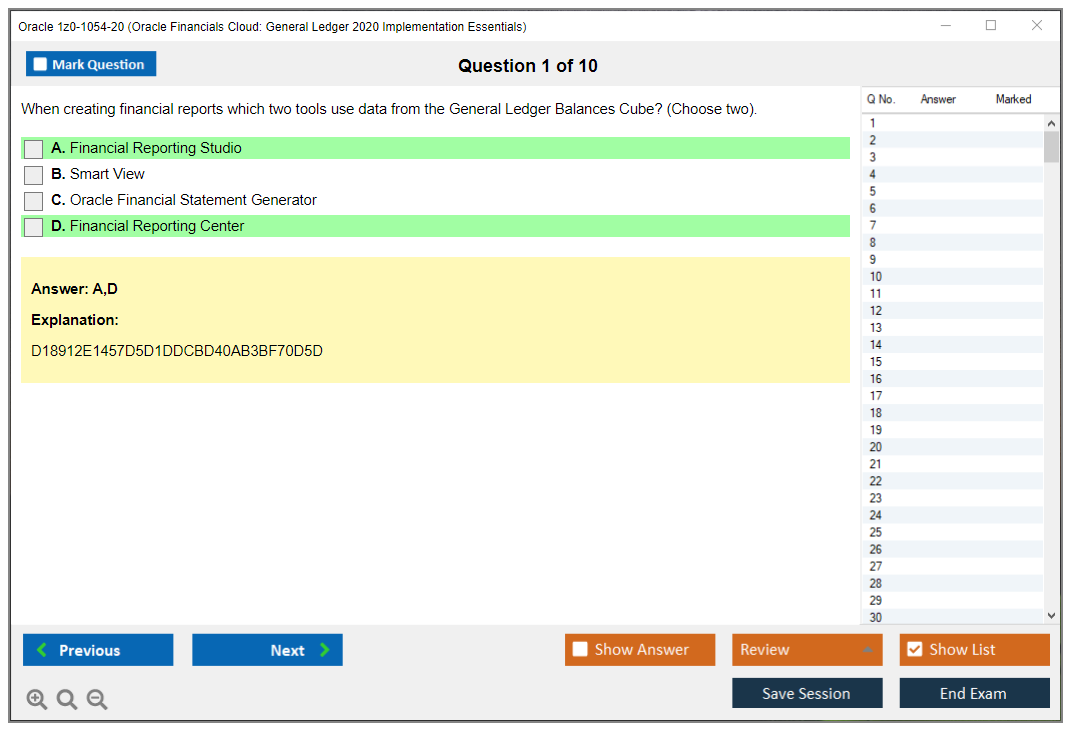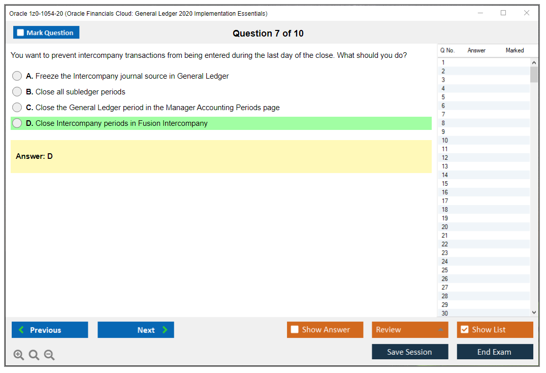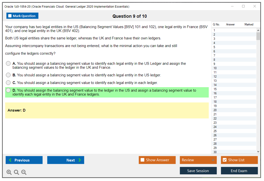 C'est maintenant aussi facile que de se promener dans un parc ! Utilisez uniquement les questions-réponses faciles de DumpsArena pour 1z0-1054-20 Oracle Financials Cloud: General Ledger 2020 Implementation Essentials qui peuvent vous garantir un succès dès la première fois, avec une garantie de remboursement à 100 % ! Des milliers de professionnels de l'informatique ont déjà utilisé ces questions-réponses 1z0-1054-20 et ont obtenu leur certification de rêve dès la première tentative.