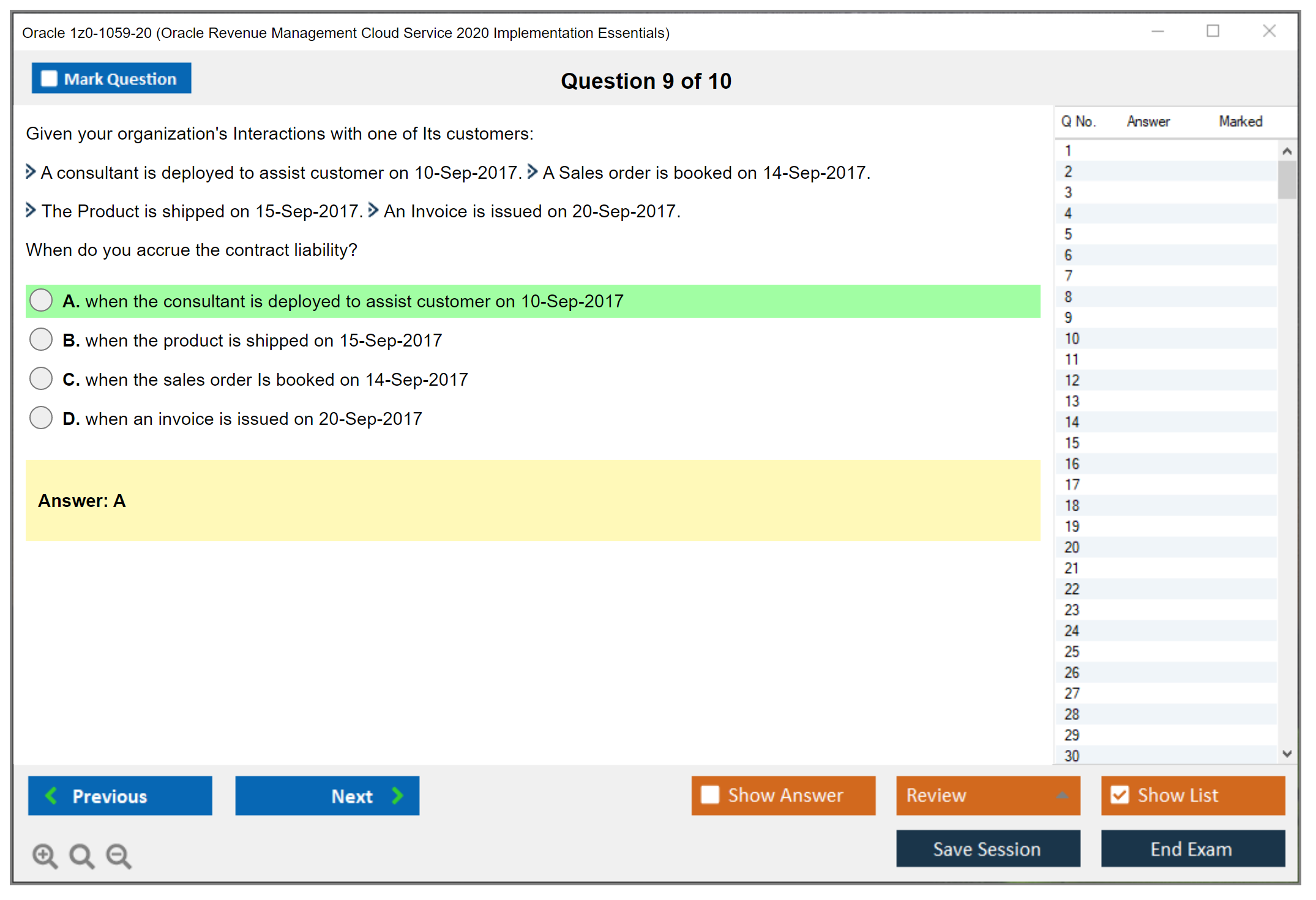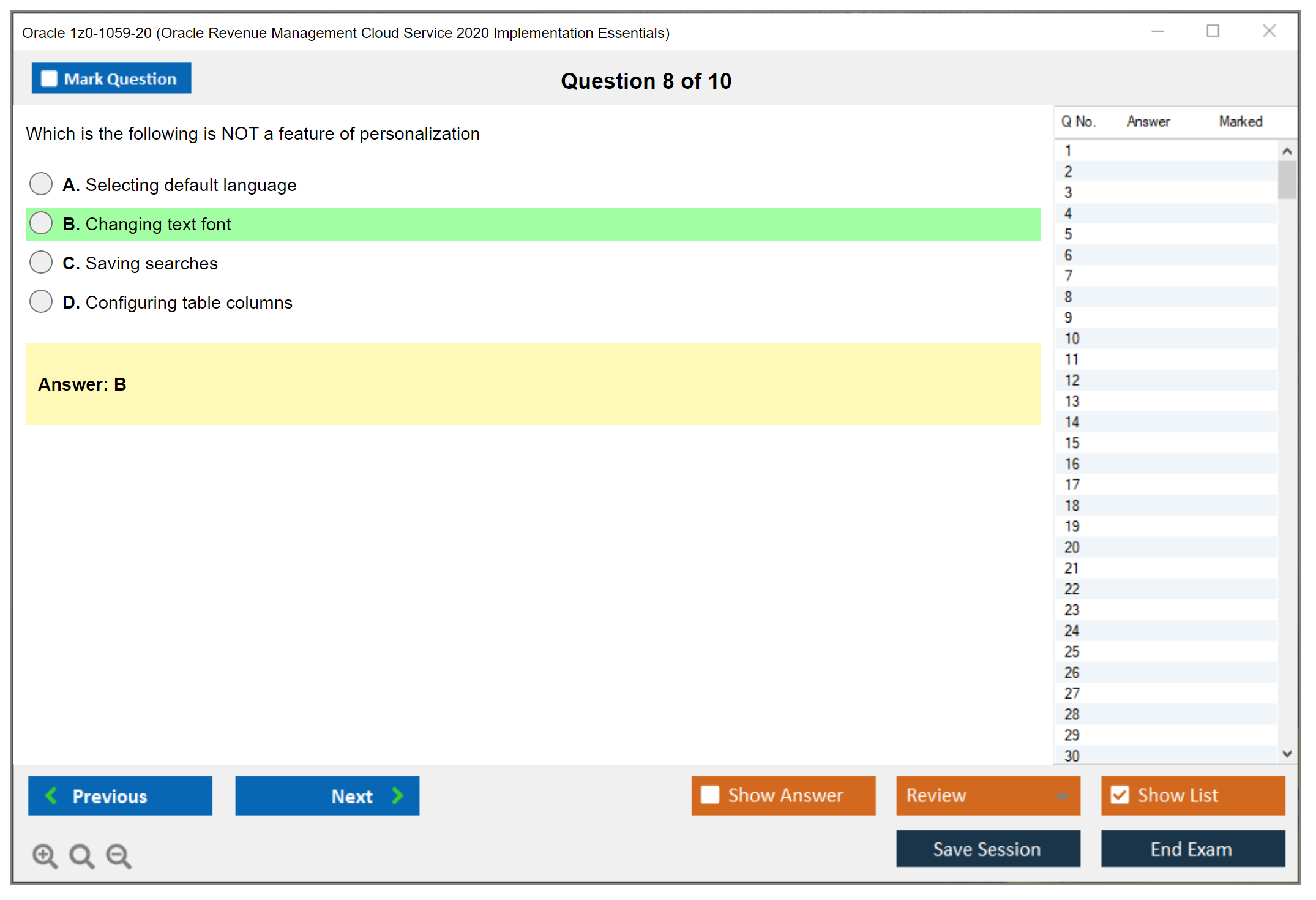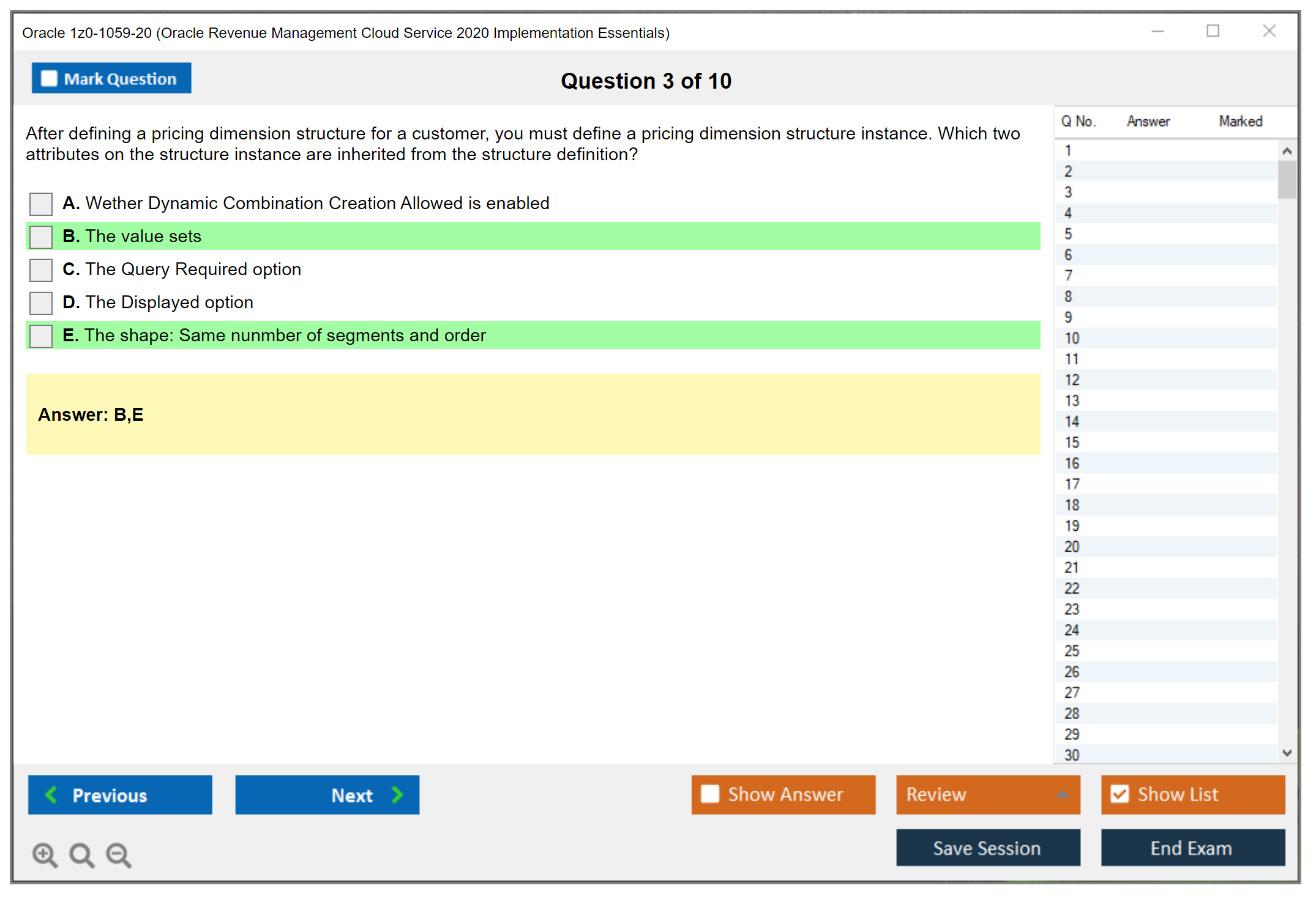 C'est maintenant aussi facile que de se promener dans un parc ! Utilisez uniquement les questions-réponses faciles de DumpsArena pour 1z0-1059-20 Oracle Revenue Management Cloud Service 2020 Implementation Essentials qui peuvent vous garantir un succès dès la première fois, avec une garantie de remboursement à 100 % ! Des milliers de professionnels de l'informatique ont déjà utilisé ces questions-réponses 1z0-1059-20 et ont obtenu leur certification de rêve dès la première tentative.