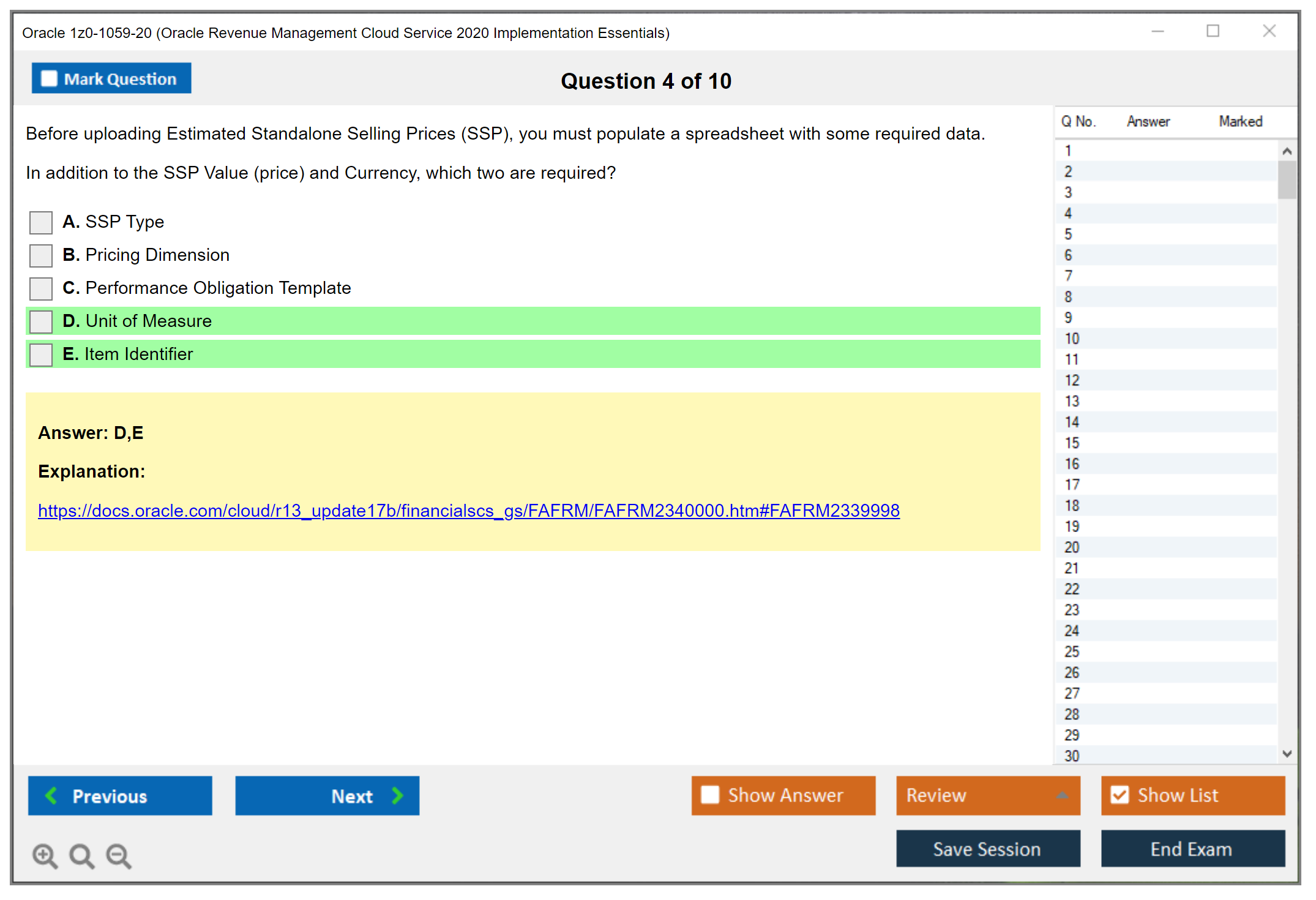 Hinweis: Oracle 1z0-1059-20 (Oracle Revenue Management Cloud Service 2020 Implementation Essentials) wird keine neuen Updates mehr erhalten.