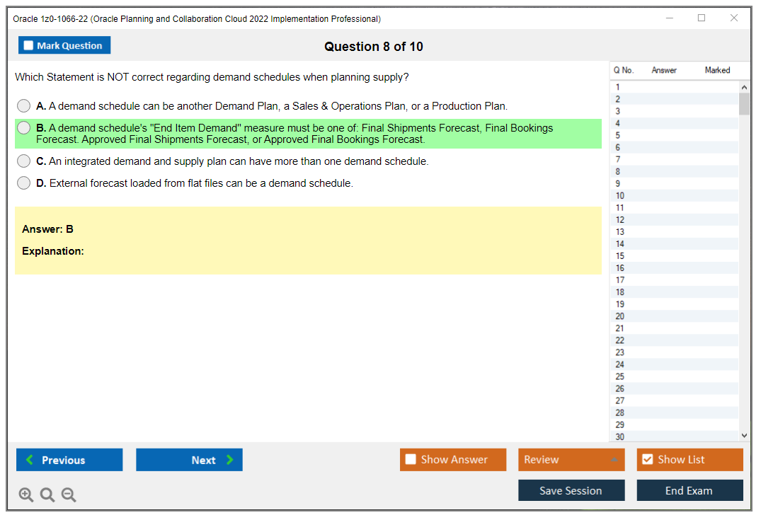 Hinweis: Oracle 1z0-1066-22 (Oracle Planning and Collaboration Cloud 2022 Implementation Professional) wird keine neuen Updates mehr erhalten.