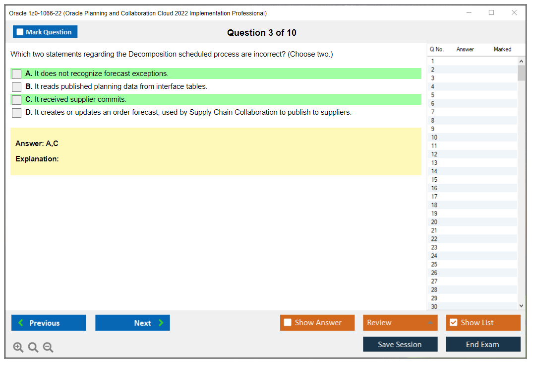 C'est maintenant aussi facile que de se promener dans un parc ! Utilisez uniquement les questions-réponses faciles de DumpsArena pour 1z0-1066-22 Oracle Planning and Collaboration Cloud 2022 Implementation Professional qui peuvent vous garantir un succès dès la première fois, avec une garantie de remboursement à 100 % ! Des milliers de professionnels de l'informatique ont déjà utilisé ces questions-réponses 1z0-1066-22 et ont obtenu leur certification de rêve dès la première tentative.