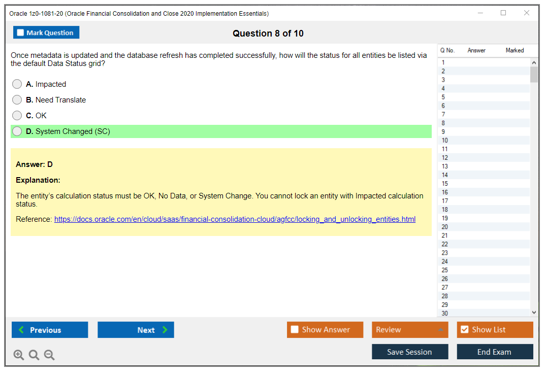 1z0-1081-20: Oracle Financial Consolidation and Close 2020 Implementation Essentials Lernmaterial und Test Engine