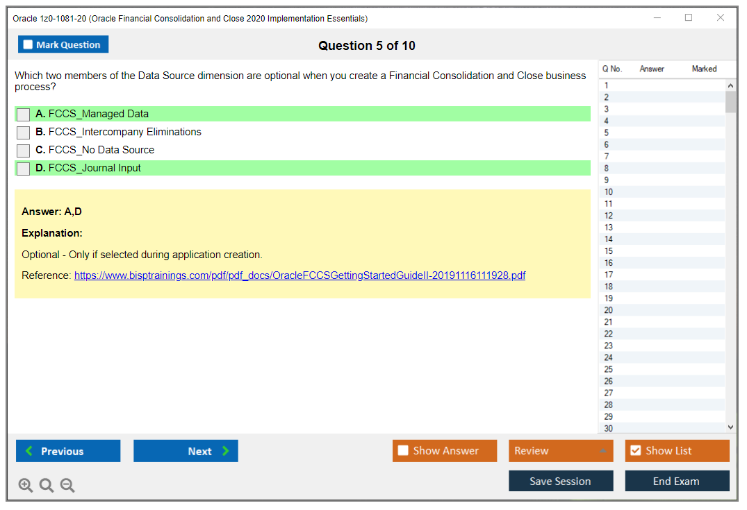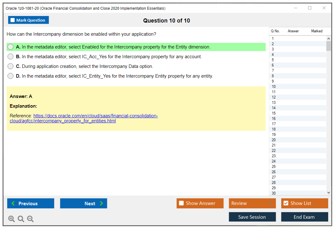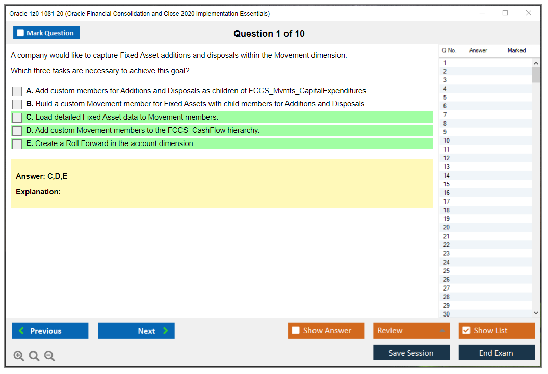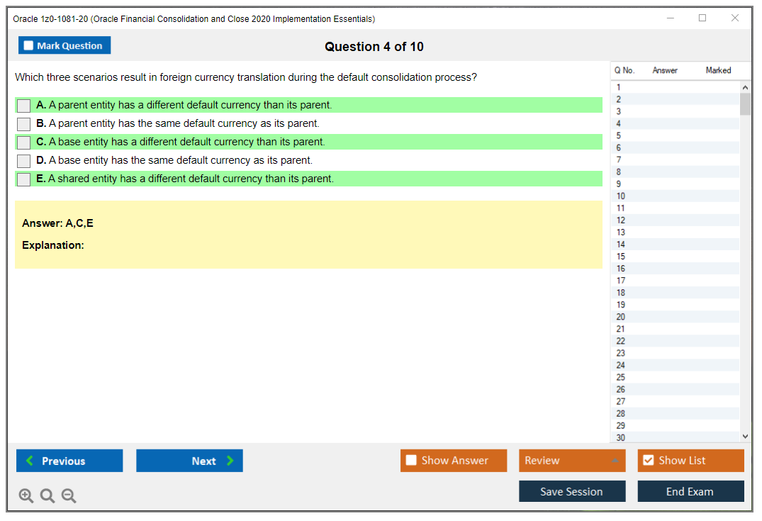 C'est maintenant aussi facile que de se promener dans un parc ! Utilisez uniquement les questions-réponses faciles de DumpsArena pour 1z0-1081-20 Oracle Financial Consolidation and Close 2020 Implementation Essentials qui peuvent vous garantir un succès dès la première fois, avec une garantie de remboursement à 100 % ! Des milliers de professionnels de l'informatique ont déjà utilisé ces questions-réponses 1z0-1081-20 et ont obtenu leur certification de rêve dès la première tentative.