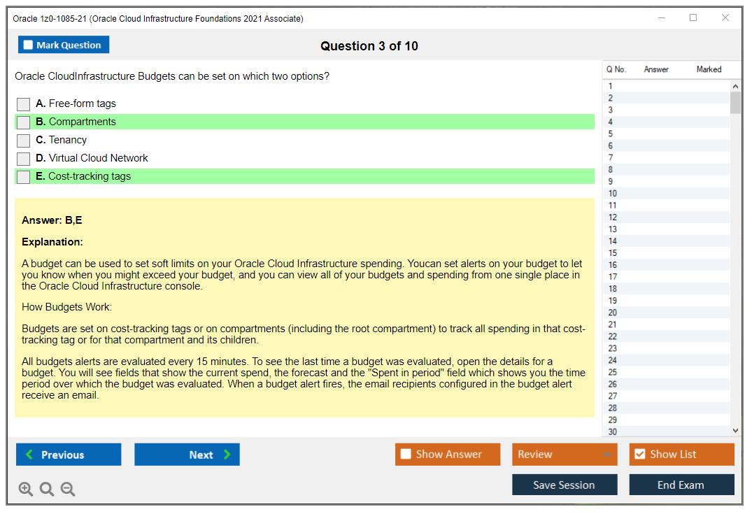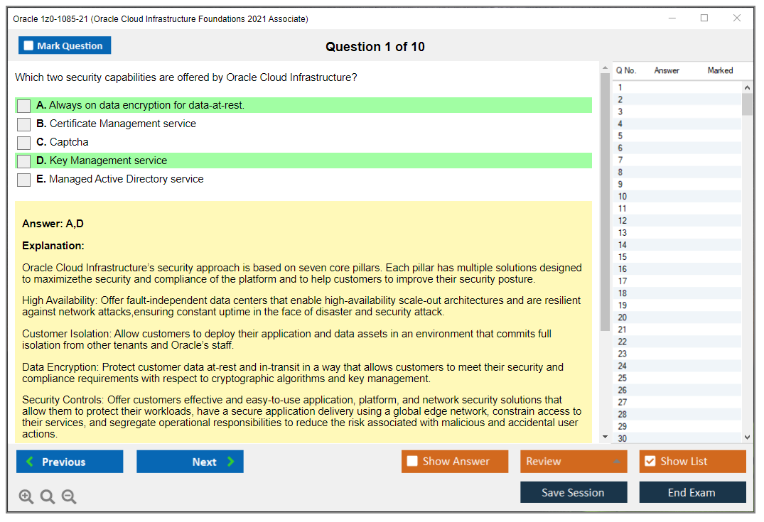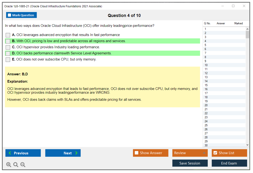 Il n'a jamais été aussi facile de se frayer un chemin vers la qualification professionnelle la plus précieuse au monde que maintenant ! Les questions-réponses de DumpsArena pour Oracle 1z0-1085-21 Oracle Cloud Infrastructure Foundations 2021 Associate sont le choix le plus approprié pour garantir votre succès en une seule fois. Vous pouvez certainement répondre à toutes les questions de l'examen en faisant régulièrement nos fichiers d'examen Oracle 1z0-1085-21. De plus, en affinant vos compétences, pratiquez des tests de simulation à l'aide de notre logiciel Testing Engine de DumpsArena pour Oracle 1z0-1085-21 et maîtrisez votre peur de l'échec à l'examen. Nos fichiers de Oracle 1z0-1085-21 sont les plus précis, fiables et efficaces pour déterminer la meilleure option pour votre temps et votre argent.