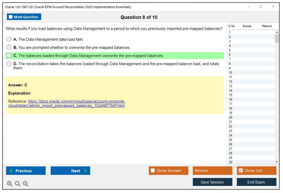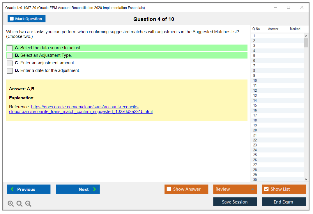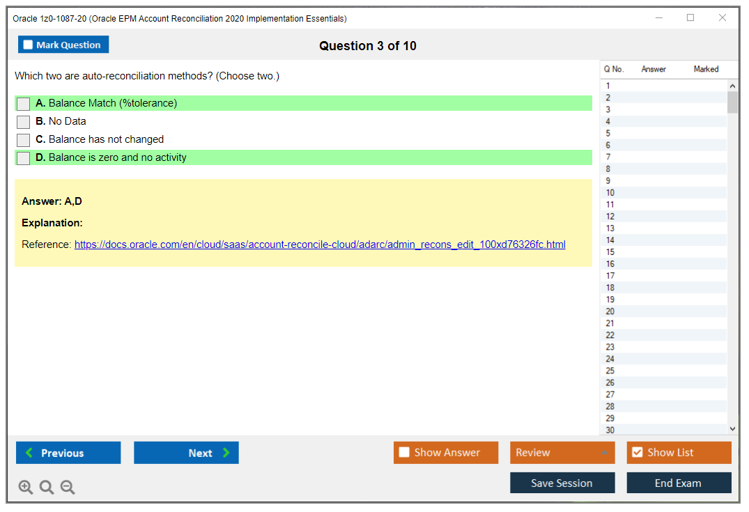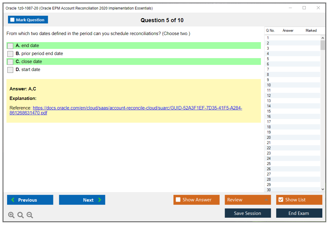 1z0-1087-20: Oracle EPM Account Reconciliation 2020 Implementation Essentials Lernmaterial und Test Engine