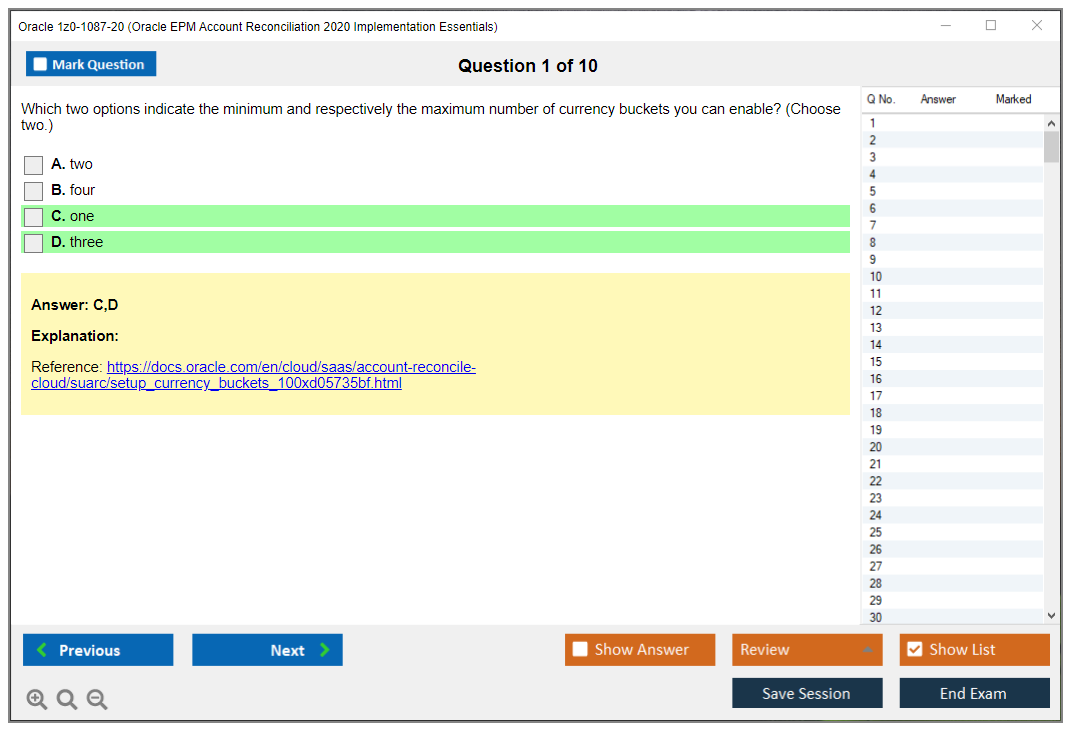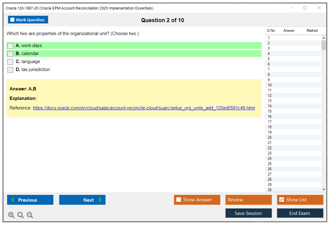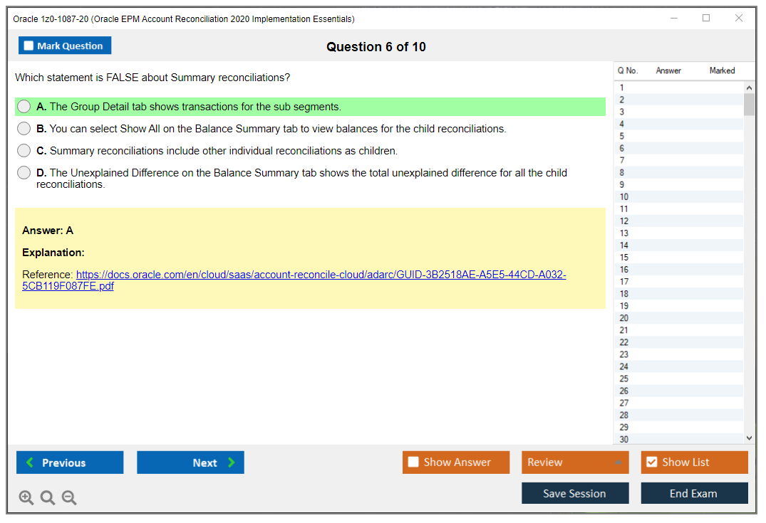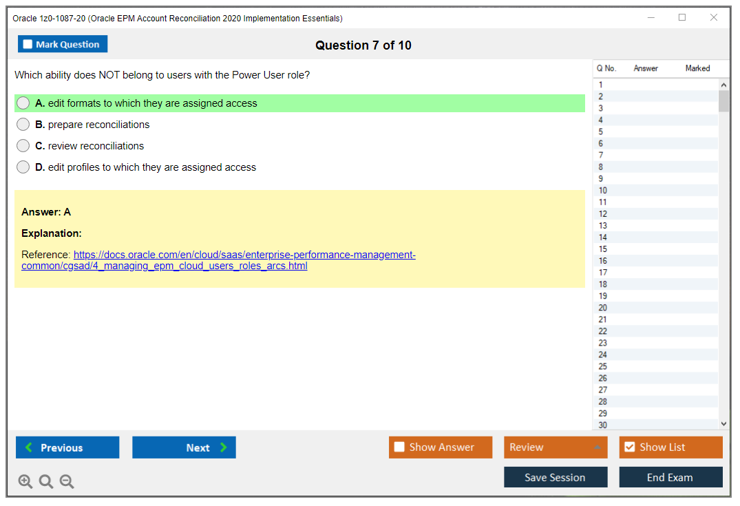 1z0-1087-20: Oracle EPM Account Reconciliation 2020 Implementation Essentials Lernmaterial und Test Engine