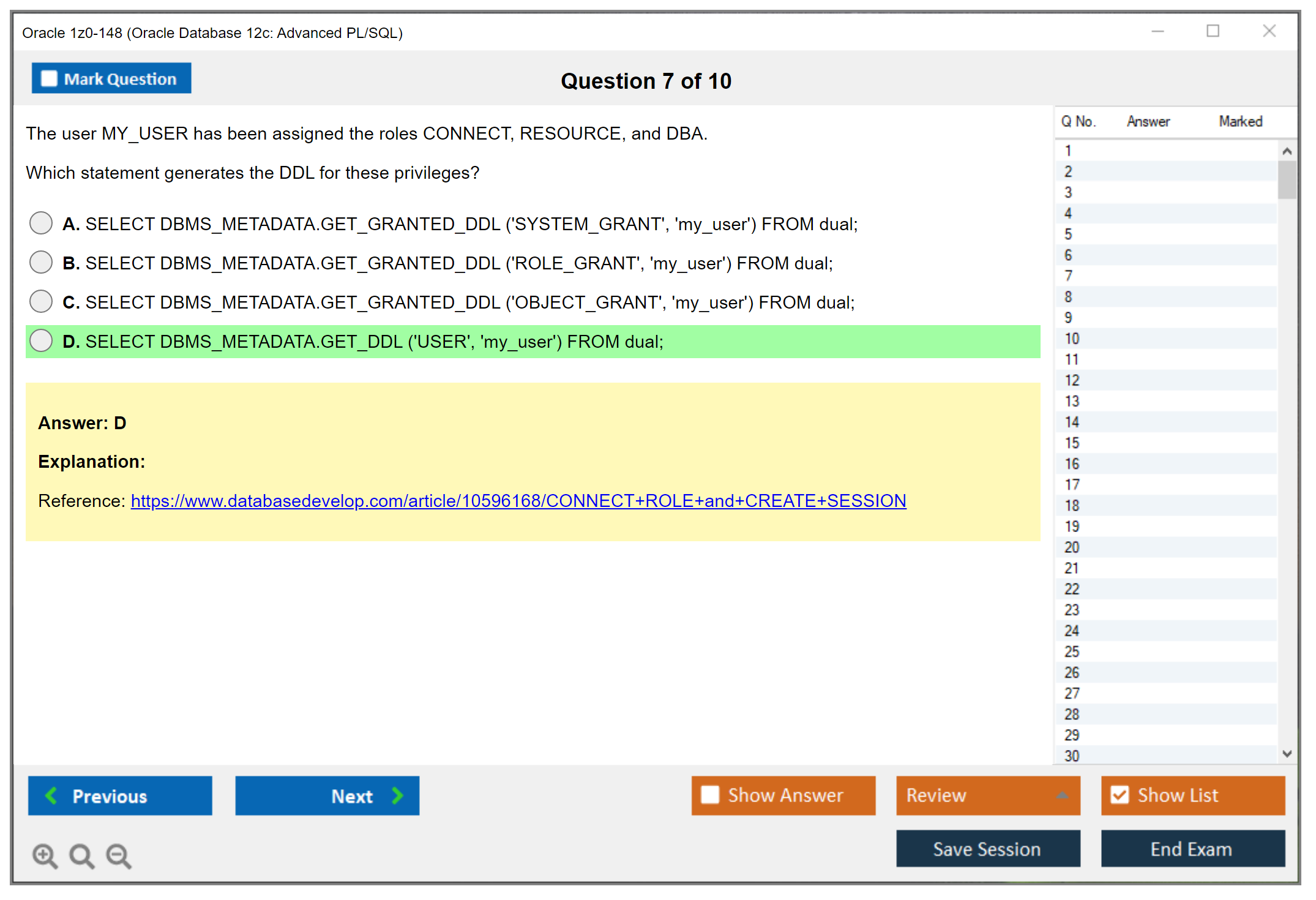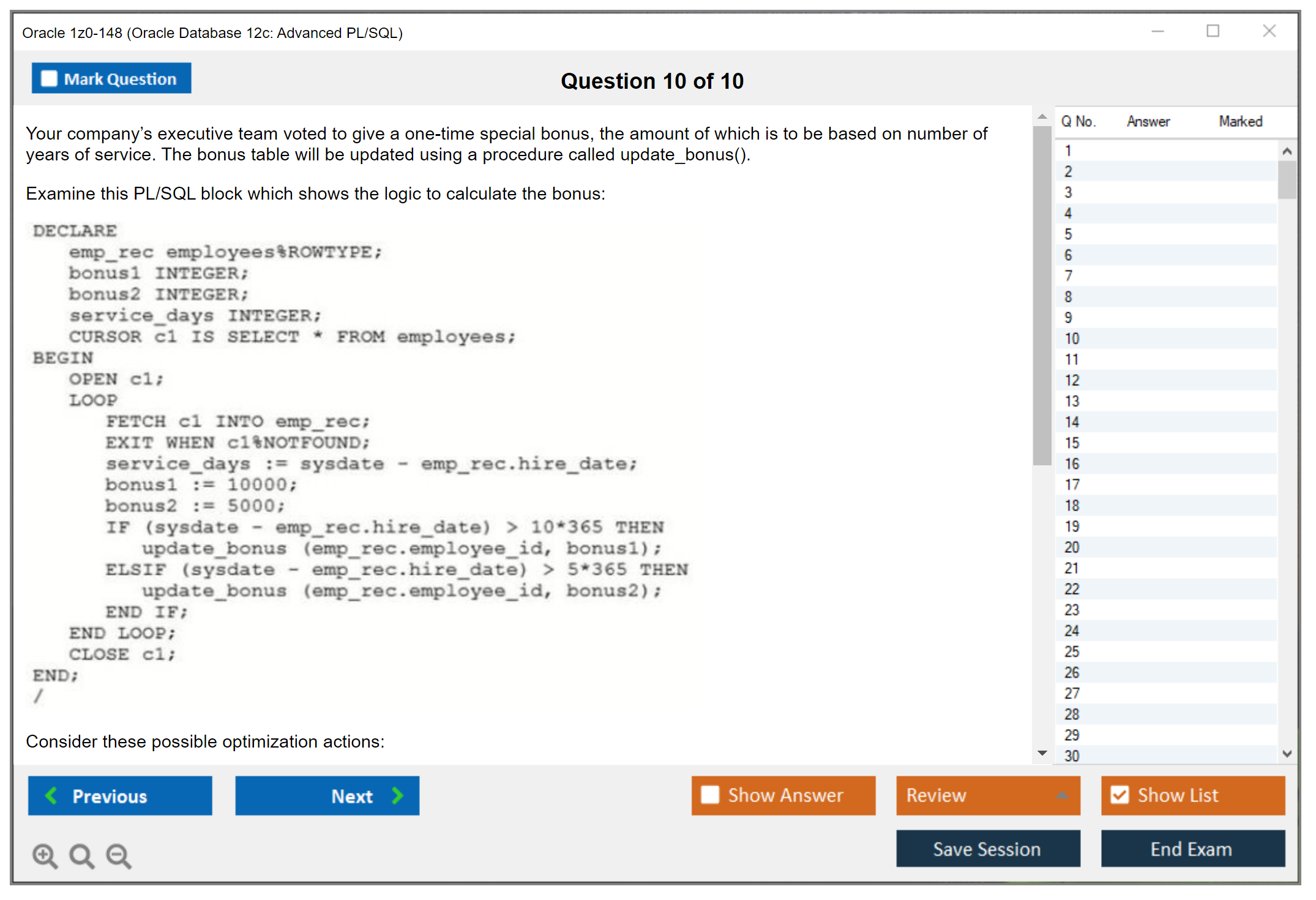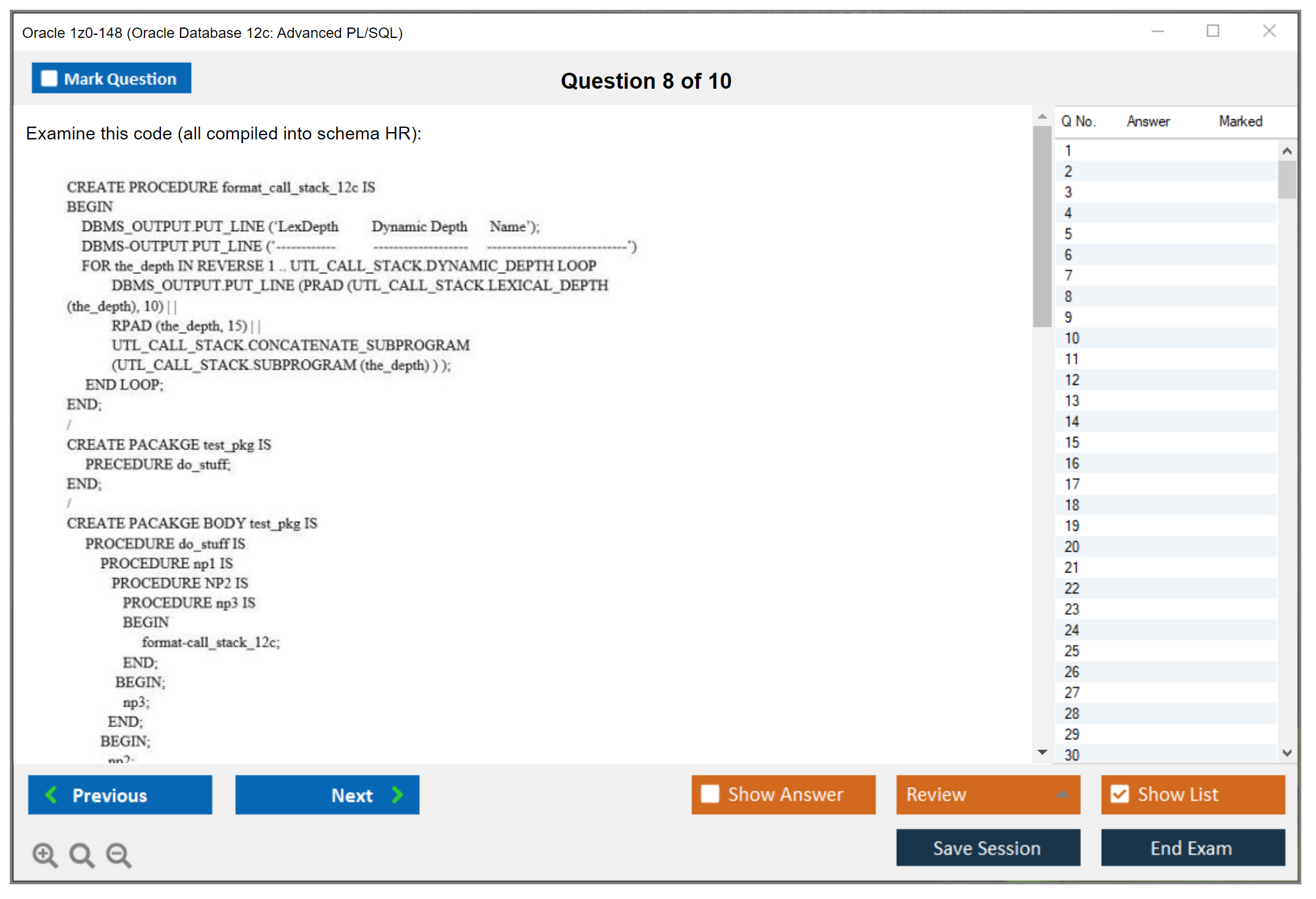 C'est maintenant aussi facile que de se promener dans un parc ! Utilisez uniquement les questions-réponses faciles de DumpsArena pour 1z0-148 Oracle Database 12c: Advanced PL/SQL qui peuvent vous garantir un succès dès la première fois, avec une garantie de remboursement à 100 % ! Des milliers de professionnels de l'informatique ont déjà utilisé ces questions-réponses 1z0-148 et ont obtenu leur certification de rêve dès la première tentative.