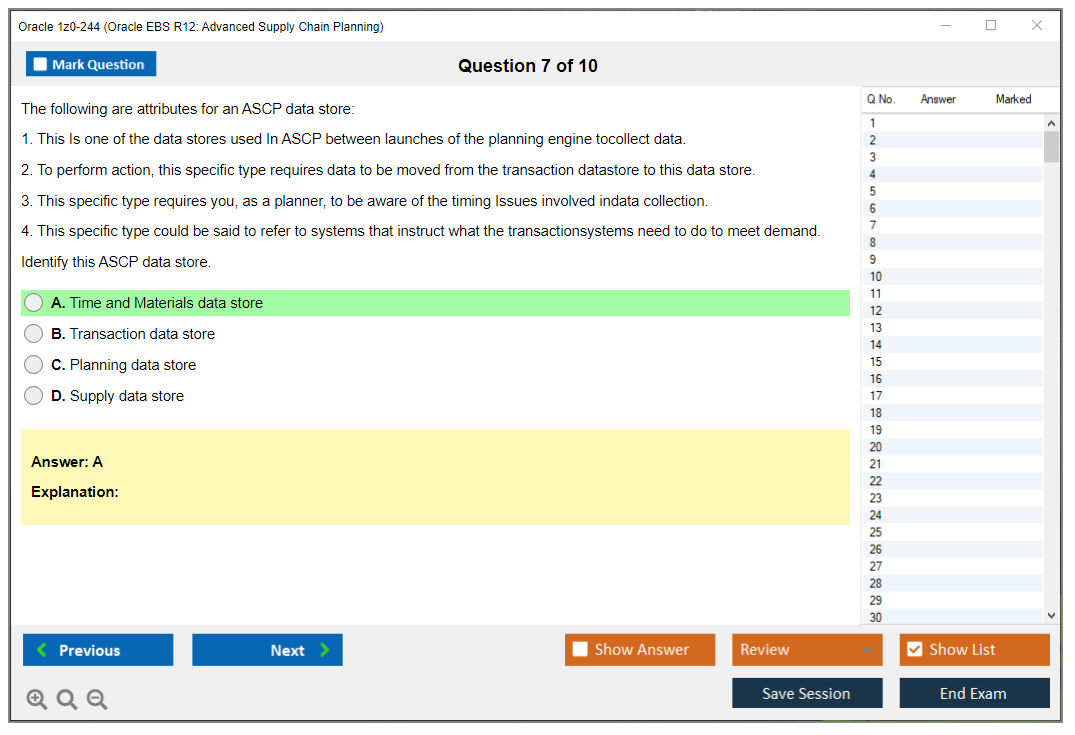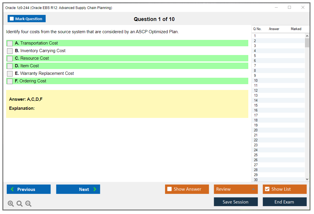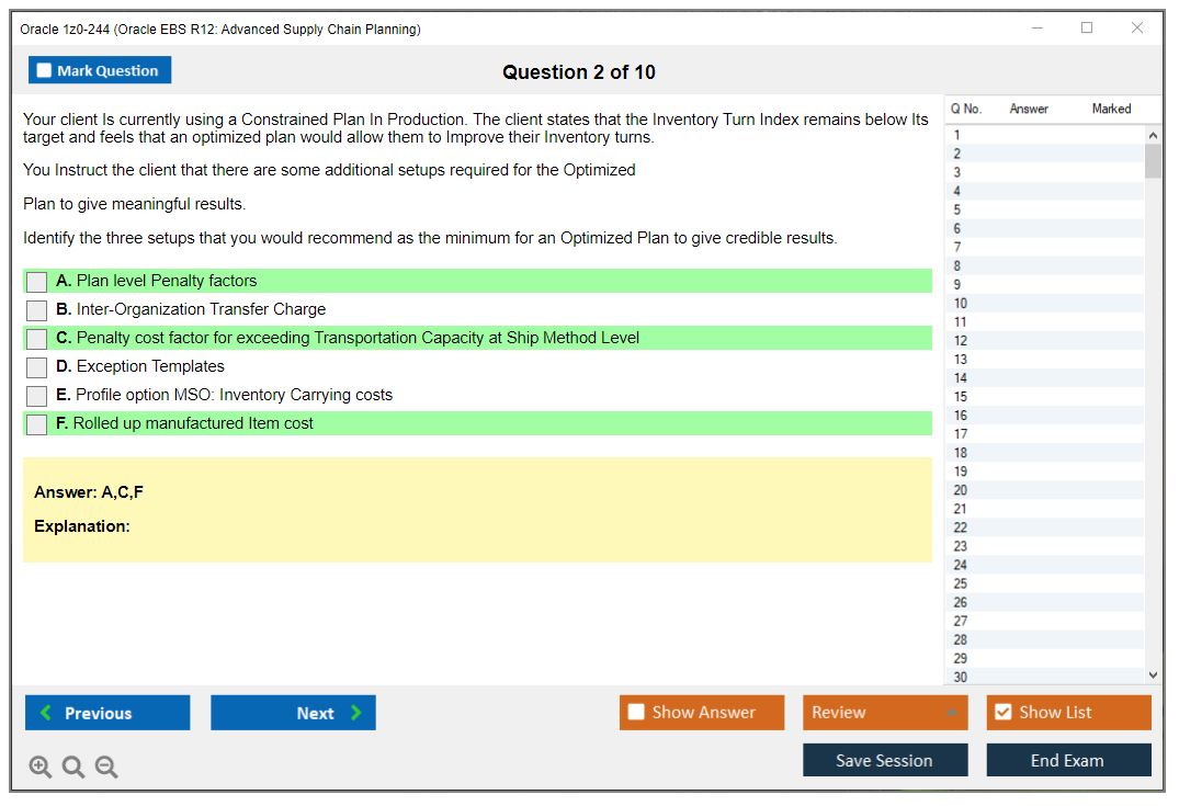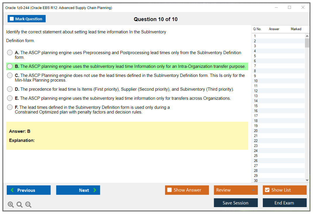 1z0-244: Oracle EBS R12: Advanced Supply Chain Planning Lernmaterial und Test Engine