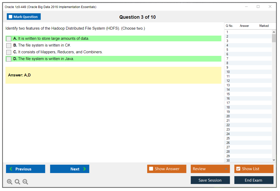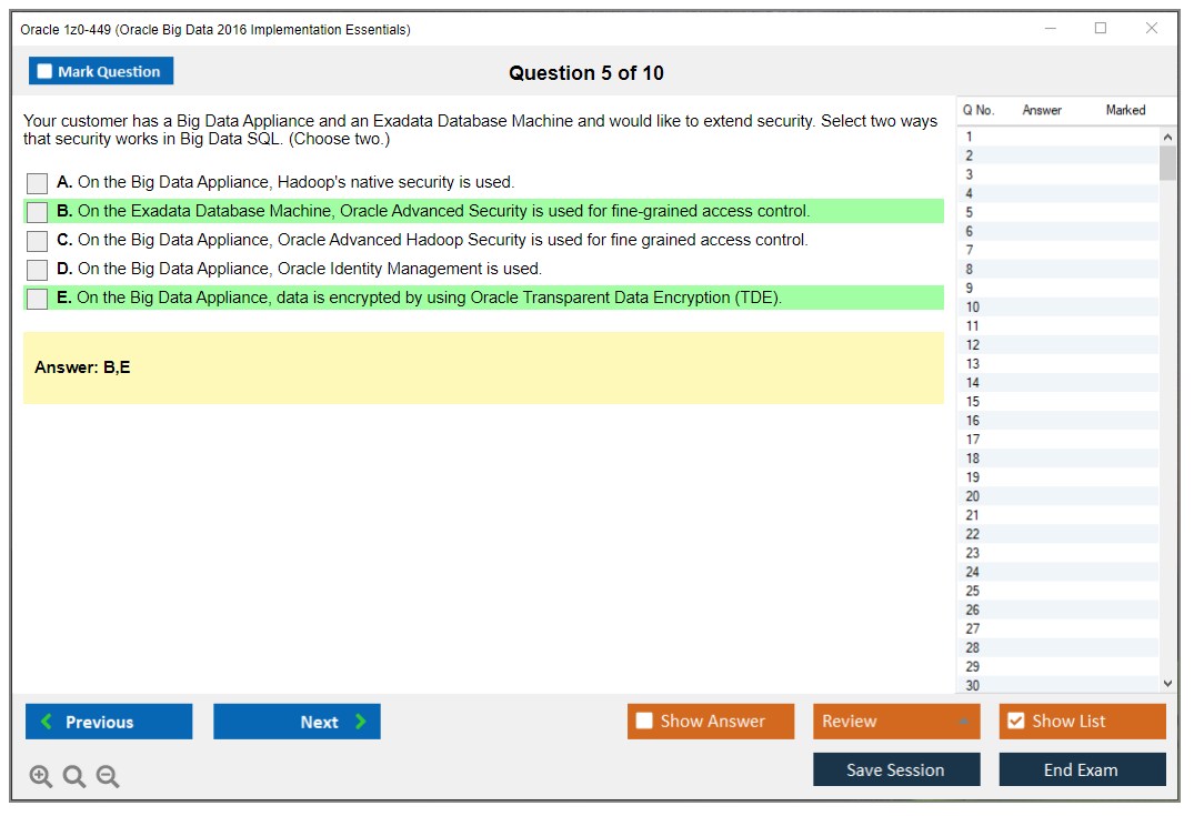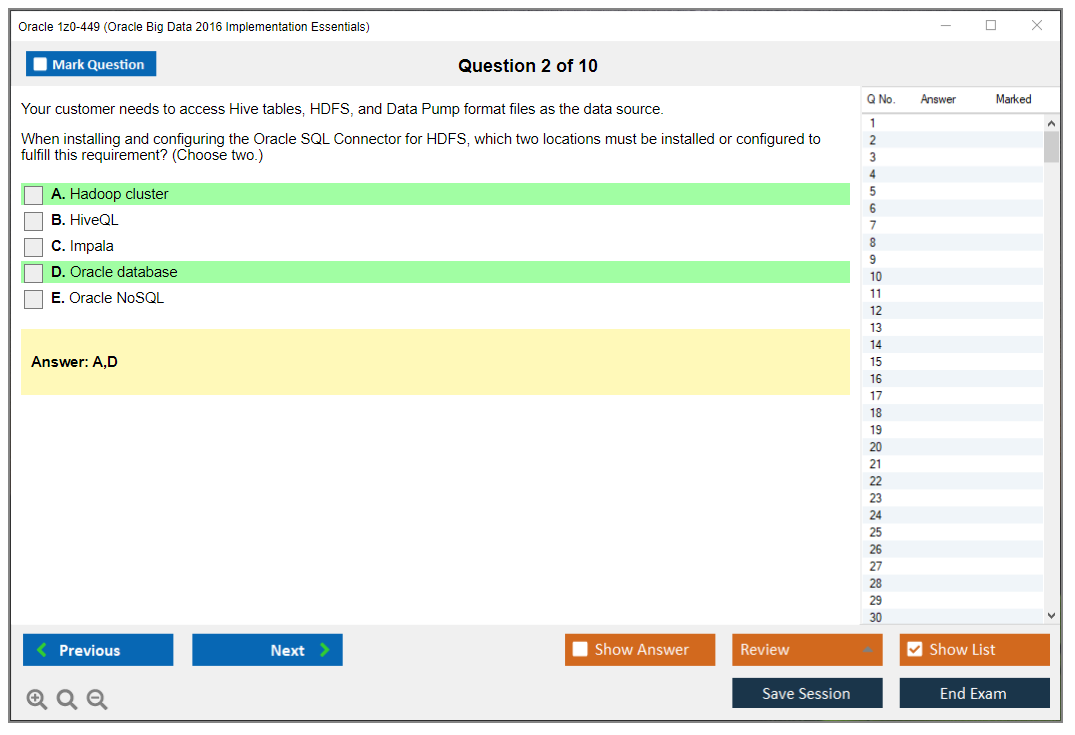 1z0-449: Oracle Big Data 2016 Implementation Essentials Lernmaterial und Test Engine