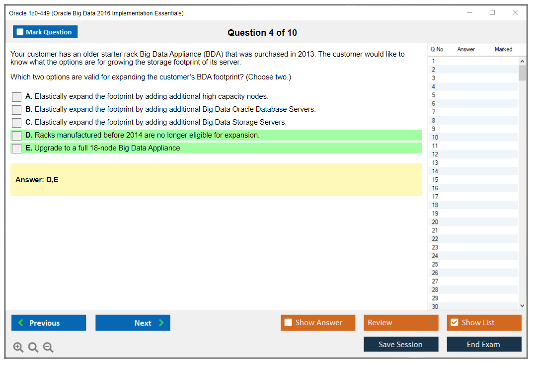 Hinweis: Oracle 1z0-449 (Oracle Big Data 2016 Implementation Essentials) wird keine neuen Updates mehr erhalten.