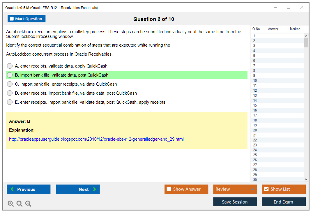 1z0-518: Oracle EBS R12.1 Receivables Essentials Lernmaterial und Test Engine