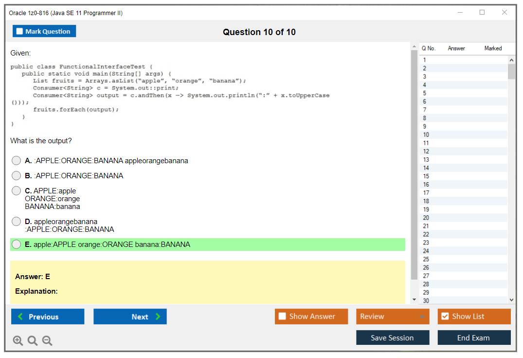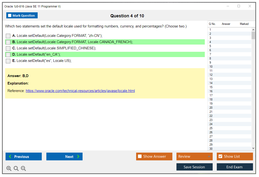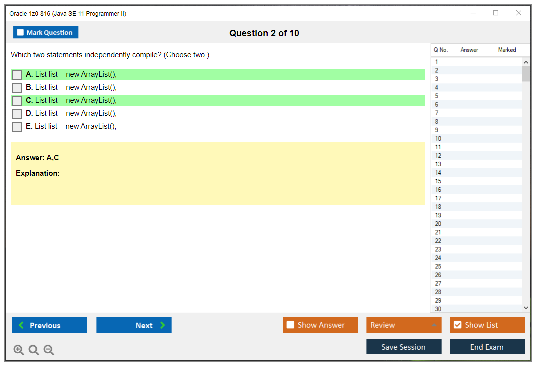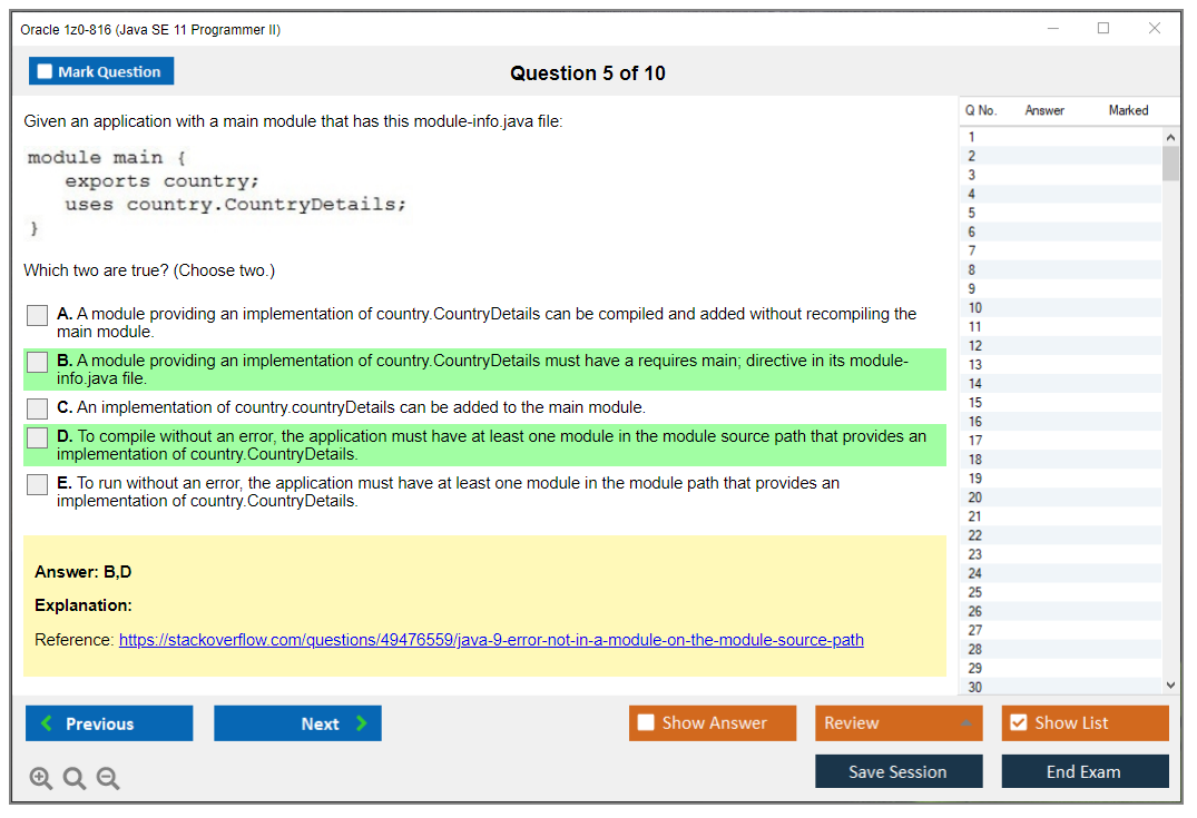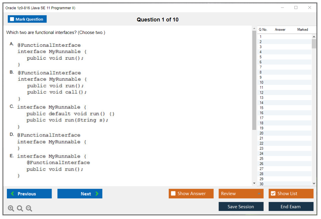 C'est maintenant aussi facile que de se promener dans un parc ! Utilisez uniquement les questions-réponses faciles de DumpsArena pour 1z0-816 Java SE 11 Programmer II qui peuvent vous garantir un succès dès la première fois, avec une garantie de remboursement à 100 % ! Des milliers de professionnels de l'informatique ont déjà utilisé ces questions-réponses 1z0-816 et ont obtenu leur certification de rêve dès la première tentative.