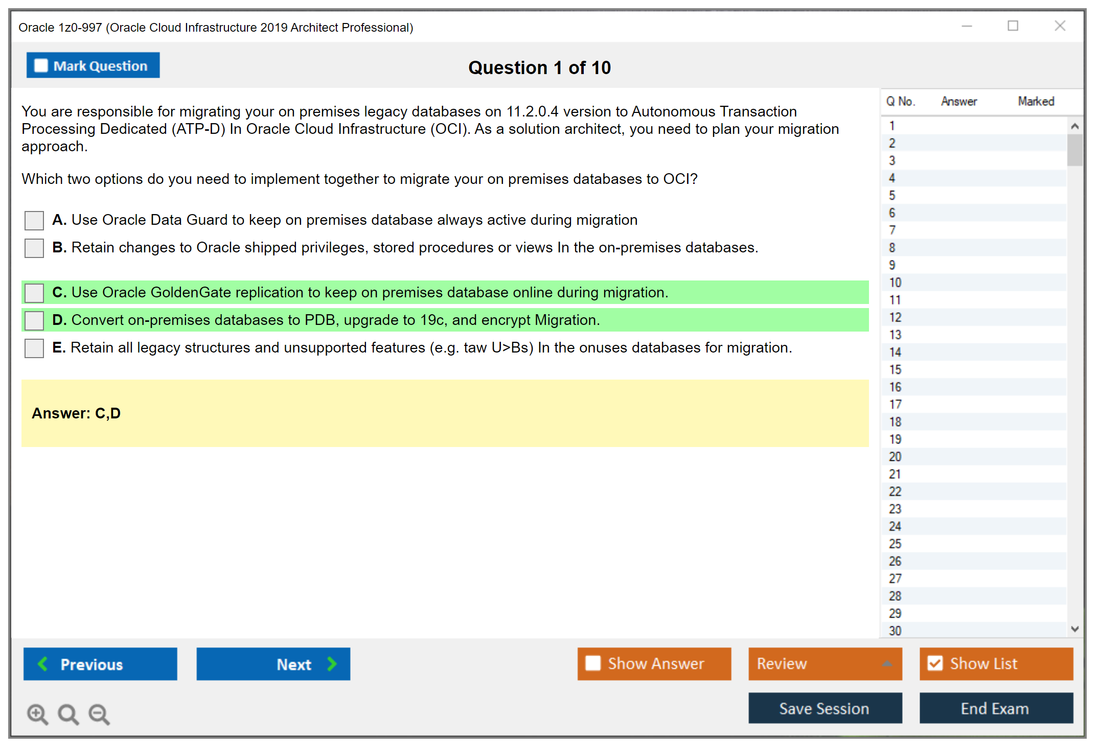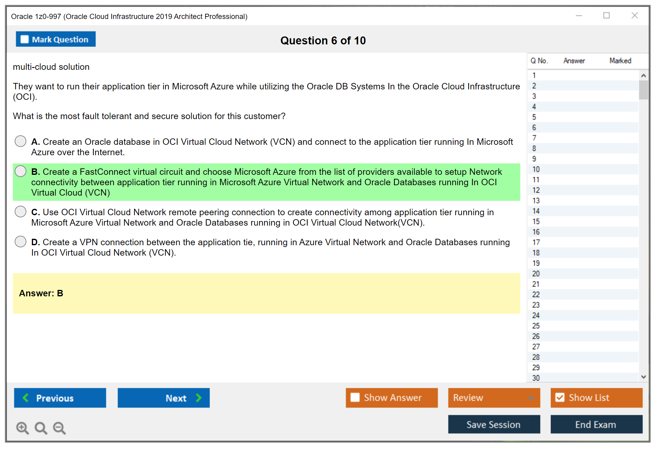 C'est maintenant aussi facile que de se promener dans un parc ! Utilisez uniquement les questions-réponses faciles de DumpsArena pour 1z0-997 Oracle Cloud Infrastructure 2019 Architect Professional qui peuvent vous garantir un succès dès la première fois, avec une garantie de remboursement à 100 % ! Des milliers de professionnels de l'informatique ont déjà utilisé ces questions-réponses 1z0-997 et ont obtenu leur certification de rêve dès la première tentative.