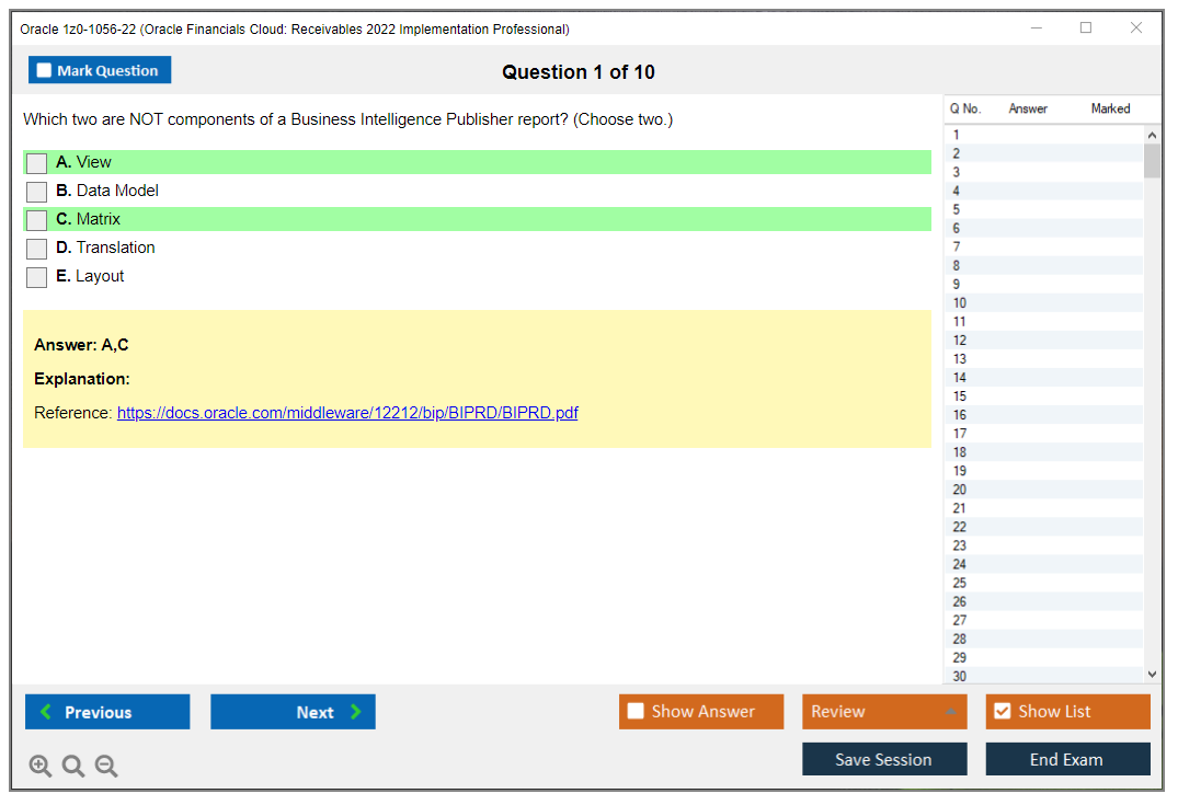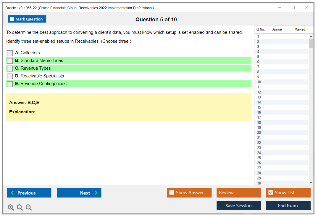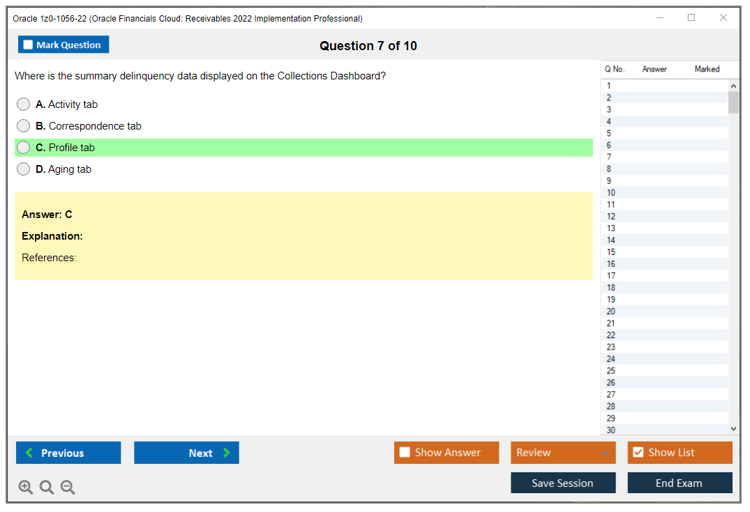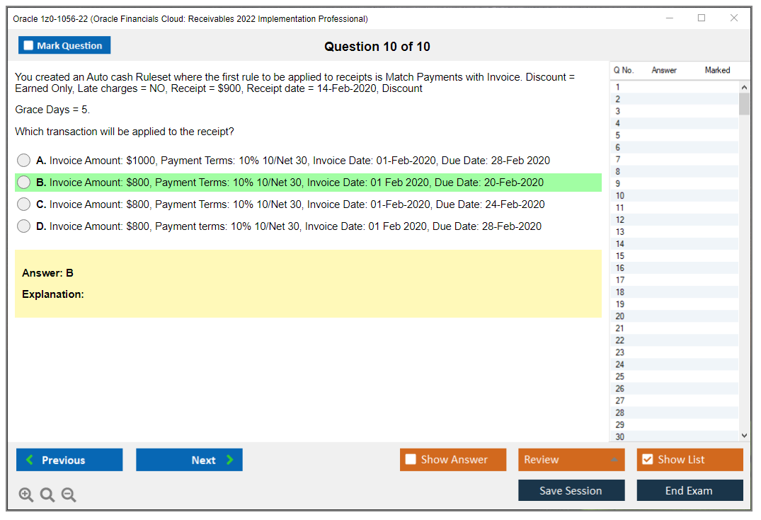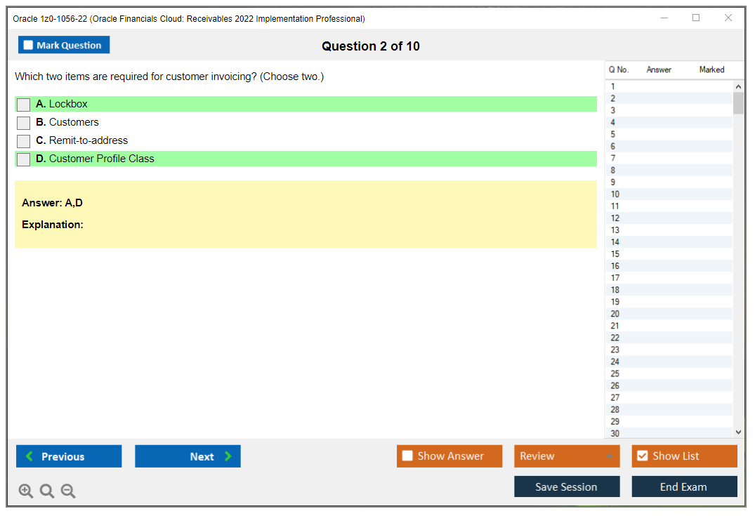 Note: El Oracle 1z0-1056-22 (Oracle Financials Cloud: Receivables 2022 Implementation Professional) no recibirá nuevas actualizaciones..