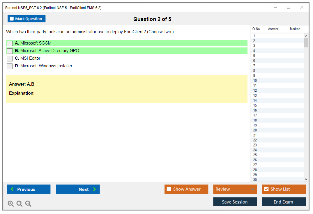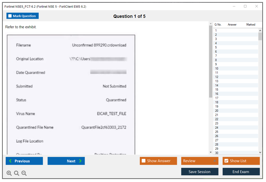 Exam Name: Fortinet NSE 5 - FortiClient EMS 6.2