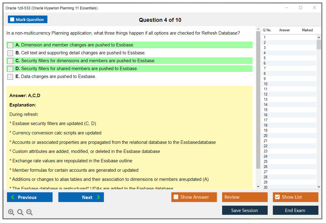 Fiches d'Examen 1z0-533 - Oracle Hyperion Planning 11 Essentials