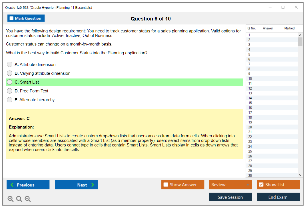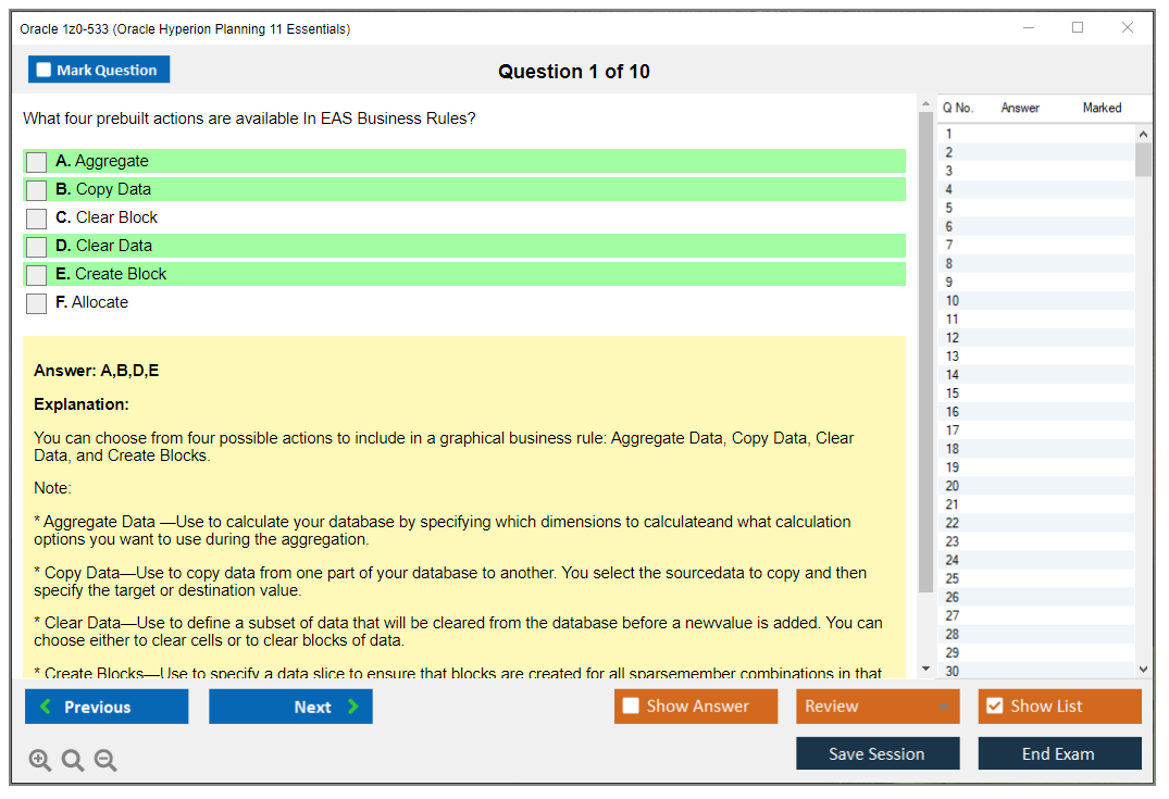 1z0-533 : Matériel d'Étude et Moteur de Test pour Oracle Hyperion Planning 11 Essentials