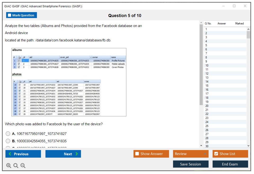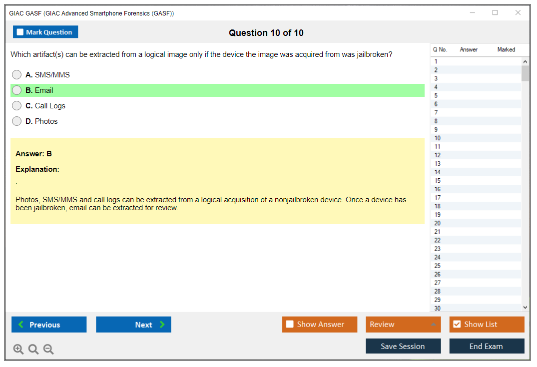 GASF: GIAC Advanced Smartphone Forensics Study Material and Test Engine