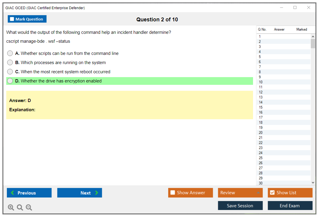 Exam Name: GIAC Certified Enterprise Defender