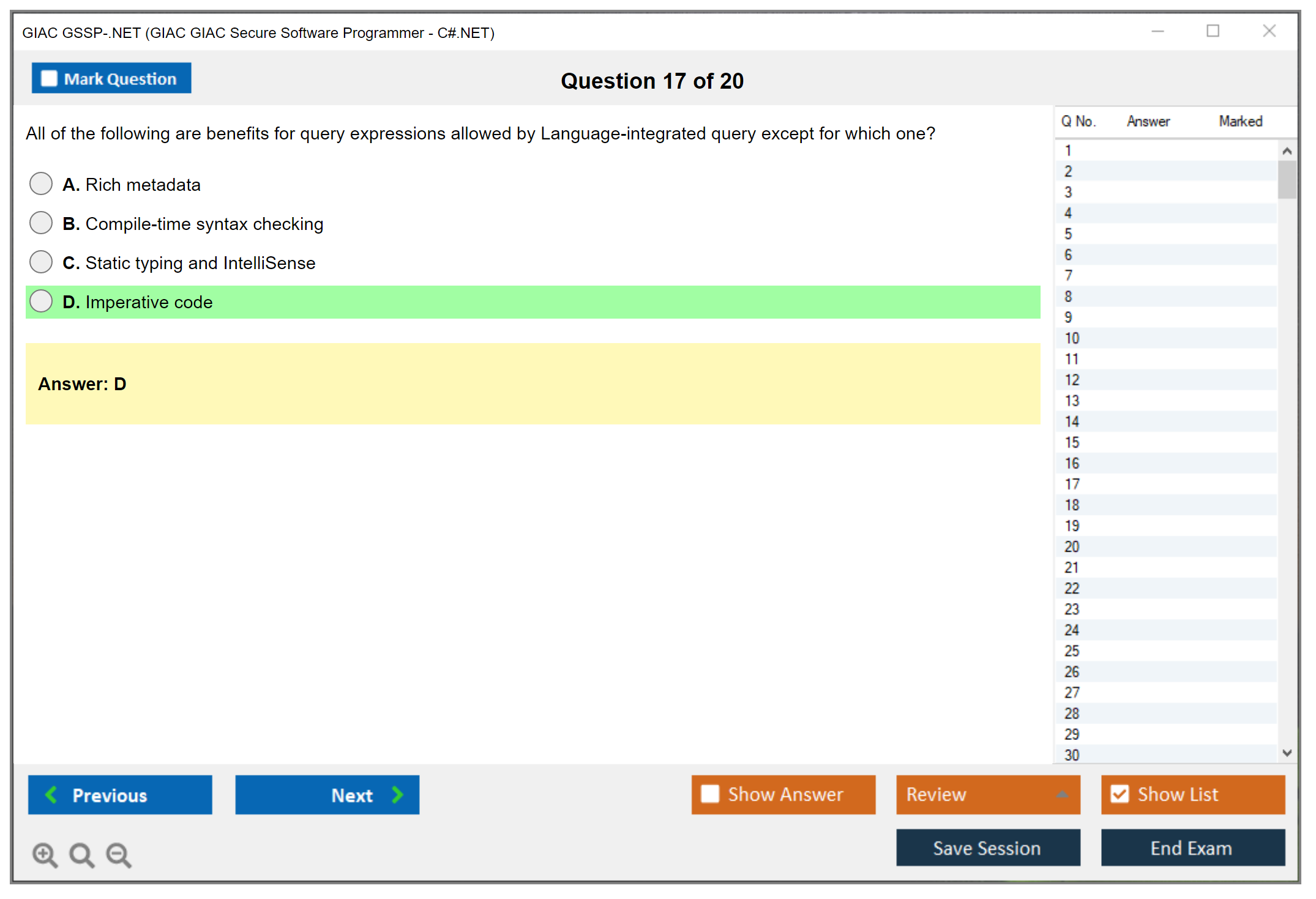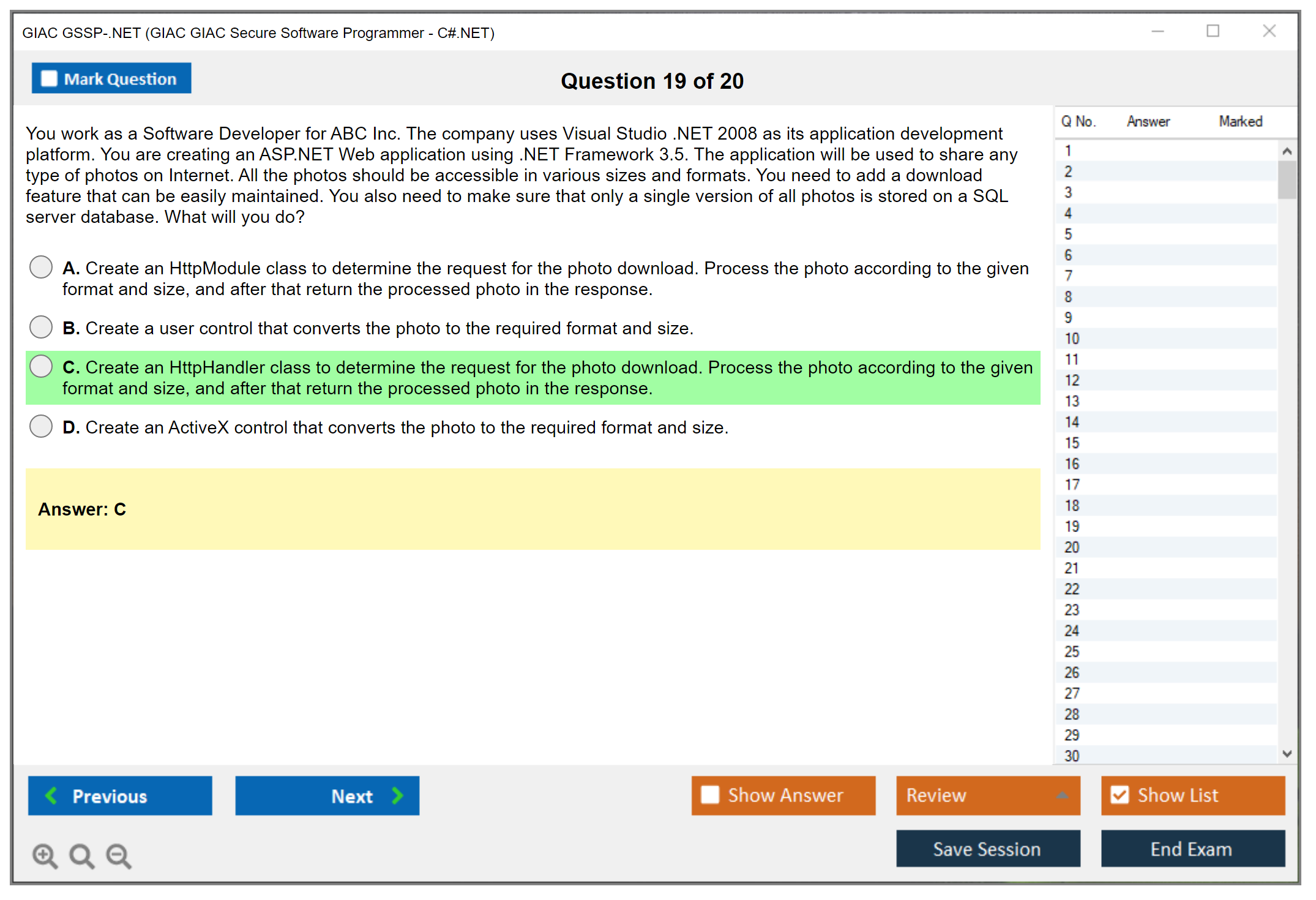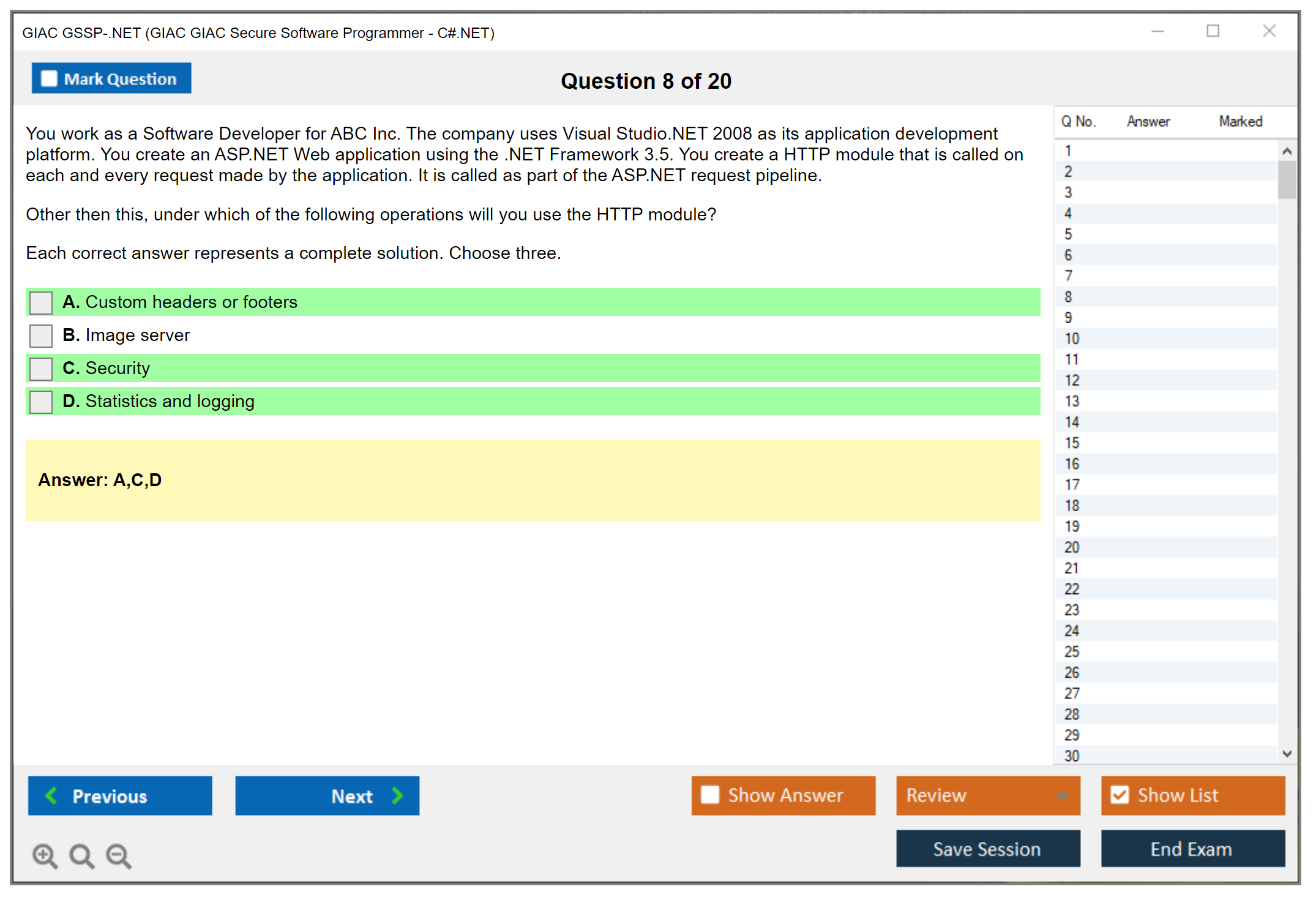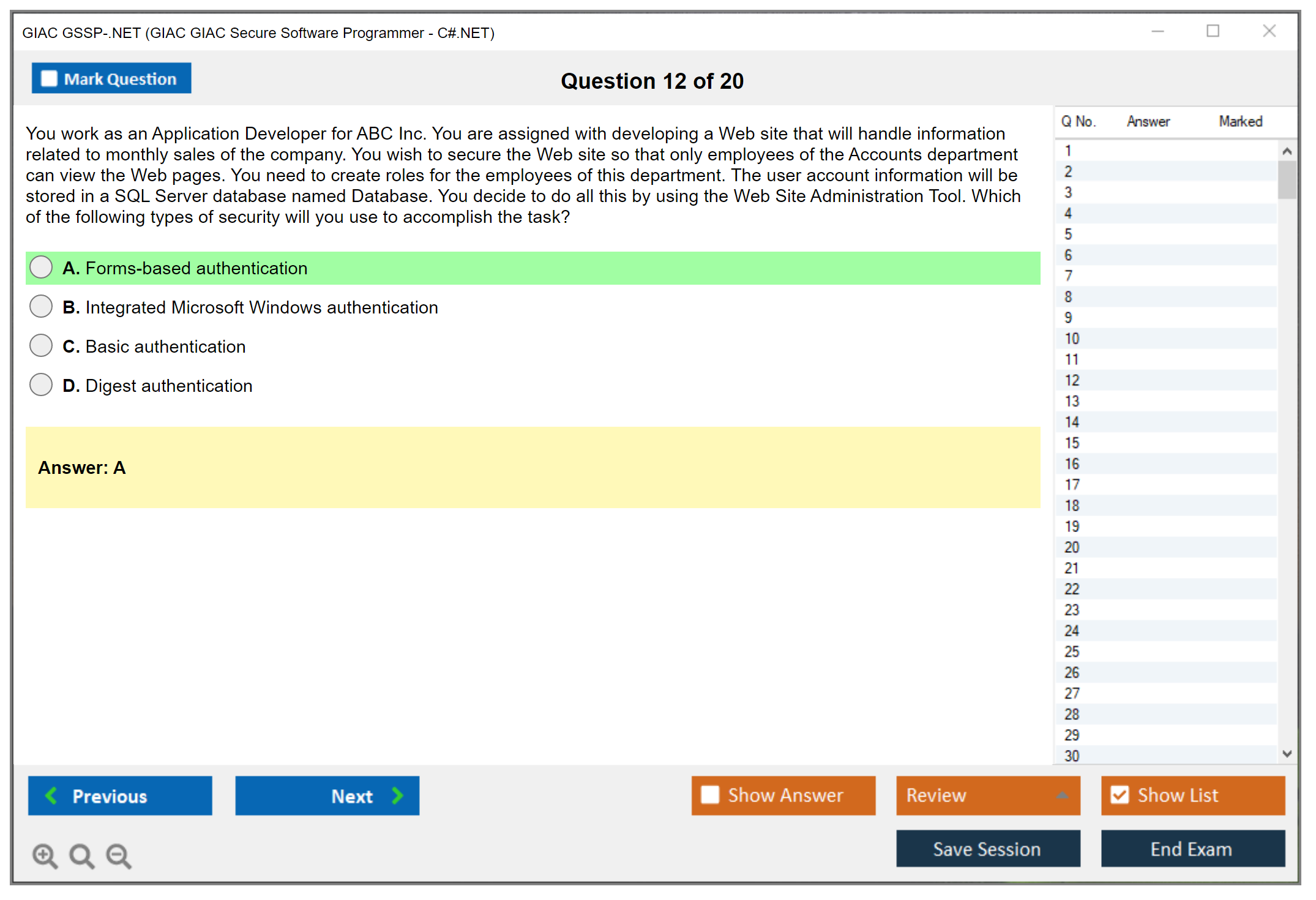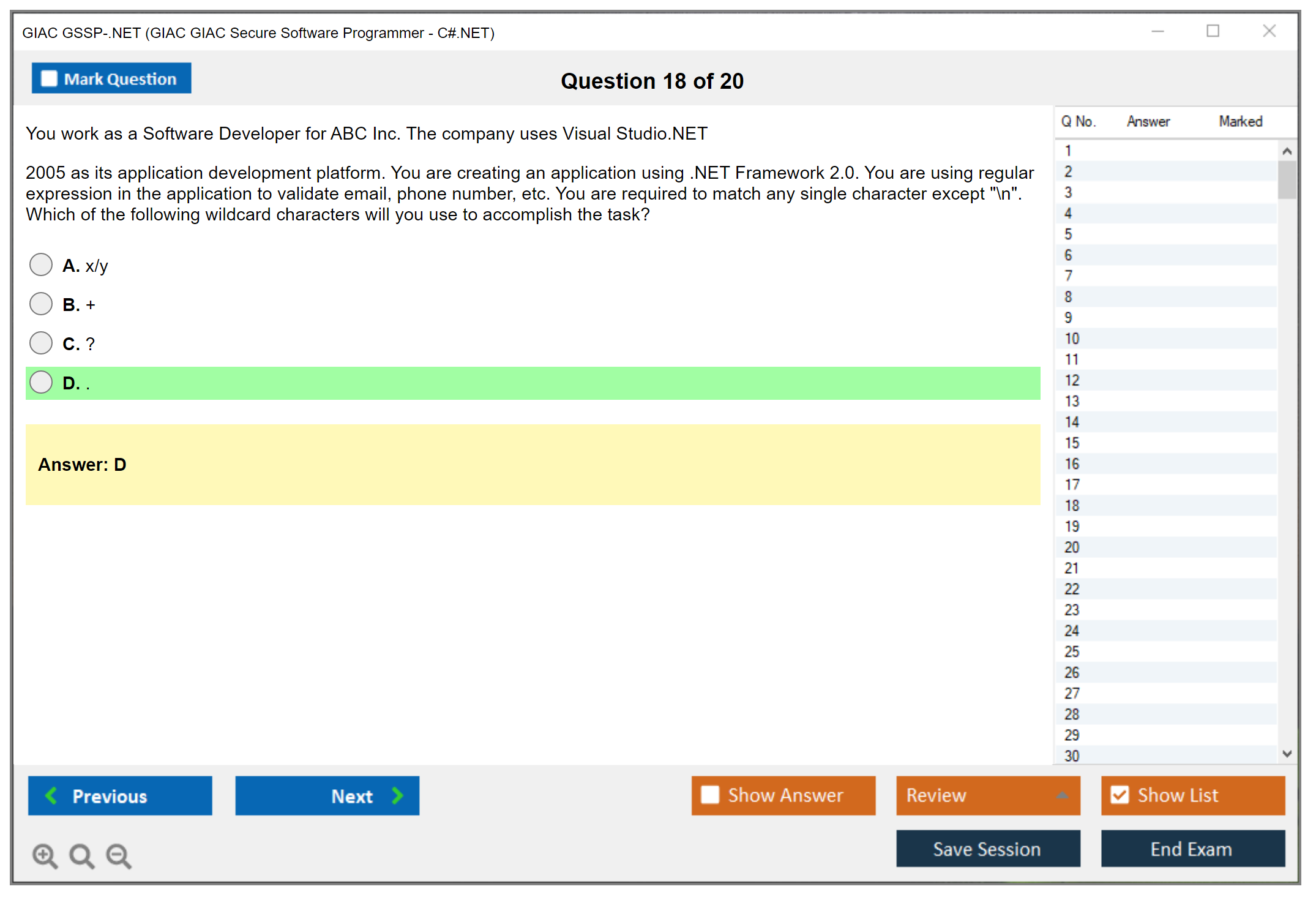 Exam Name: GIAC GIAC Secure Software Programmer - C#.NET