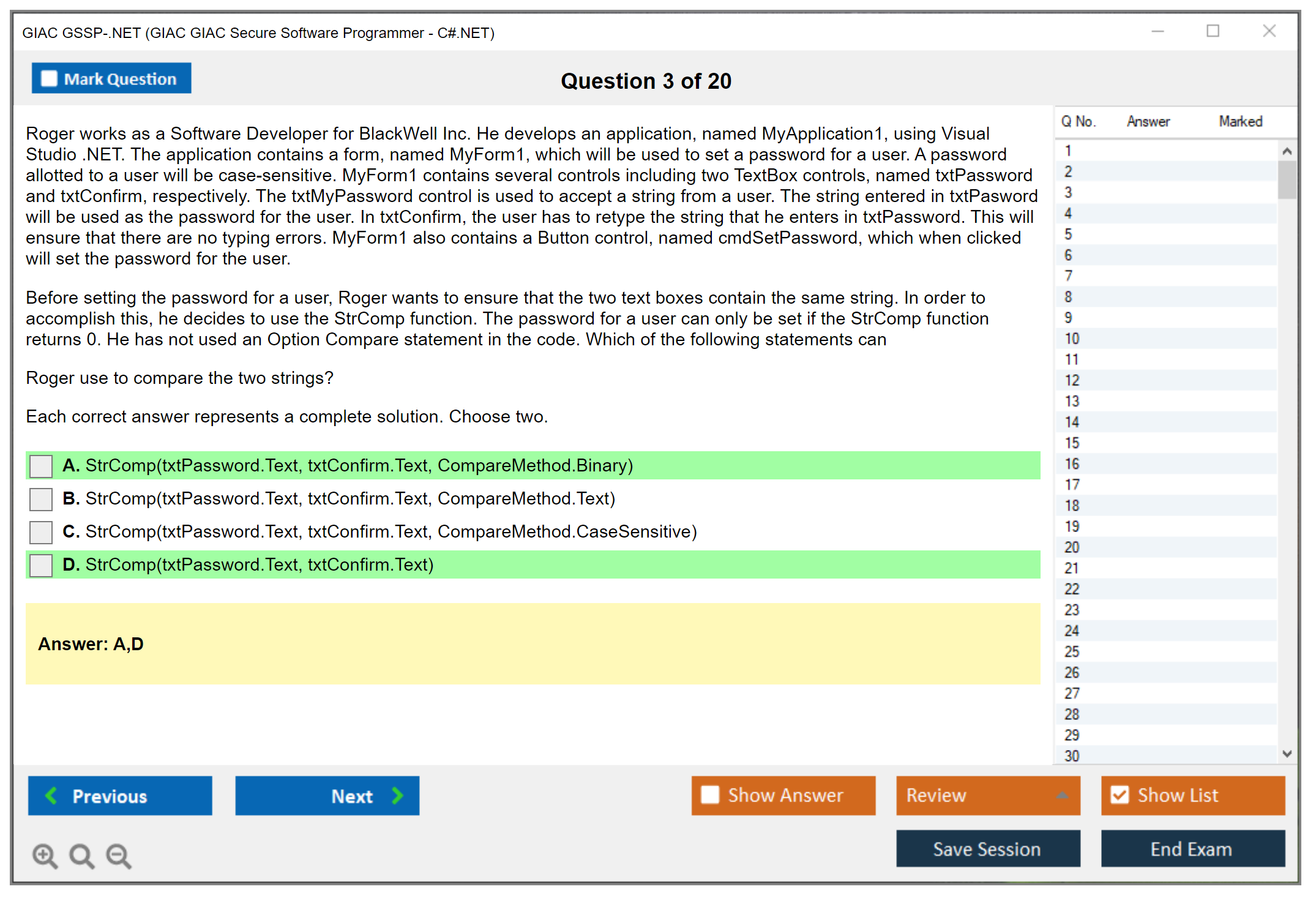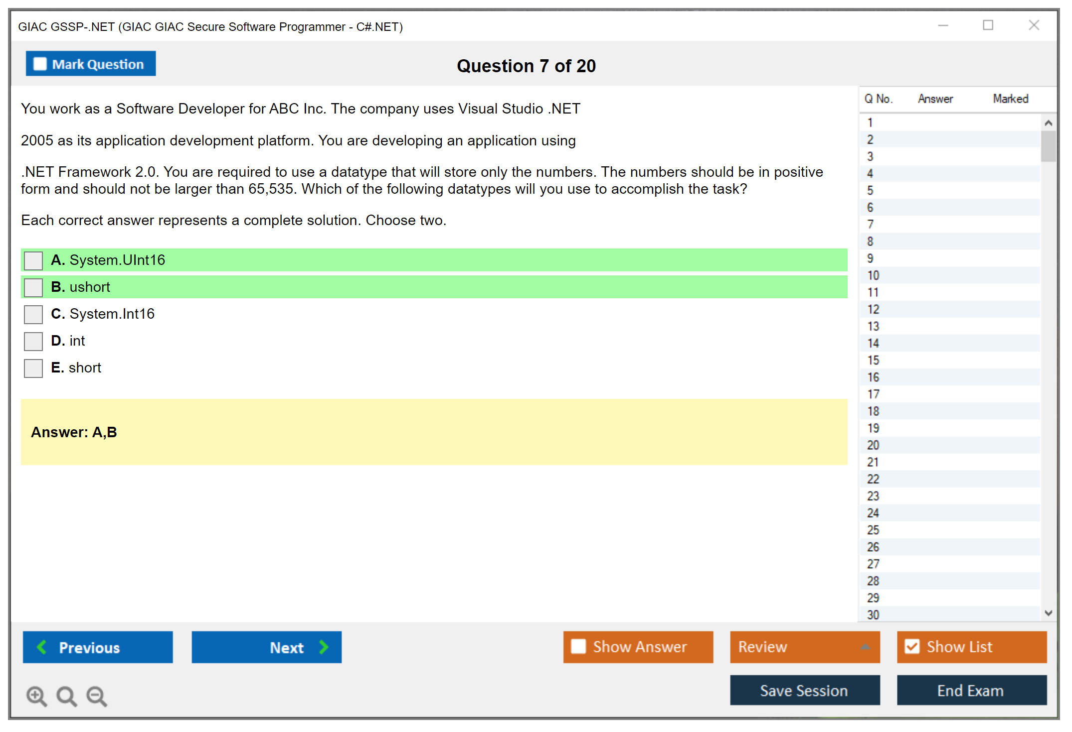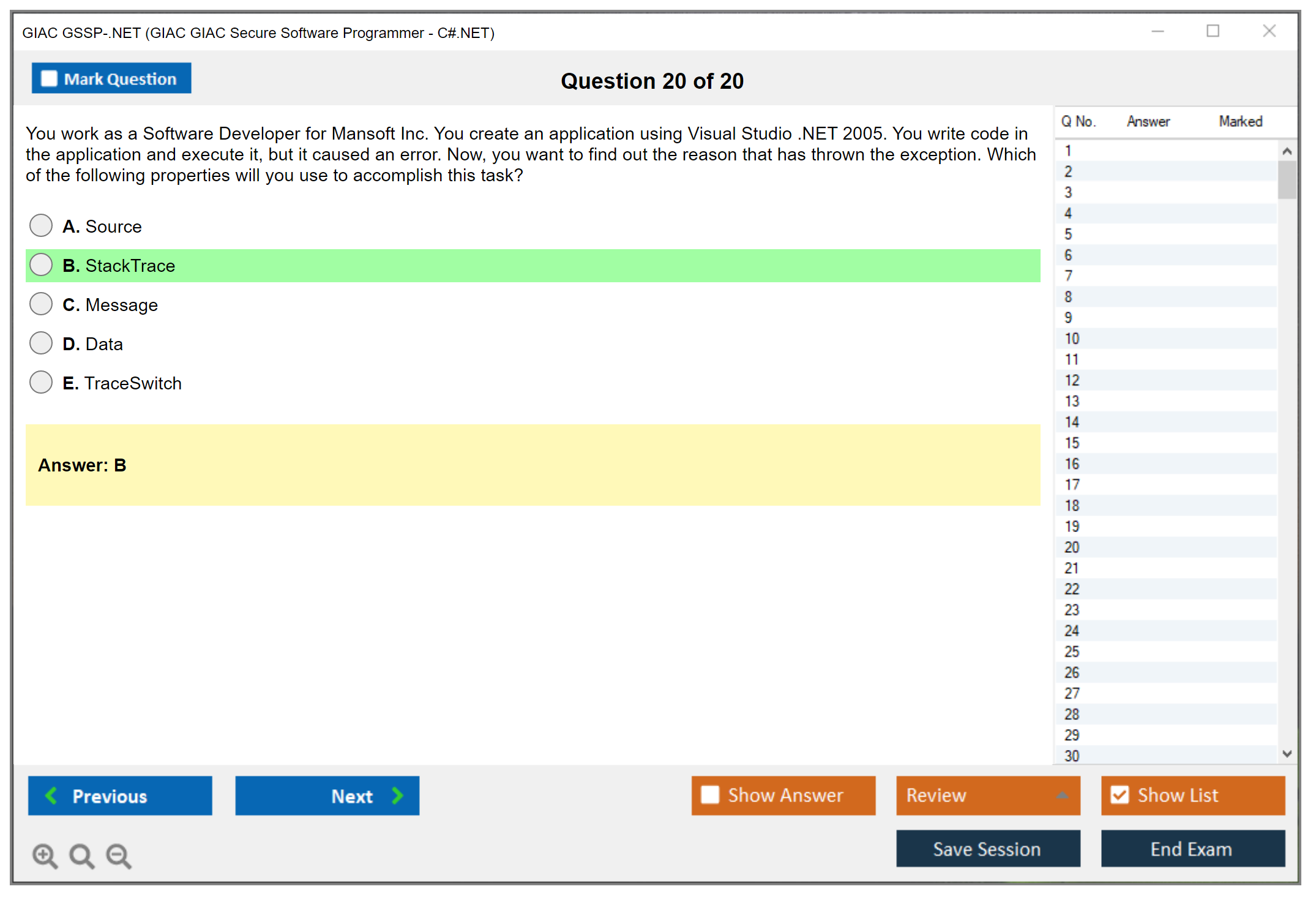 GSSP-.NET Practice Exam - GIAC GIAC Secure Software Programmer - C#.NET