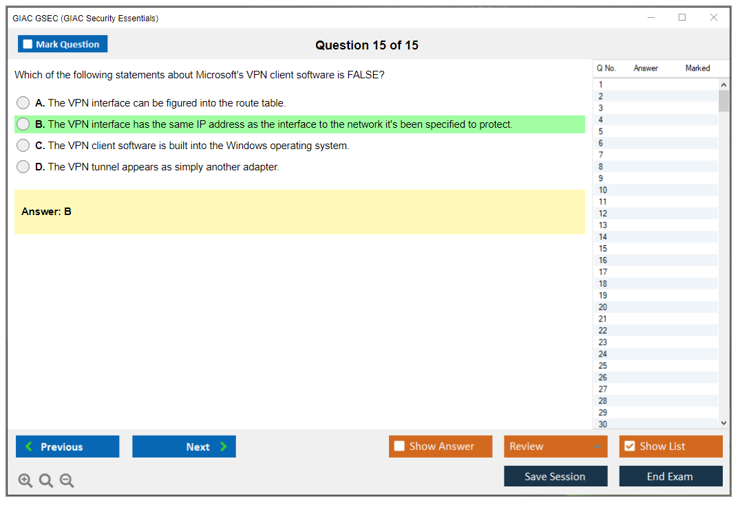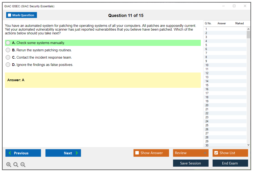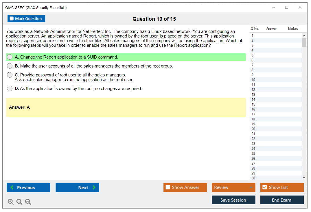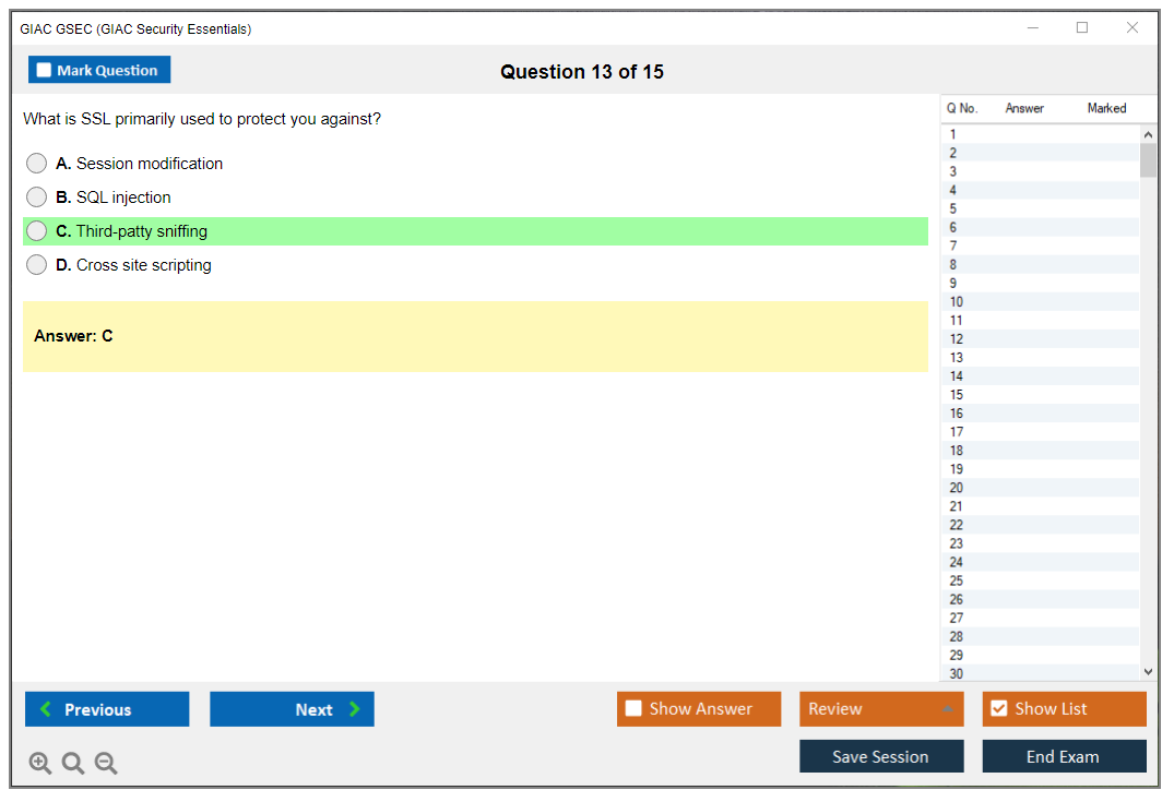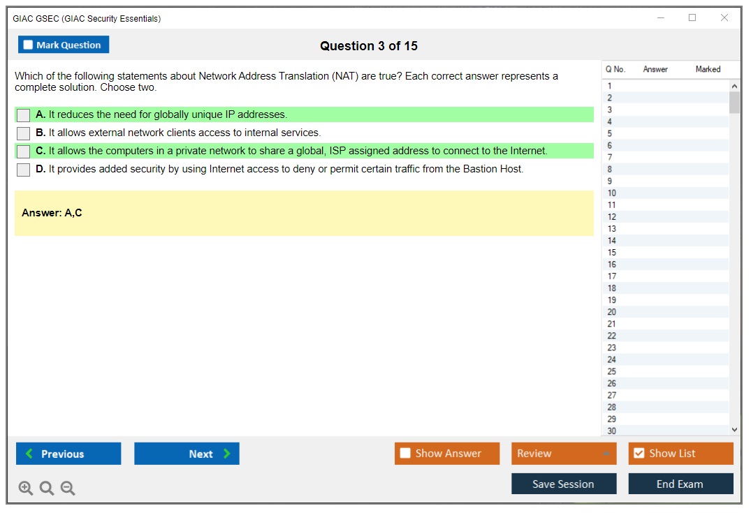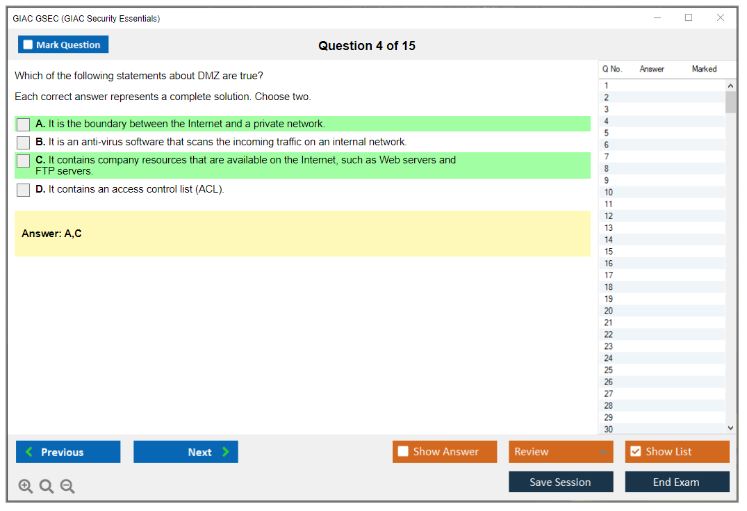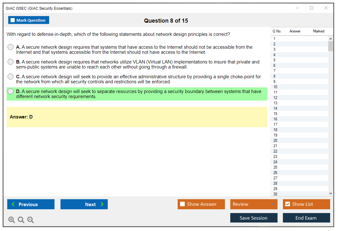 Gli esami standard sono importanti se non hai mai sostenuto un esame parametrico o VUE in precedenza. L'accuratezza delle domande e delle risposte è completamente garantita dai nostri esperti certificati e il numero è sufficiente per farti superare l'esame. DumpsArena.co include 90 giorni di aggiornamenti gratuiti. Questo è importante se stai sostenendo un test che viene aggiornato frequentemente. Materiali di studio reali di GIAC GSEC verificati dagli esperti di GIAC.