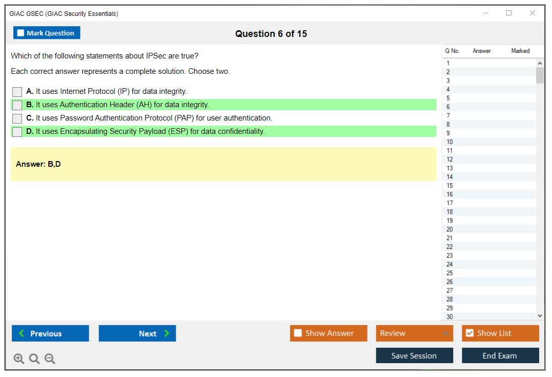 I dump di GSEC GIAC Security Essentials di DumpsArena sono abbastanza efficaci. Si concentrano completamente sugli elementi più importanti del tuo esame e ti forniscono le informazioni più efficienti in un linguaggio interattivo e facile da capire. Considera di migliorare la tua carriera con questa formula di superamento dell'esame testata e autentica. I braindump di GSEC sono unici e una chicca per ogni aspirante professionista IT che desidera sostenere un esame GSEC nonostante i limiti di tempo. C'è una forte possibilità che molte di queste domande le troverai nel tuo vero esame GSEC.