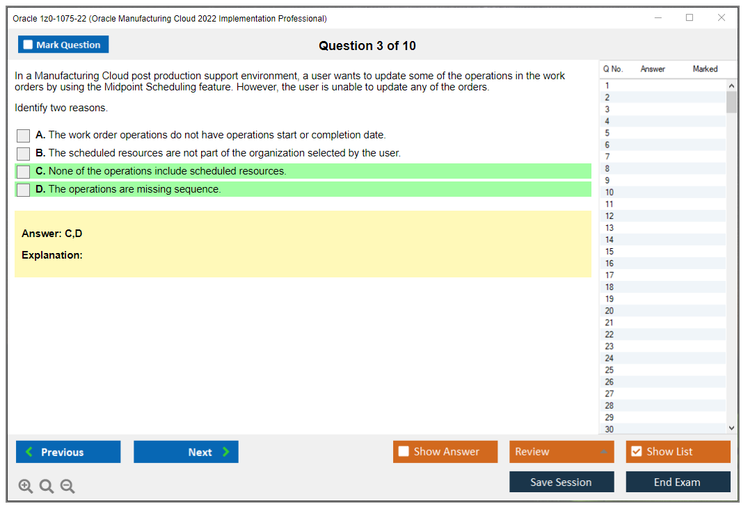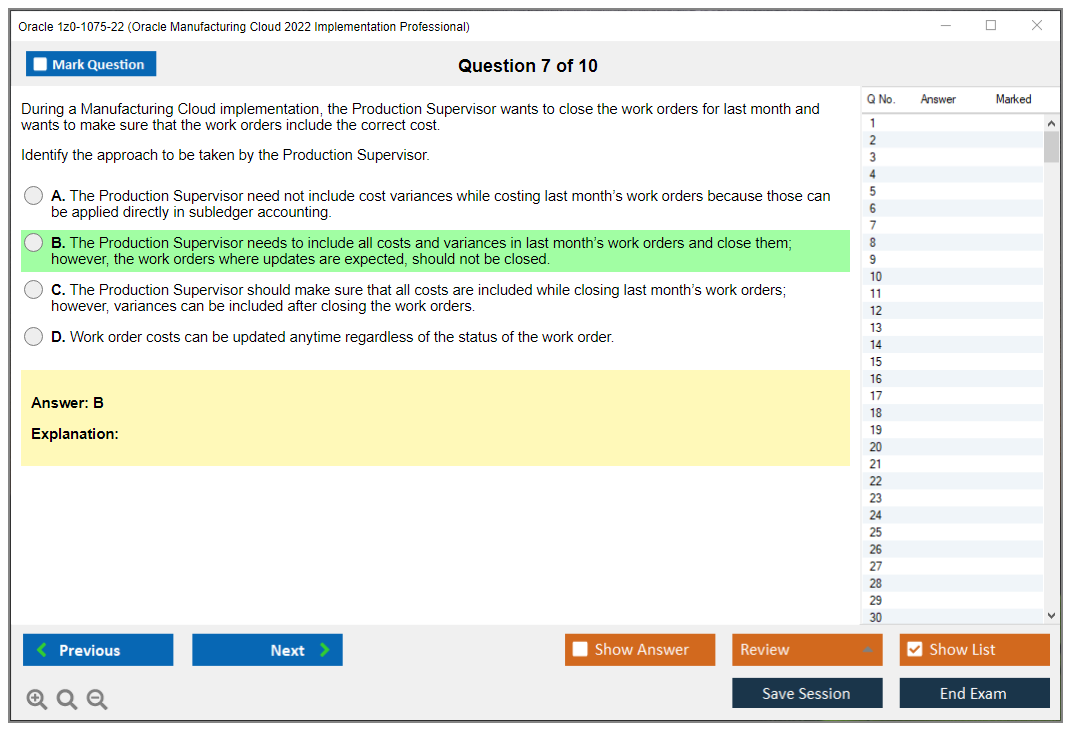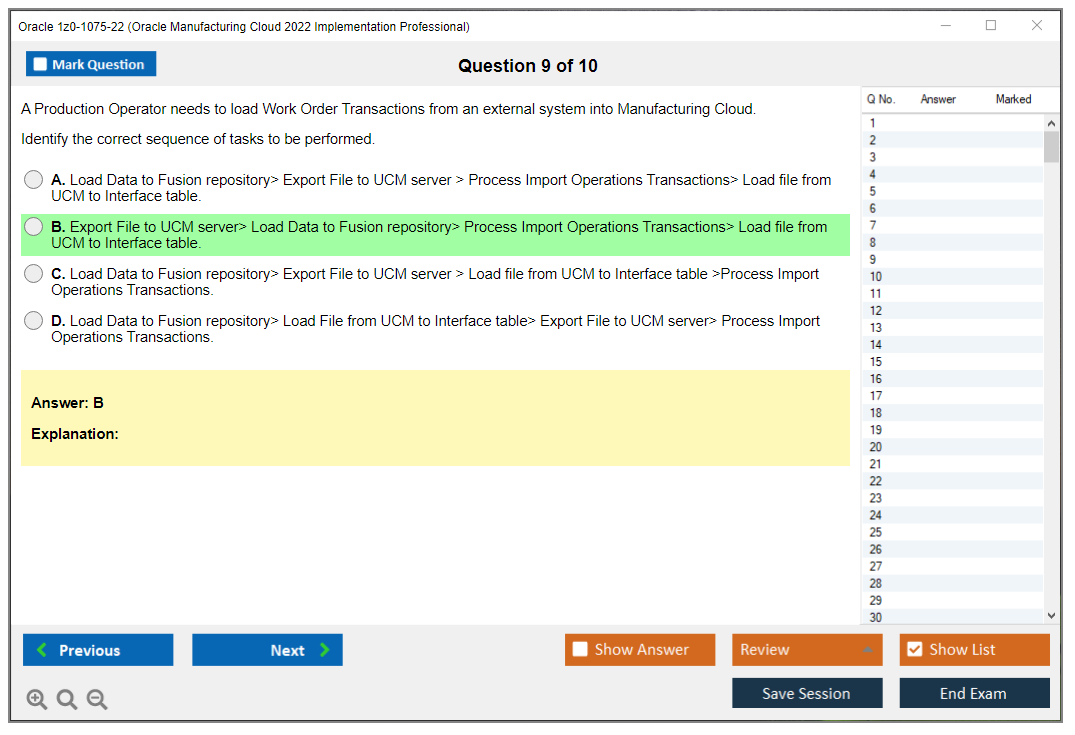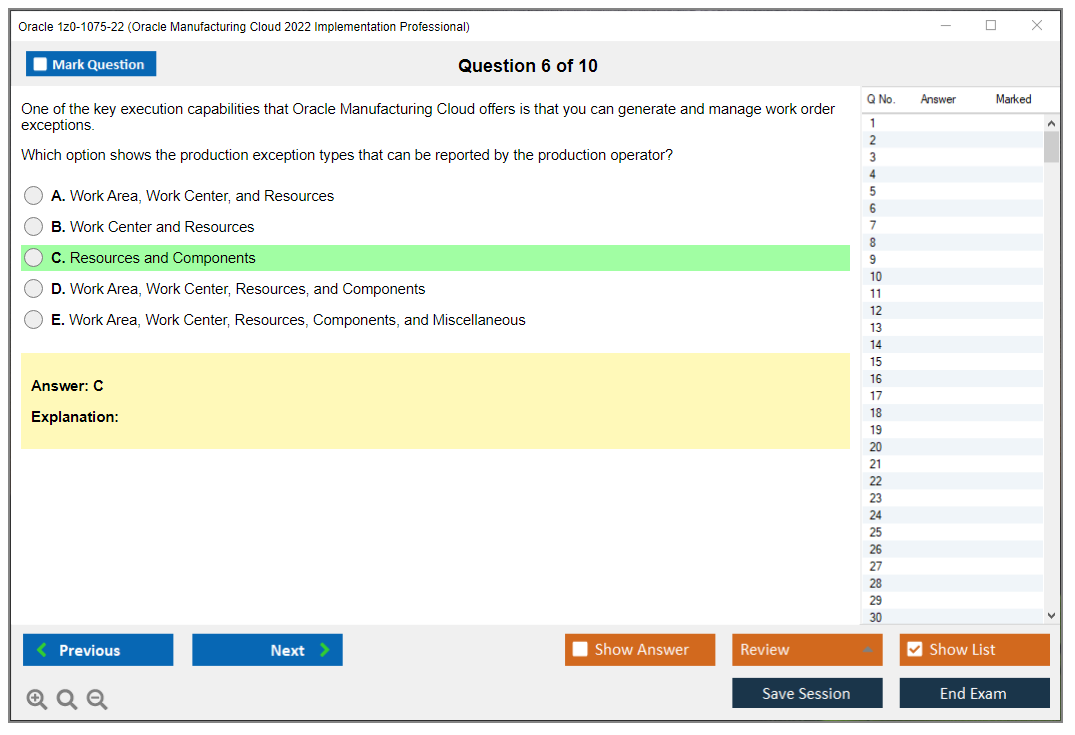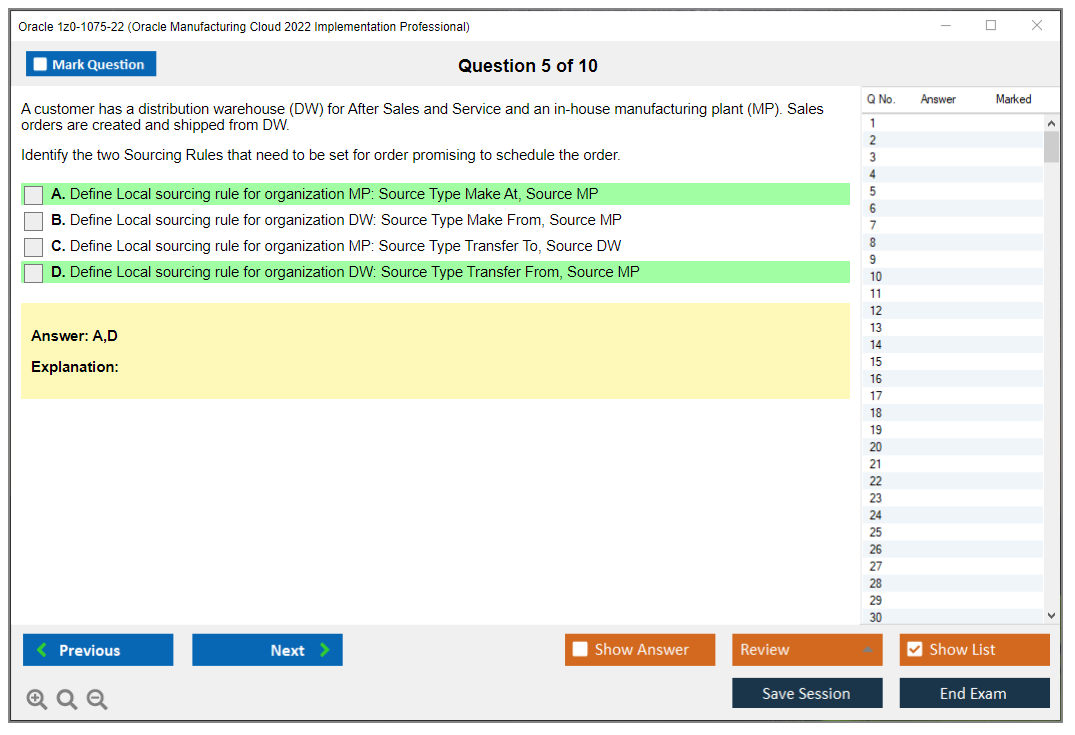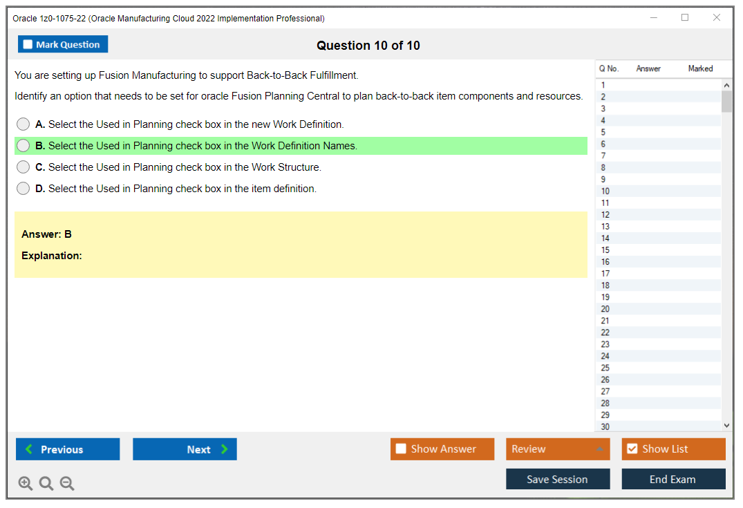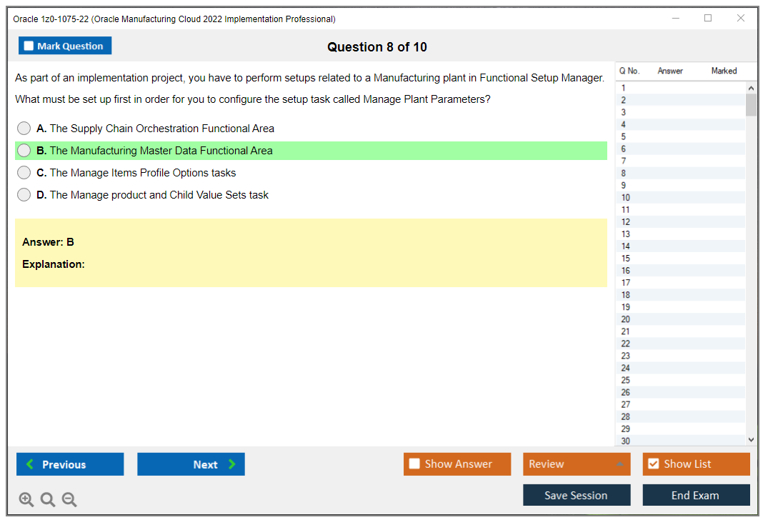 Nota: Oracle 1z0-1075-22 (Oracle Manufacturing Cloud 2022 Implementation Professional) non riceverà ulteriori aggiornamenti.