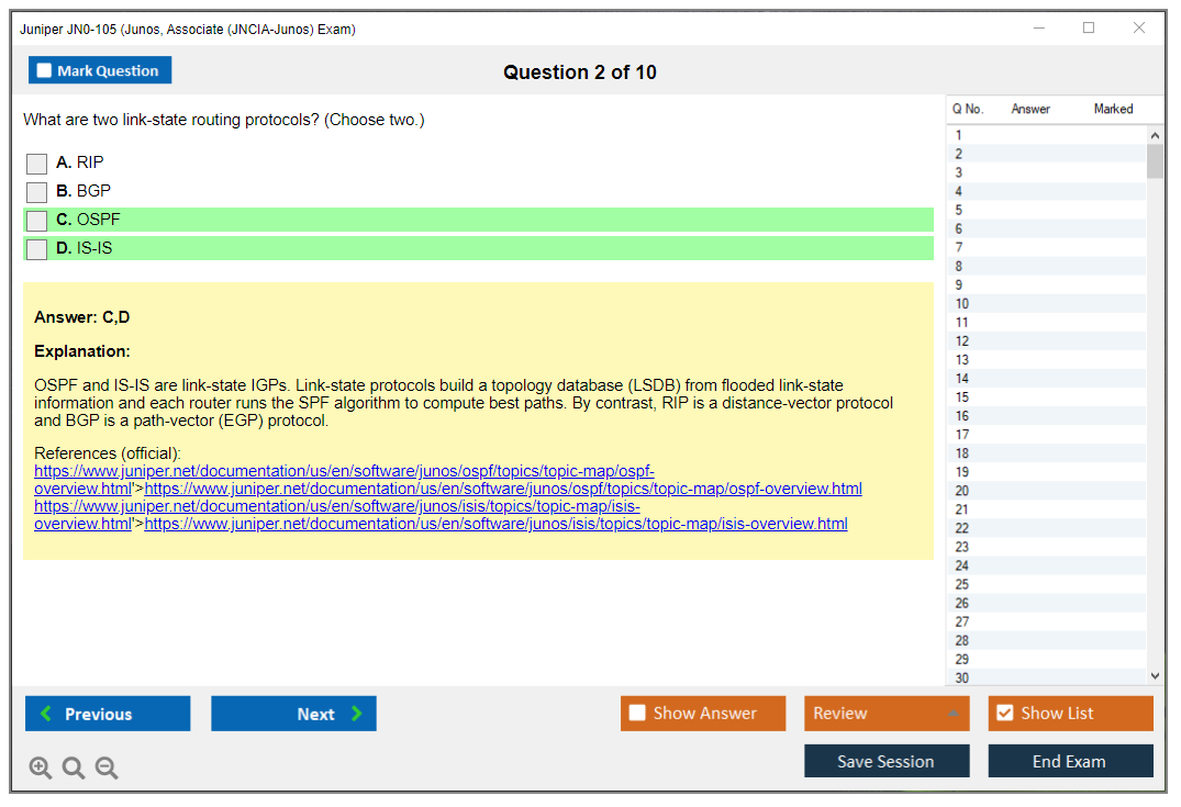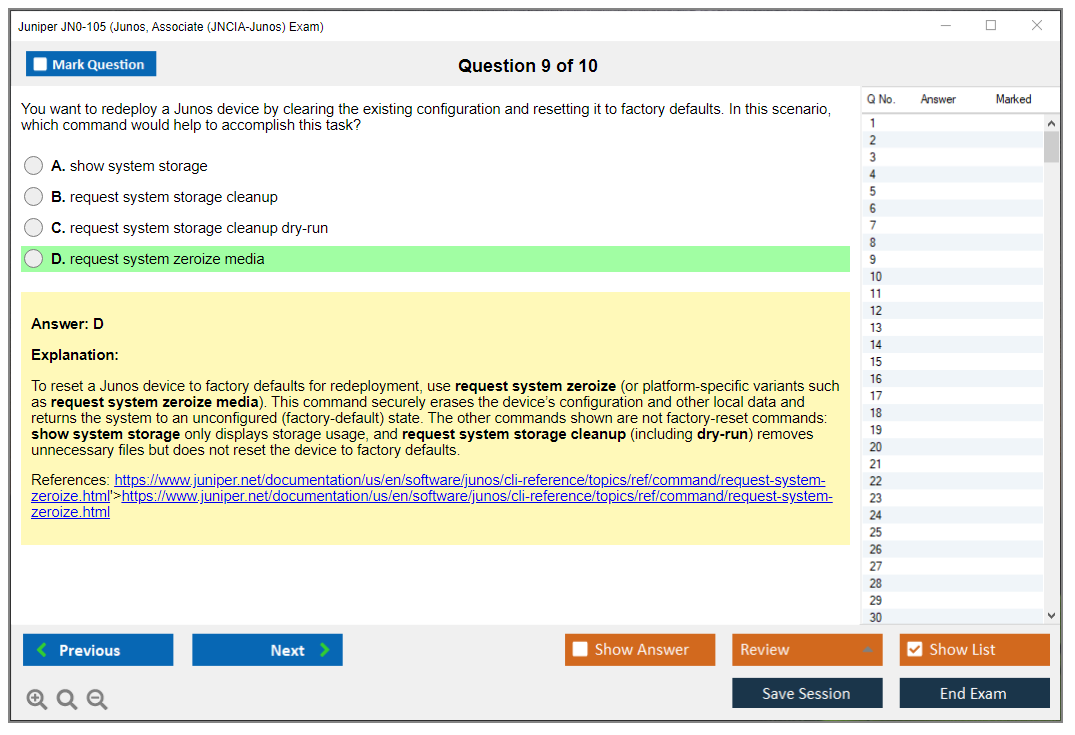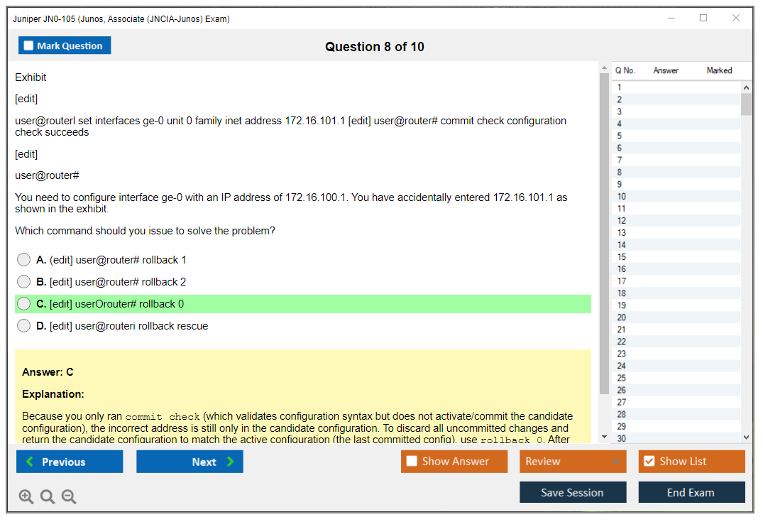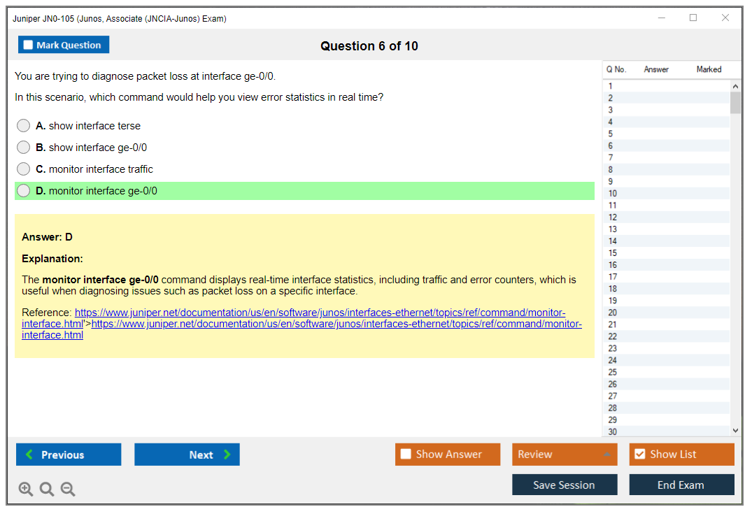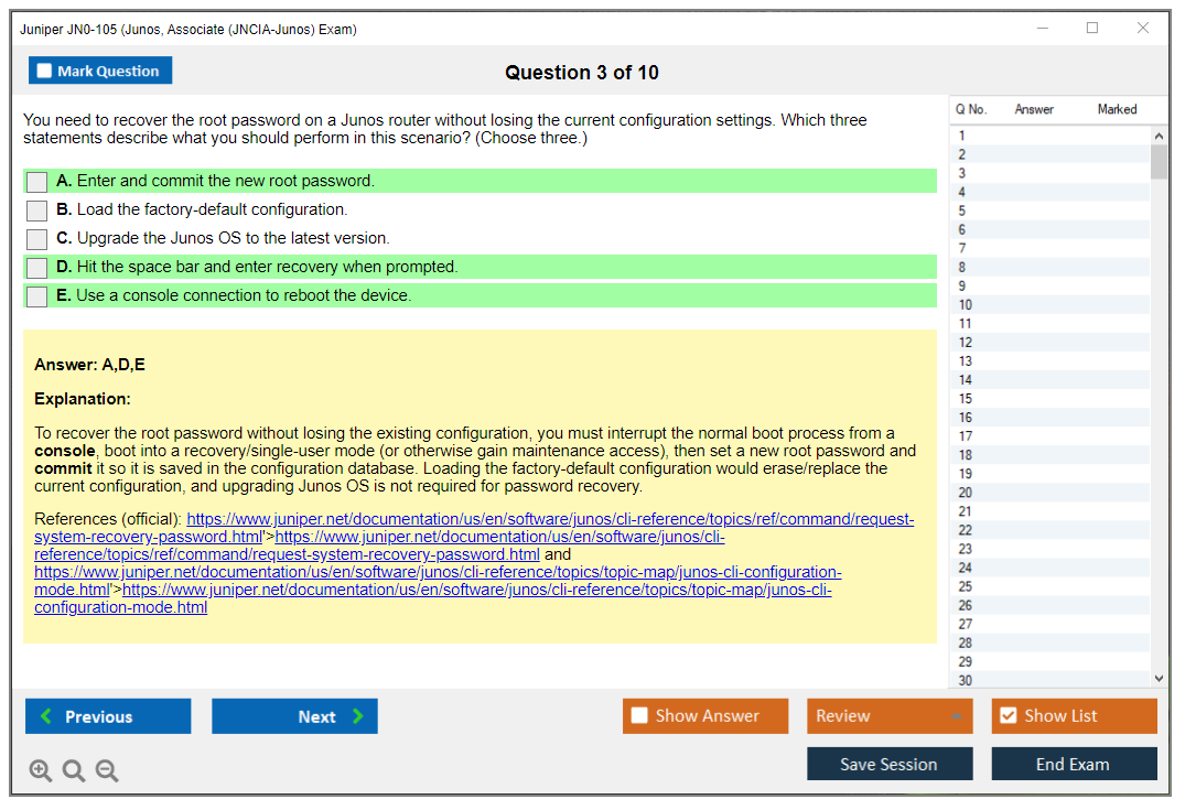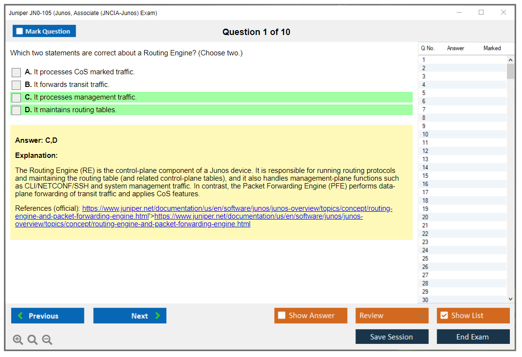 JN0-105: Junos, Associate (JNCIA-Junos) Exam Study Material and Test Engine