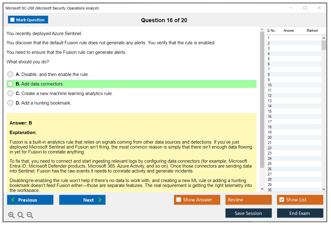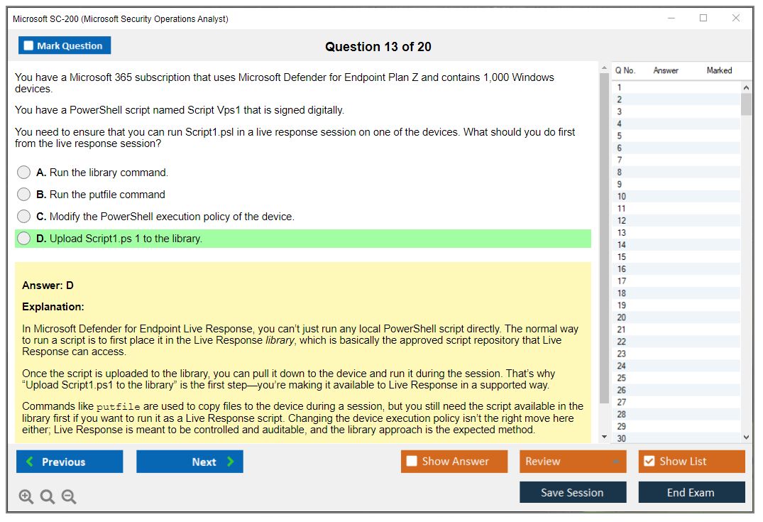 The SC-200 Practice Exam Questions Pack helps you understand question formats and identify knowledge gaps. Practice tests are not a substitute for hands-on experience, but they show you how Microsoft asks questions about the products.