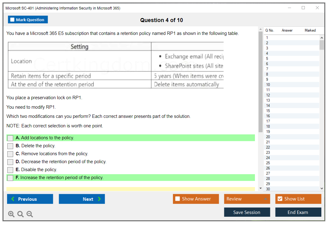 SC-401: Administering Information Security in Microsoft 365 Study Material and Test Engine