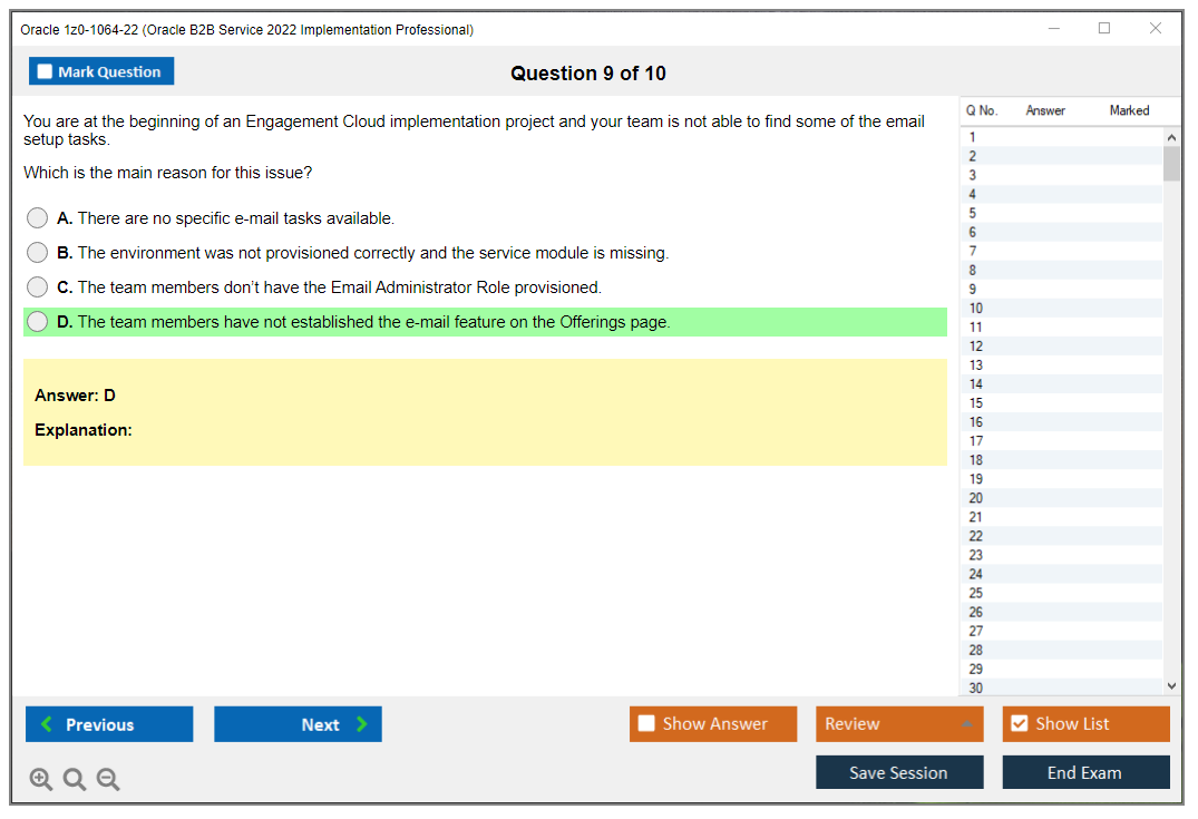 Dumpsarena Oracle Oracle B2B Service 2022 Implementation Professional (1z0-1064-22) Free Practice Exam Simulator Test Engine Exam preparation with its cutting-edge combination of authentic test simulation, dynamic adaptability, and intuitive design. Recognized as the industry-leading practice platform, it empowers candidates to master their certification journey through these standout features.
