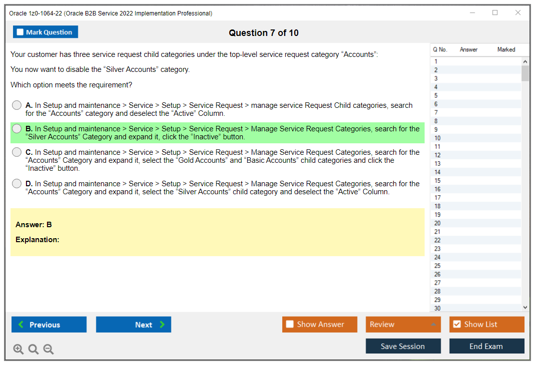 Exam Name: Oracle B2B Service 2022 Implementation Professional