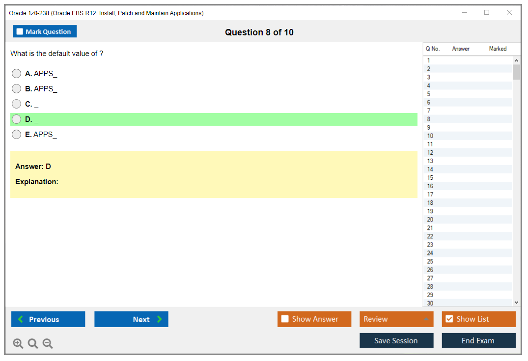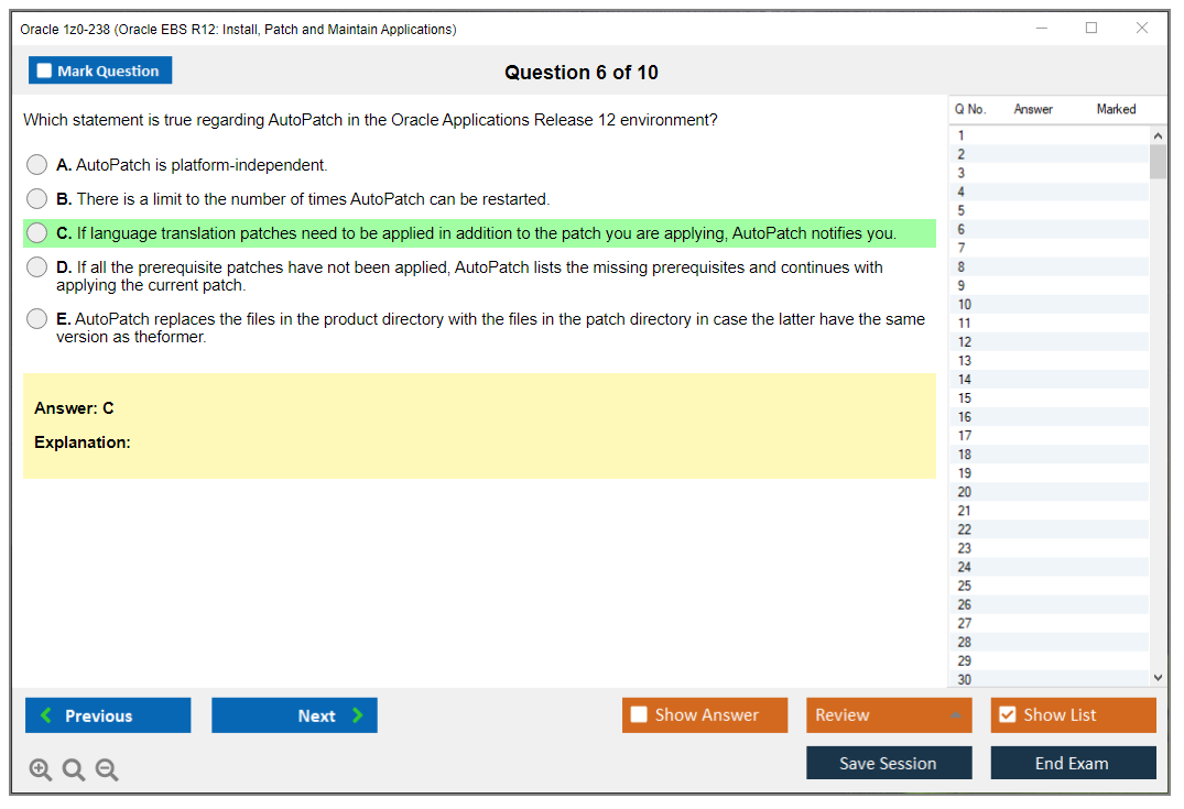 Note: Oracle 1z0-238 (Oracle EBS R12: Install, Patch and Maintain Applications) will not receive any new updates.