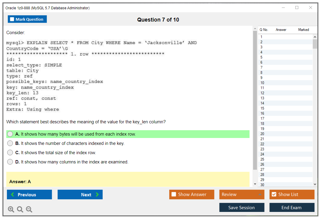 Exam Name: MySQL 5.7 Database Administrator