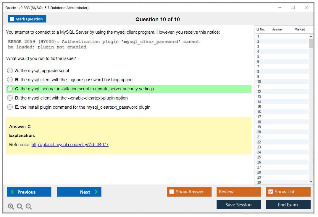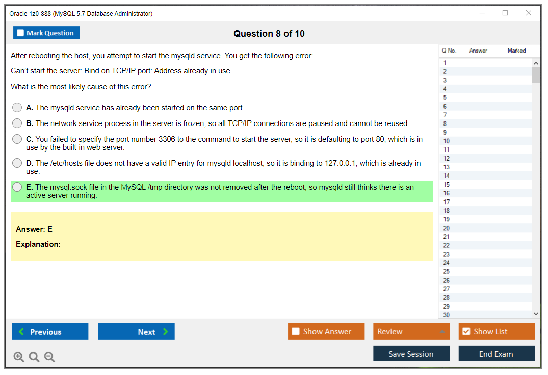 1z0-888 Practice Exam - MySQL 5.7 Database Administrator