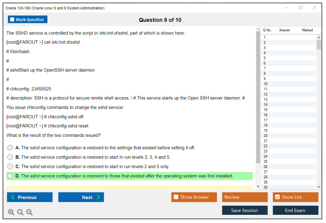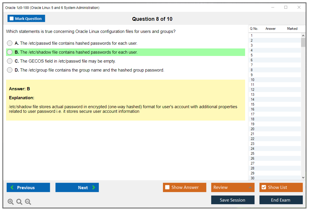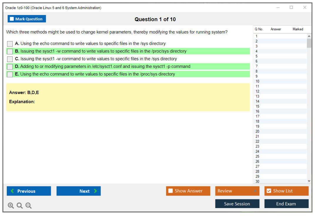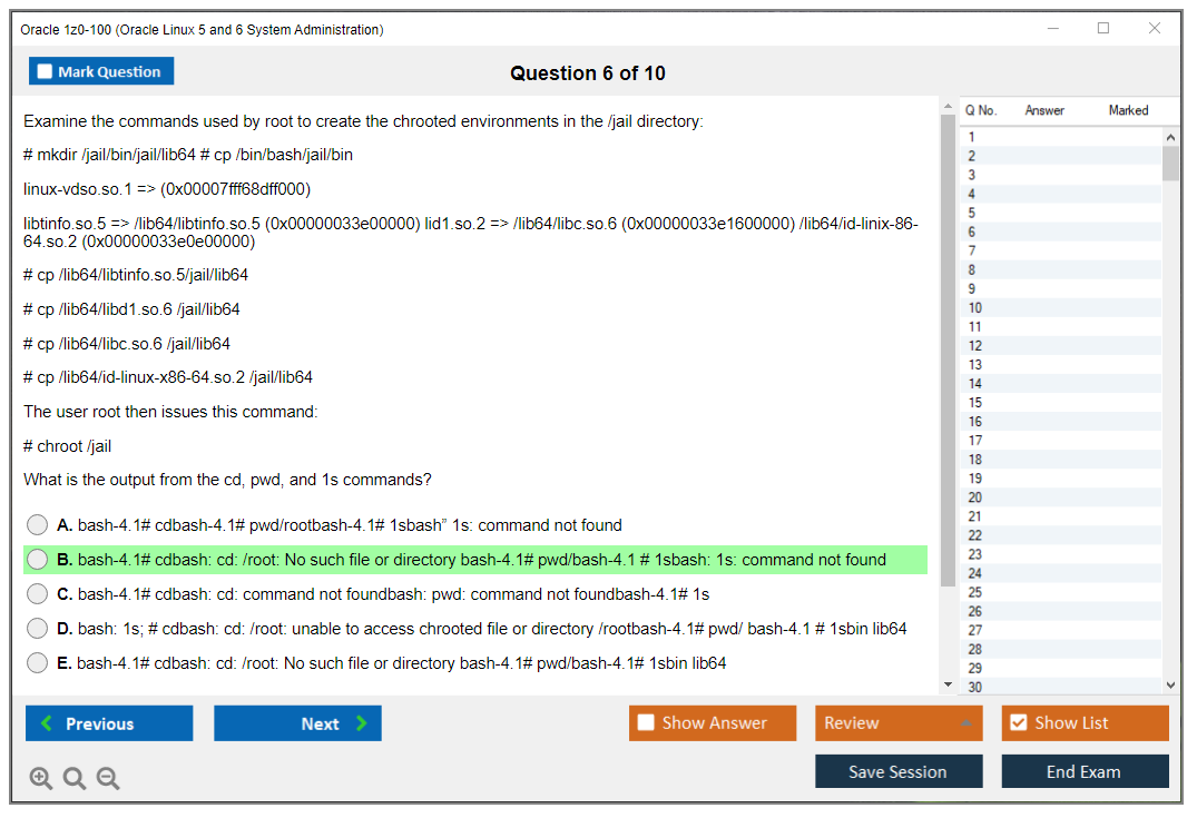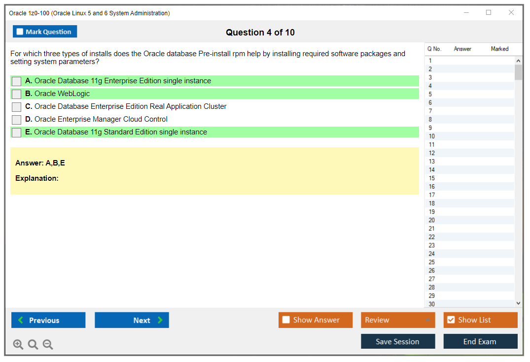 Os dumps 1z0-100 Oracle Linux 5 and 6 System Administration da DumpsArena são bastante eficazes. Eles se concentram inteiramente nos elementos mais importantes do seu exame e fornecem as informações mais eficientes possíveis em um idioma interativo e fácil de entender. Considere impulsionar sua carreira com esta fórmula de aprovação de exame testada e mais autêntica. Exames cerebrais 1z0-100 são únicos e um tratamento para todo profissional de TI aspirante que deseja fazer um exame 1z0-100, apesar das limitações de tempo. Há uma grande chance de que a maioria dessas perguntas esteja no seu verdadeiro exame 1z0-100.