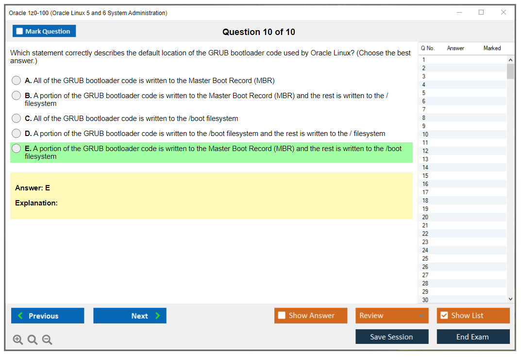 Dumps do Exame 1z0-100 - Oracle Linux 5 and 6 System Administration