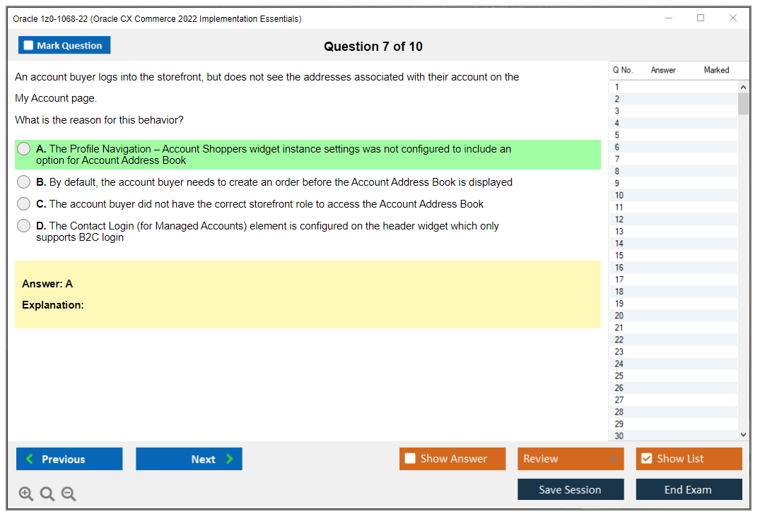 1z0-1068-22: Material de Estudo e Motor de Teste para Oracle CX Commerce 2022 Implementation Essentials