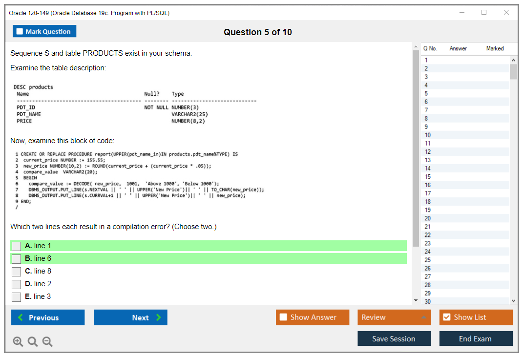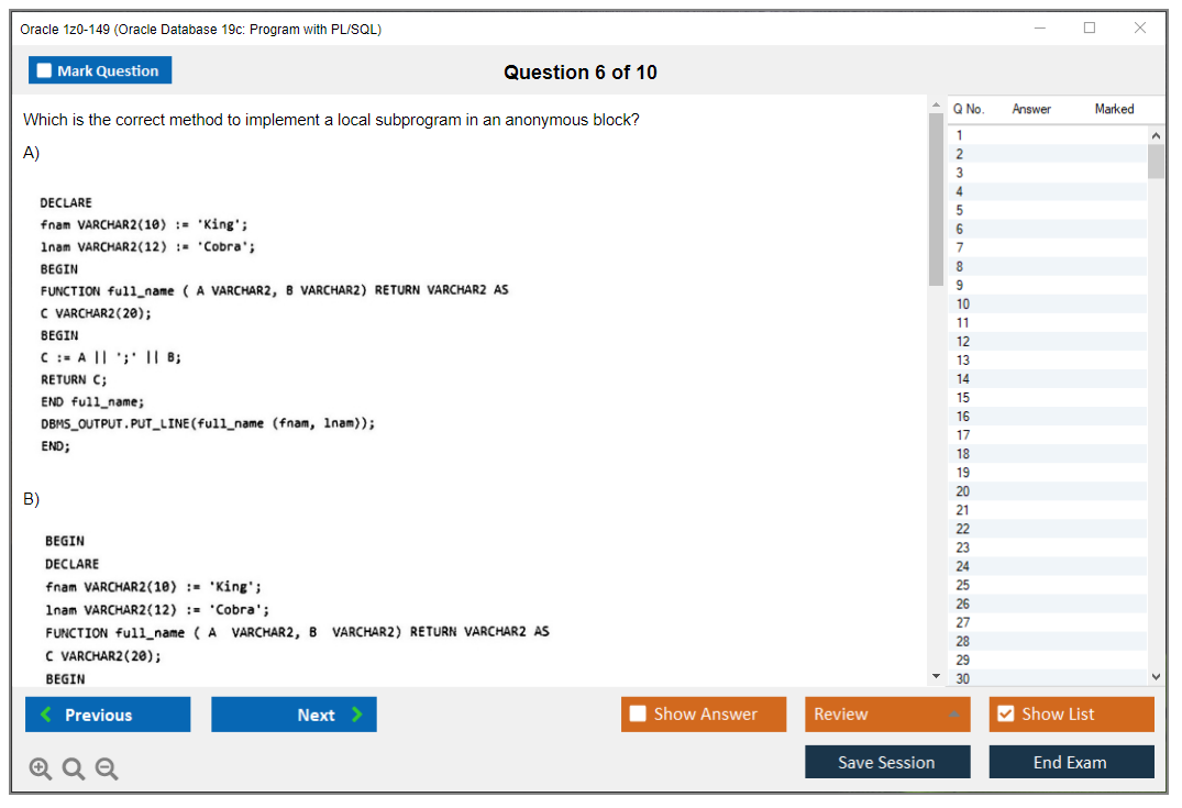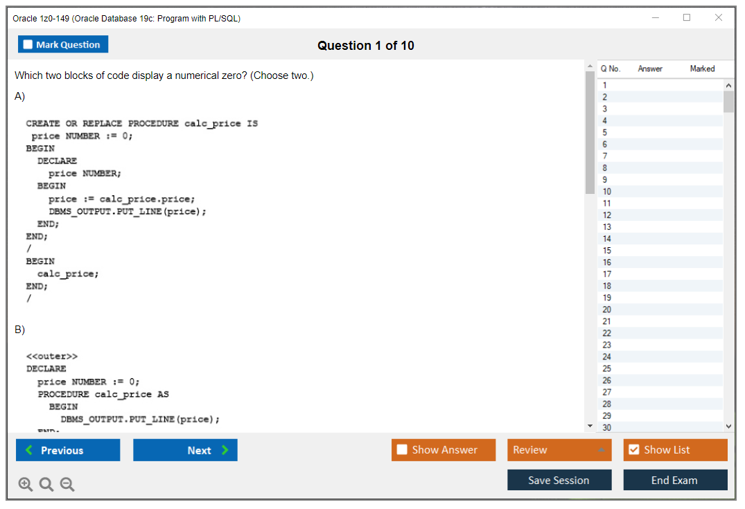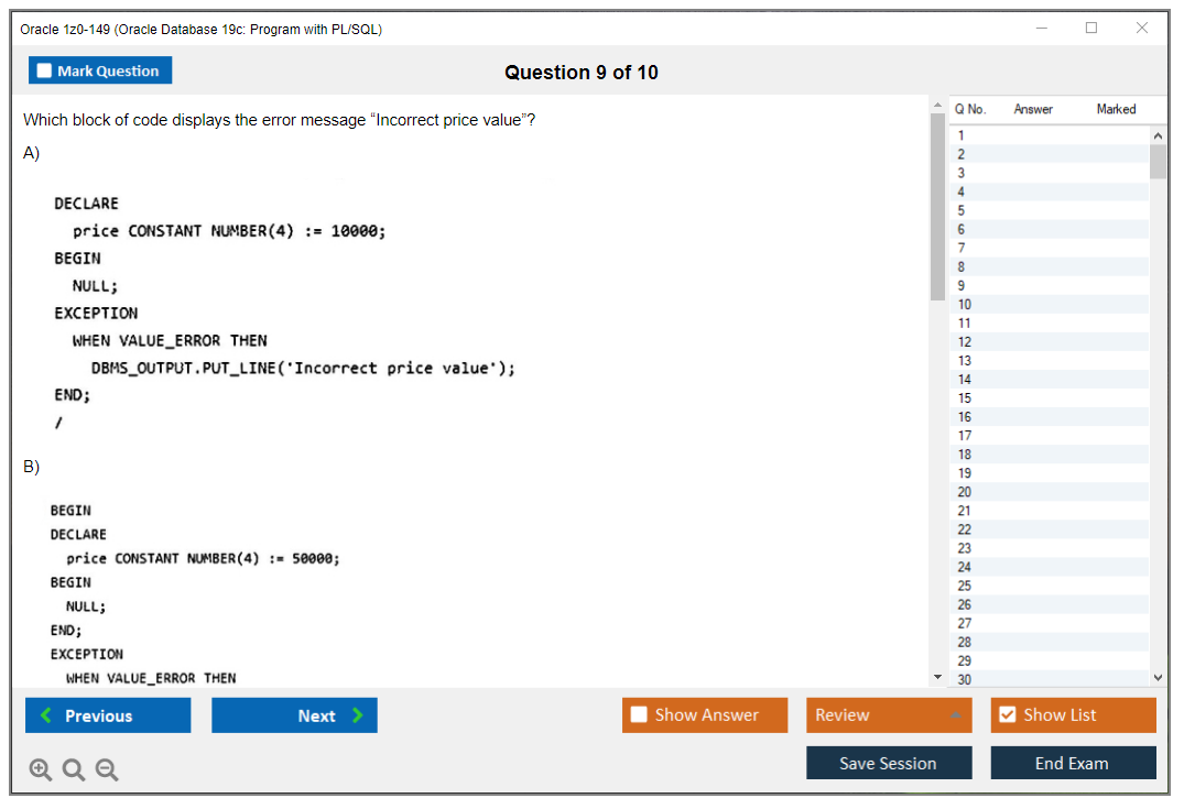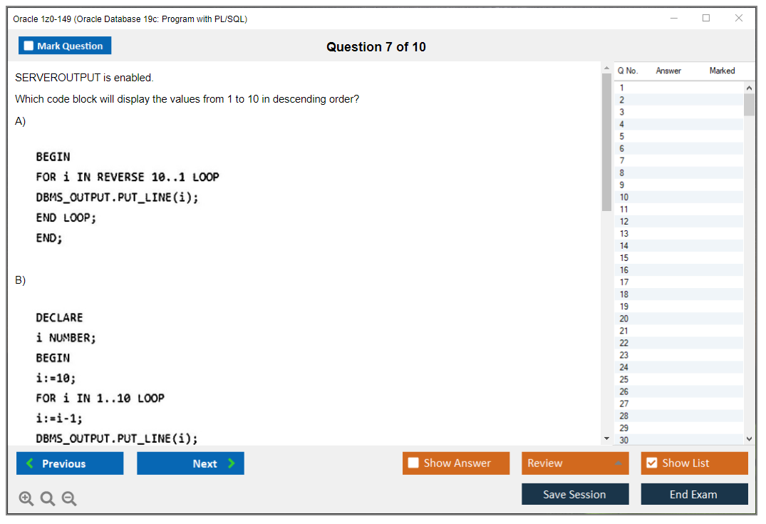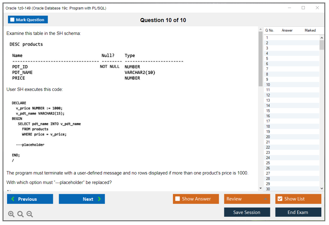 Dumps do Exame 1z0-149 - Oracle Database 19c: Program with PL/SQL