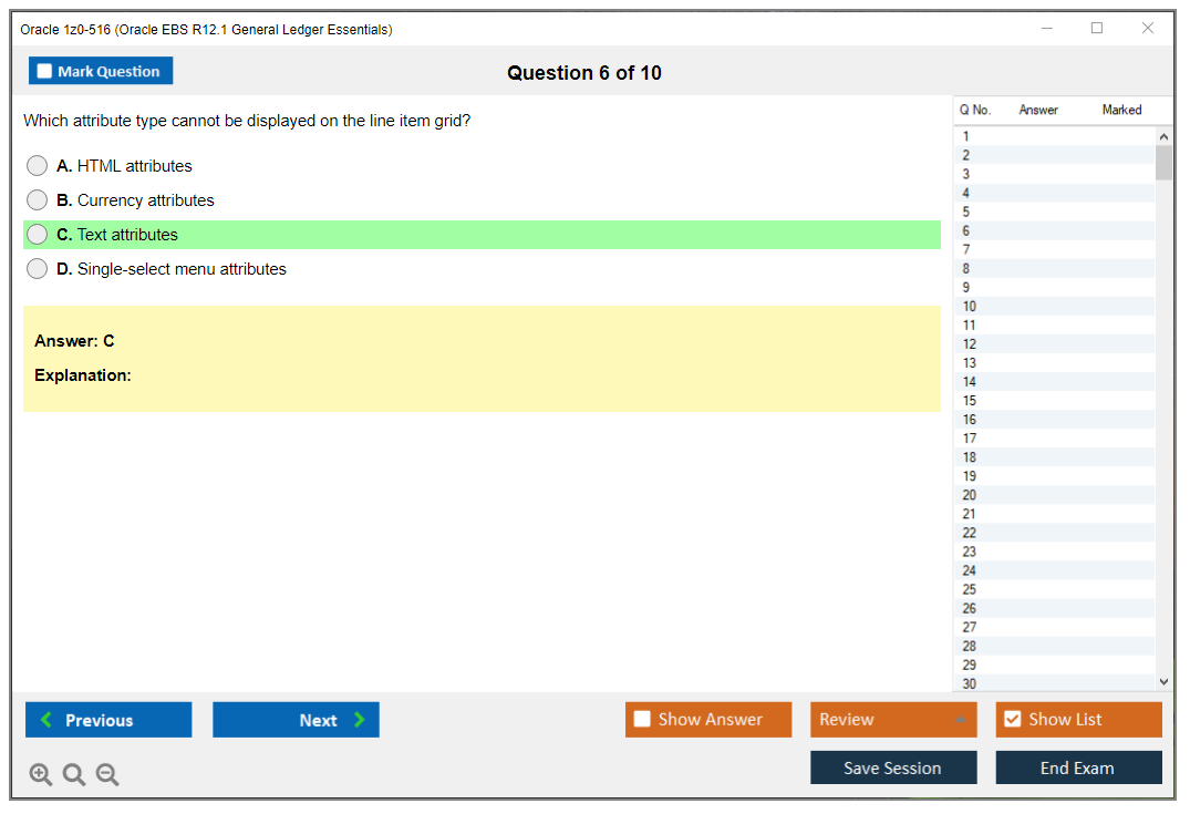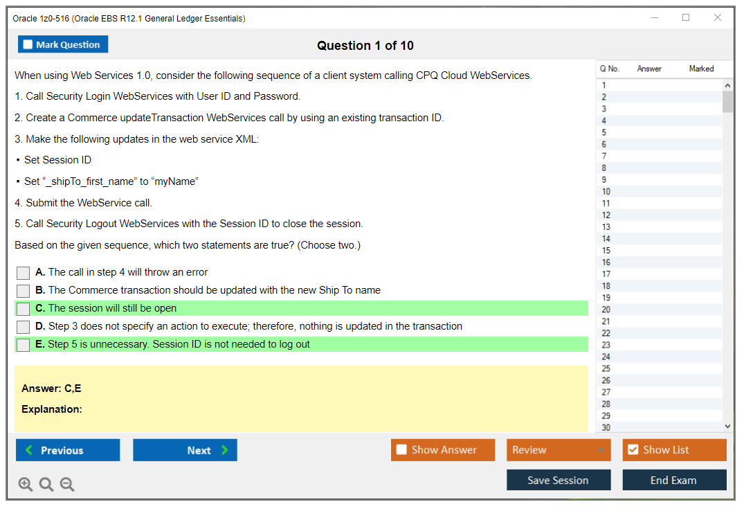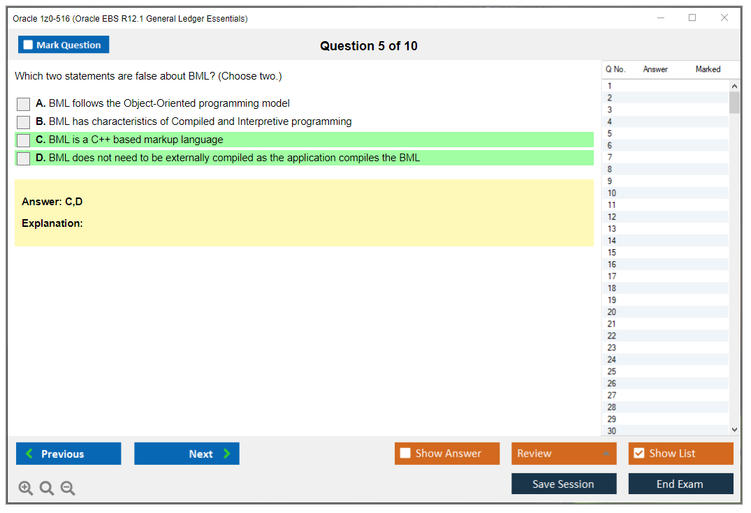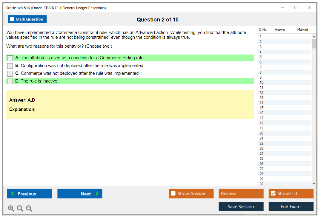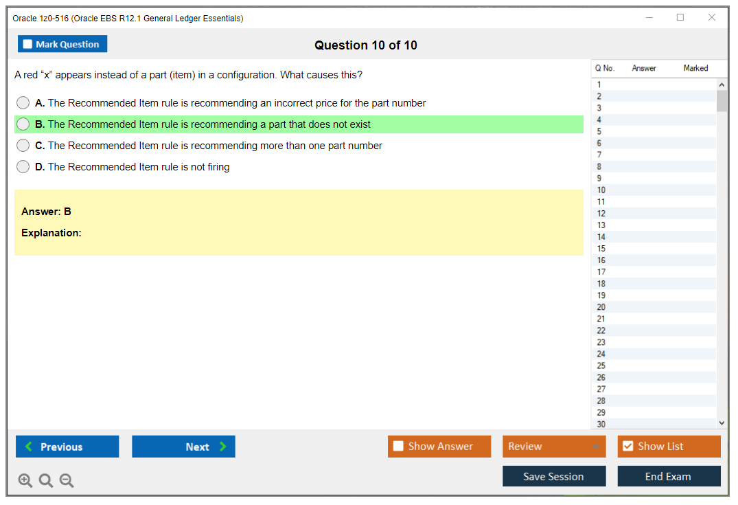 Os dumps 1z0-516 Oracle EBS R12.1 General Ledger Essentials da DumpsArena são bastante eficazes. Eles se concentram inteiramente nos elementos mais importantes do seu exame e fornecem as informações mais eficientes possíveis em um idioma interativo e fácil de entender. Considere impulsionar sua carreira com esta fórmula de aprovação de exame testada e mais autêntica. Exames cerebrais 1z0-516 são únicos e um tratamento para todo profissional de TI aspirante que deseja fazer um exame 1z0-516, apesar das limitações de tempo. Há uma grande chance de que a maioria dessas perguntas esteja no seu verdadeiro exame 1z0-516.
