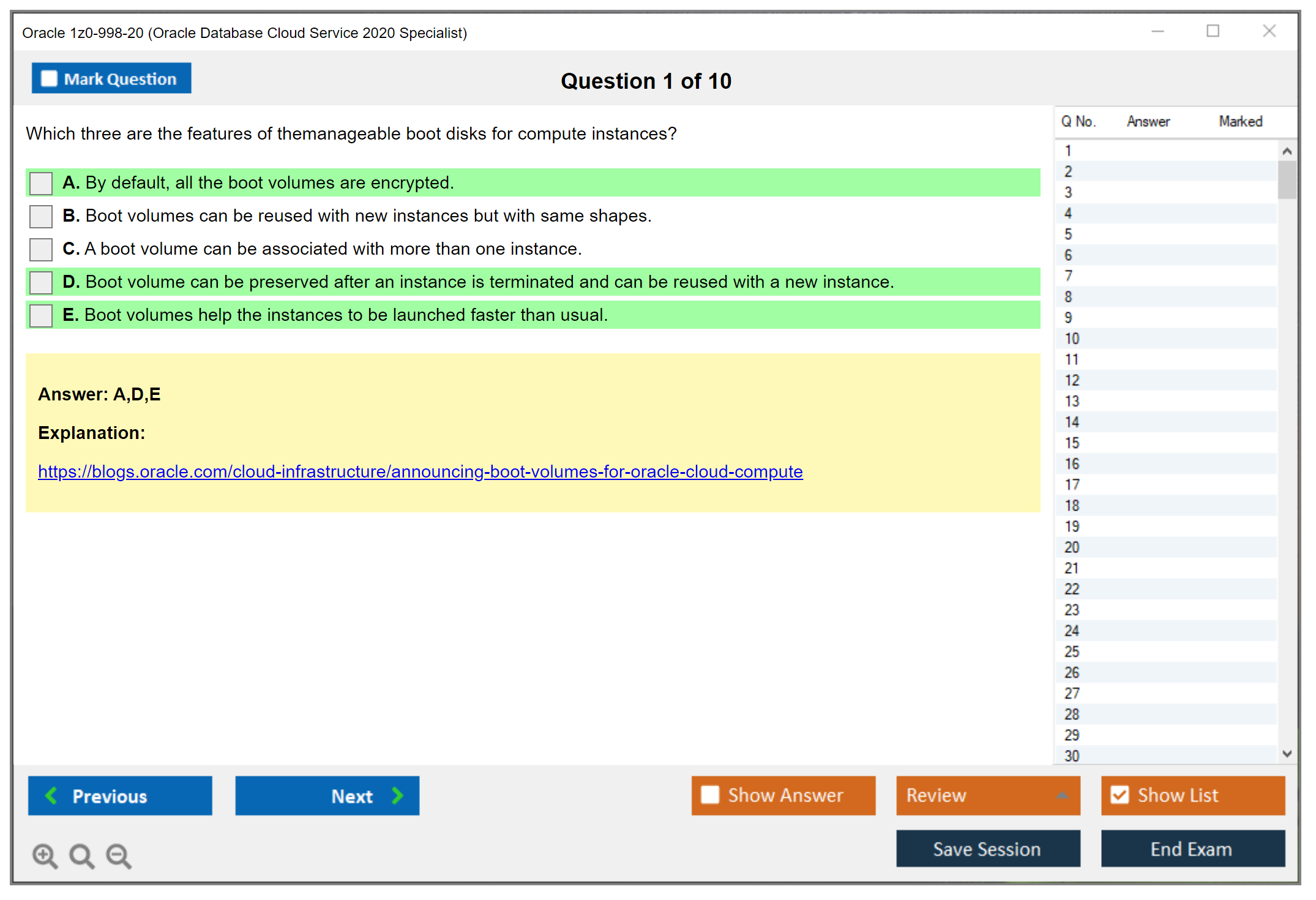 Os exames padrão são importantes se você nunca fez um exame paramétrico ou VUE antes. A precisão das perguntas e respostas é totalmente garantida por nossos especialistas certificados, e o número é suficiente para impactar sua aprovação no exame. DumpsArena.co inclui 90 dias de atualizações gratuitas. Isso é importante se você está fazendo um teste que é frequentemente atualizado. Material de estudo Real Dumps verificado por especialistas da Oracle.