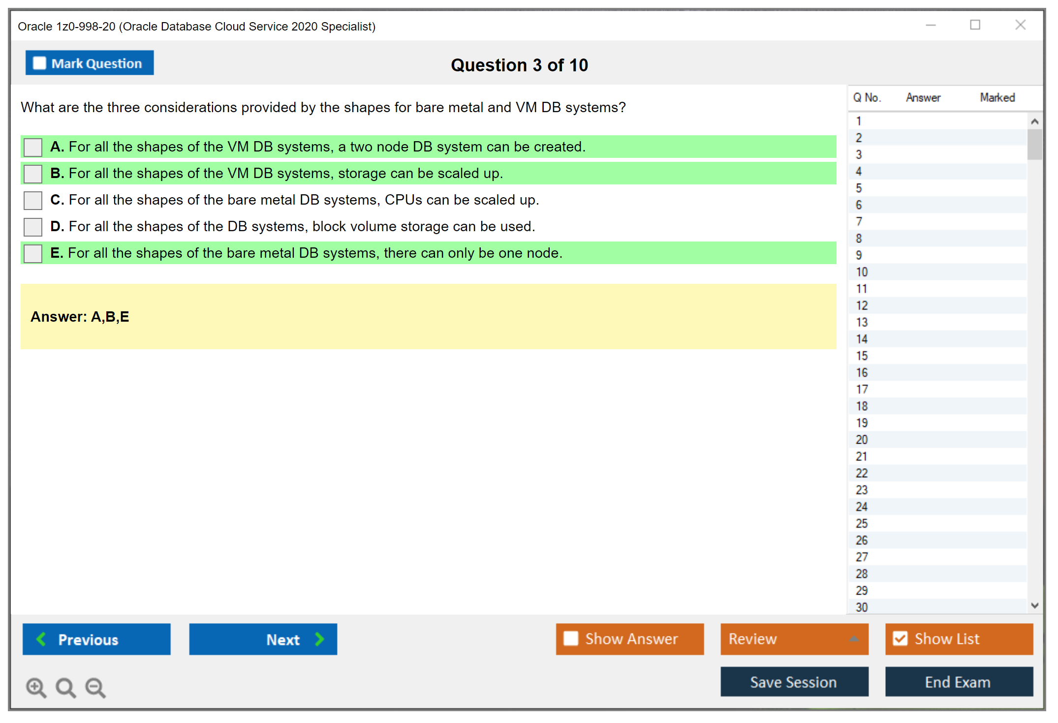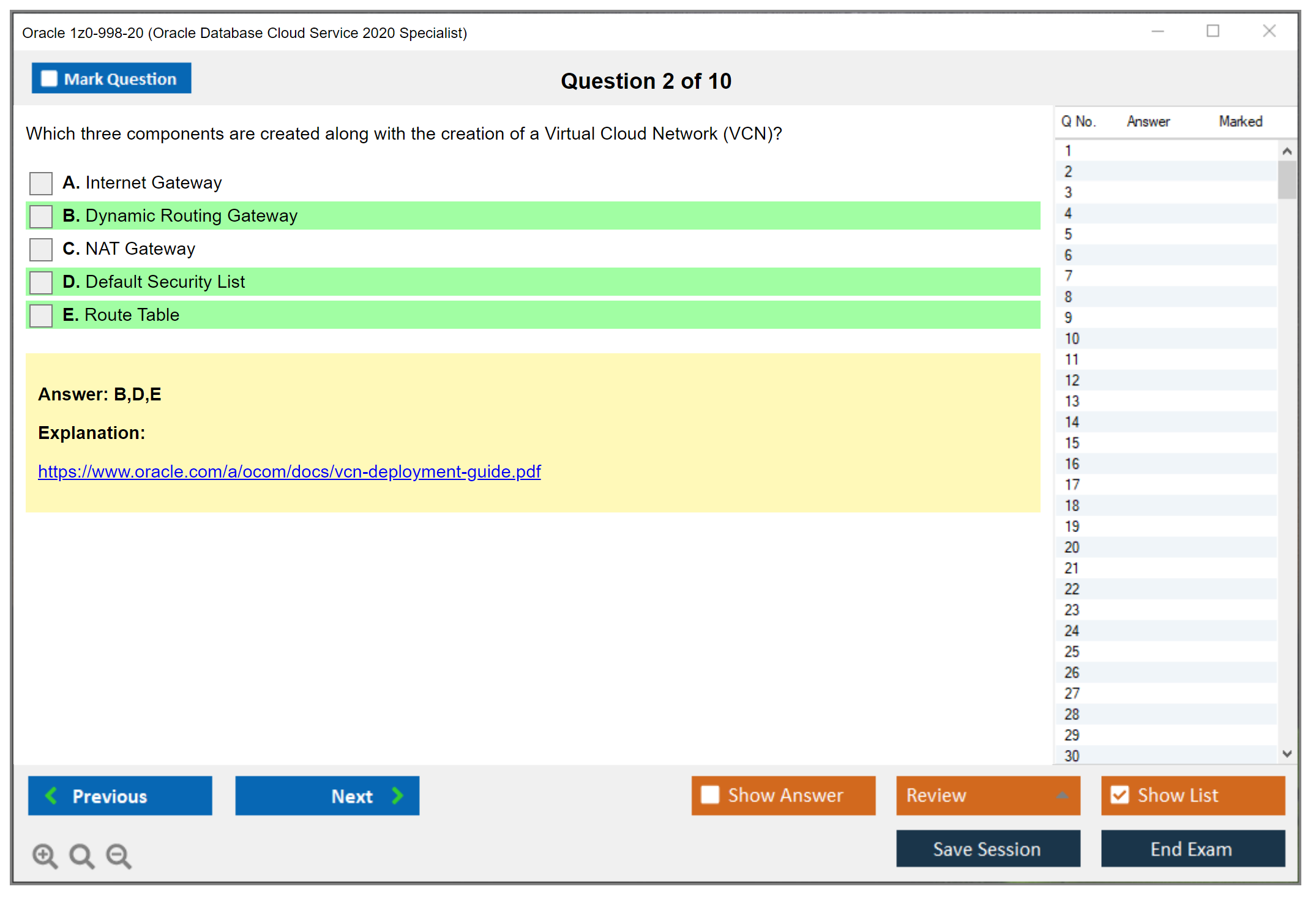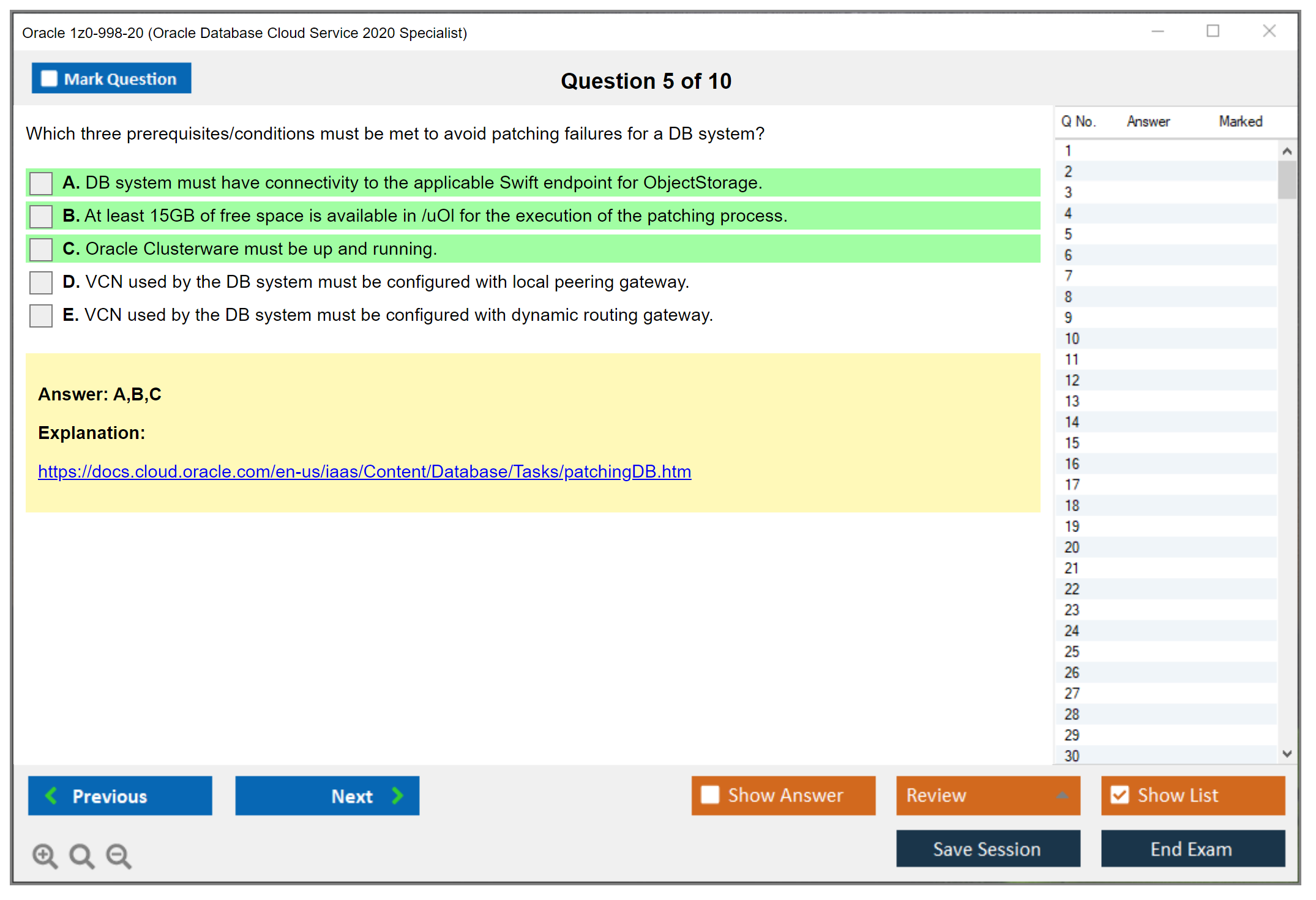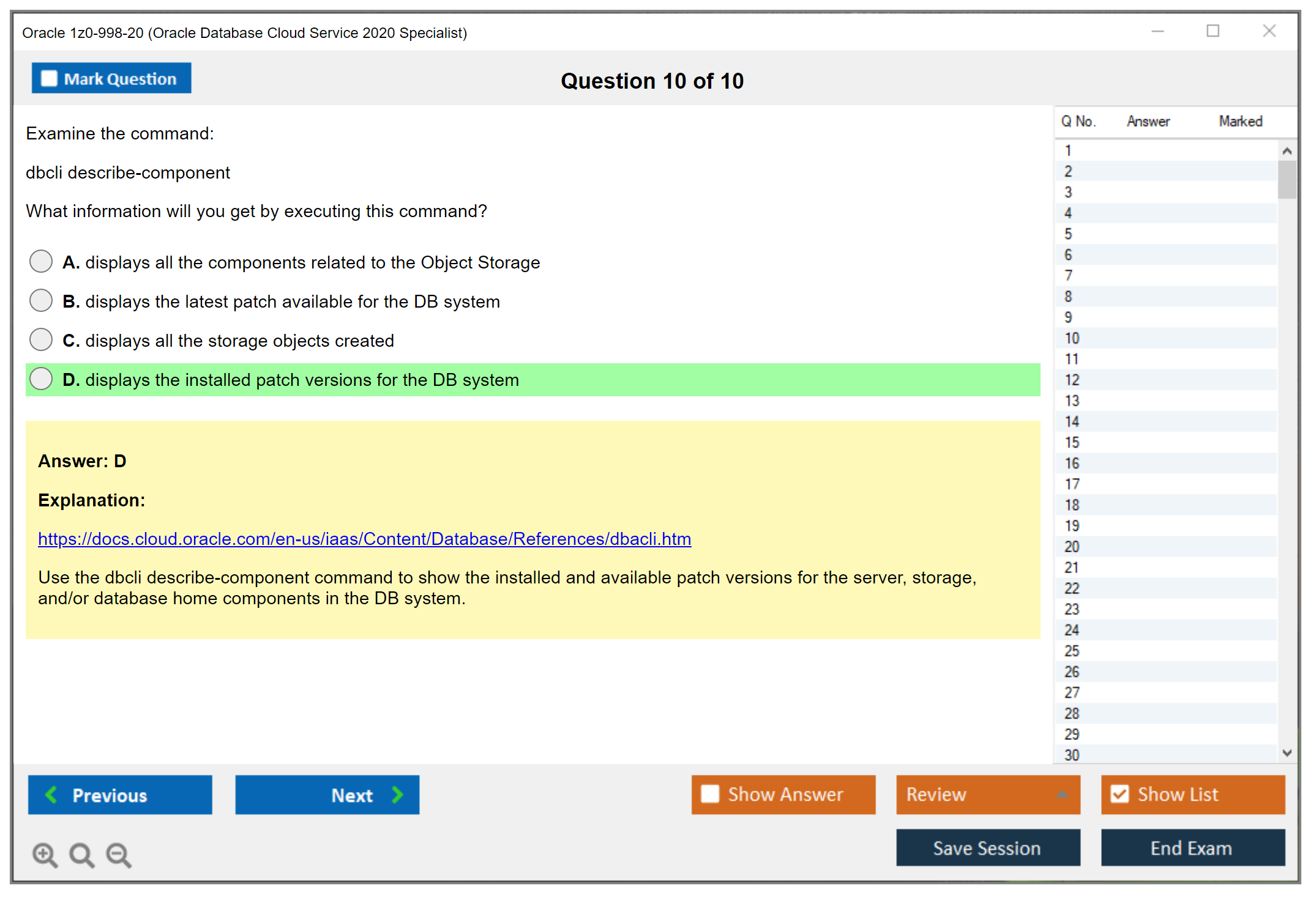 Os dumps 1z0-998-20 Oracle Database Cloud Service 2020 Specialist da DumpsArena são bastante eficazes. Eles se concentram inteiramente nos elementos mais importantes do seu exame e fornecem as informações mais eficientes possíveis em um idioma interativo e fácil de entender. Considere impulsionar sua carreira com esta fórmula de aprovação de exame testada e mais autêntica. Exames cerebrais 1z0-998-20 são únicos e um tratamento para todo profissional de TI aspirante que deseja fazer um exame 1z0-998-20, apesar das limitações de tempo. Há uma grande chance de que a maioria dessas perguntas esteja no seu verdadeiro exame 1z0-998-20.