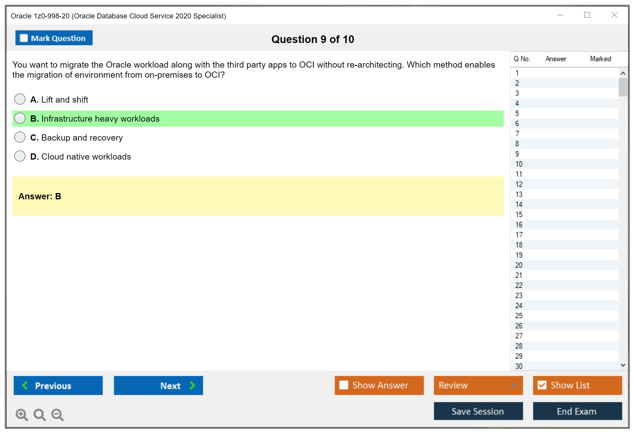 Nunca foi tão fácil chegar à qualificação profissional mais valiosa do mundo como agora! As perguntas e respostas do treinamento do Oracle 1z0-998-20 Oracle Database Cloud Service 2020 Specialist da DumpsArena são a escolha mais adequada para garantir seu sucesso em apenas uma tentativa. Você certamente pode responder a todas as perguntas do exame fazendo nossos dumps do exame Oracle 1z0-998-20 com frequência. Além disso, aprimore suas habilidades, pratique testes simulados usando nosso software Testing Engine de braindumps Oracle 1z0-998-20 e supere o medo de reprovar no exame. Nossos dumps Oracle 1z0-998-20 são o material de estudo mais preciso, confiável e eficaz que determinará a melhor opção para seu tempo e dinheiro.