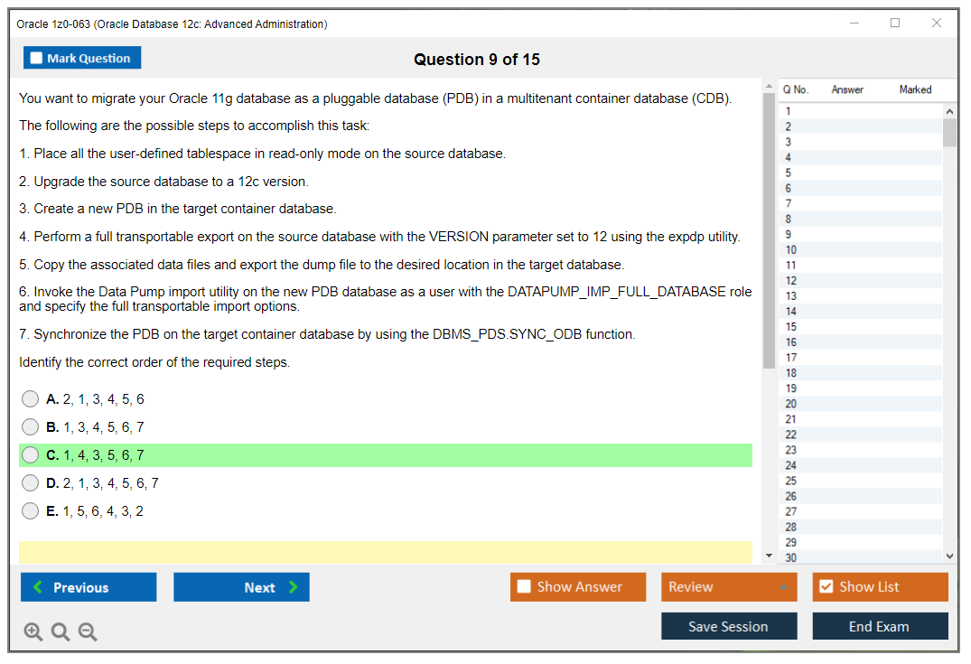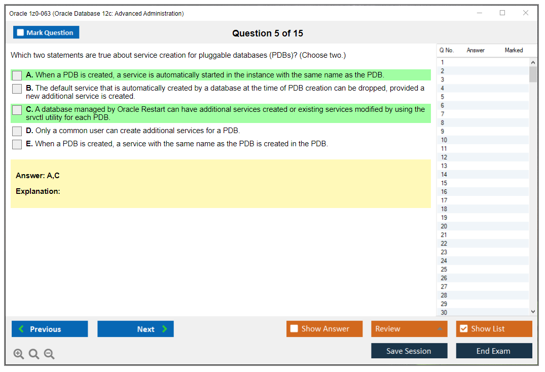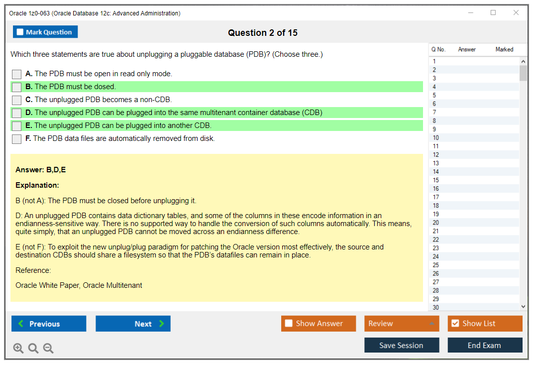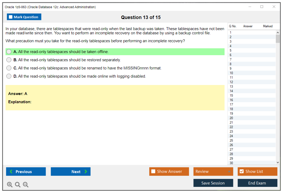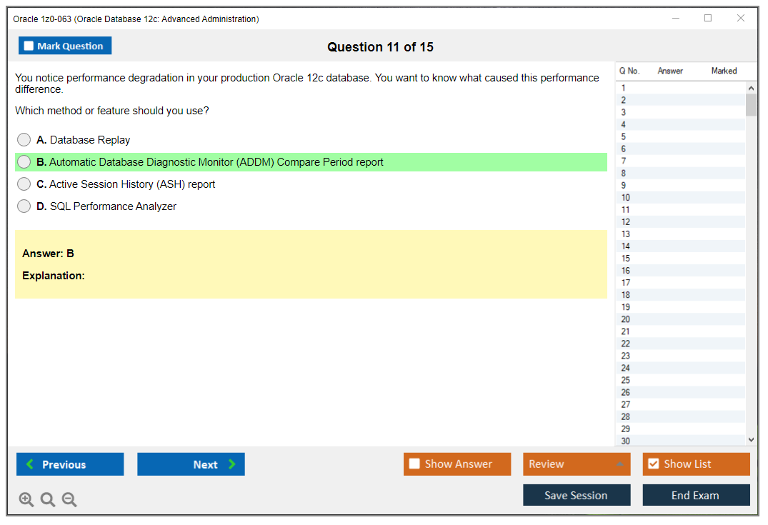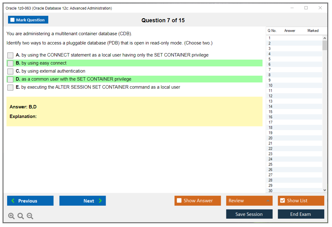 Практический тест 1z0-063 от DumpsArena позволит вам изучить все разделы учебного плана, не оставив важных моментов без внимания. Тем не менее эти 1z0-063 дампы предоставляют вам эксклюзивный, компактный и полный контент, который экономит ваше драгоценное время на поиск учебного контента и избегание траты энергии на ненужный, скучный и полный предварительного контента. Экзаменатор 1z0-063 Oracle вопросы ответы DumpsArena гораздо эффективнее знакомят с форматом и характером вопросов 1z0-063 на бумаге по сертификации ИТ.