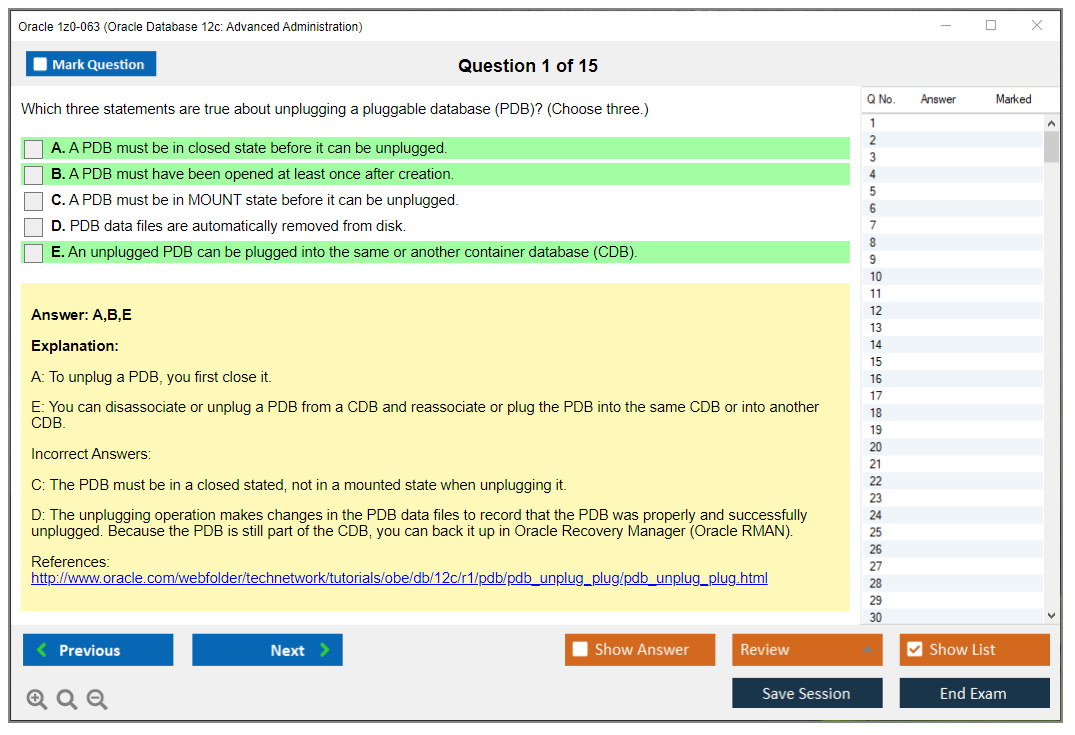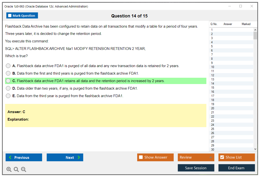Примечание: Oracle 1z0-063 (Oracle Database 12c: Advanced Administration) больше не будет обновляться.
