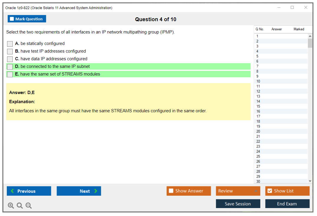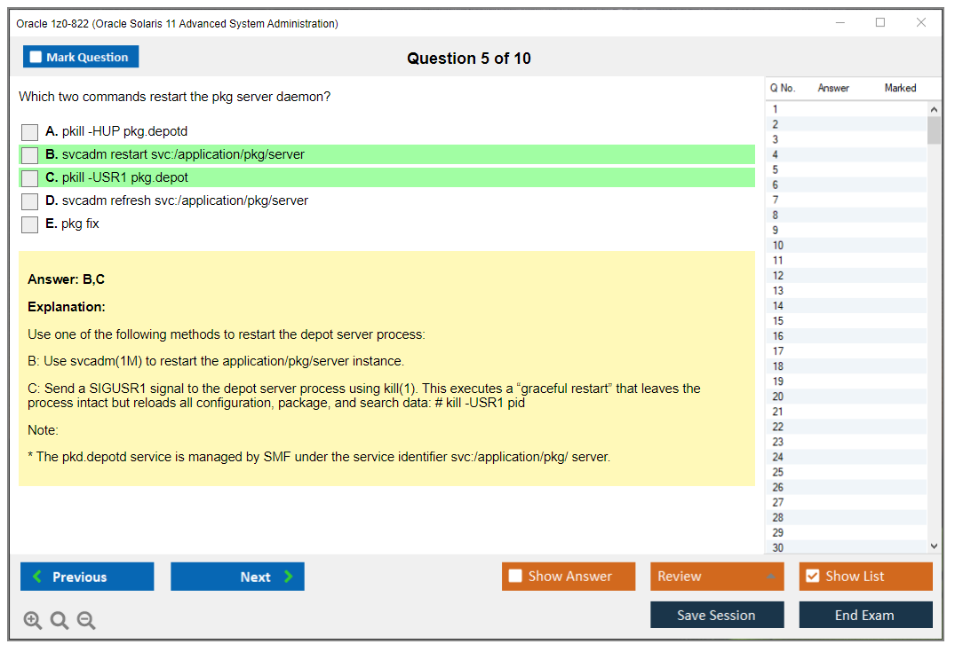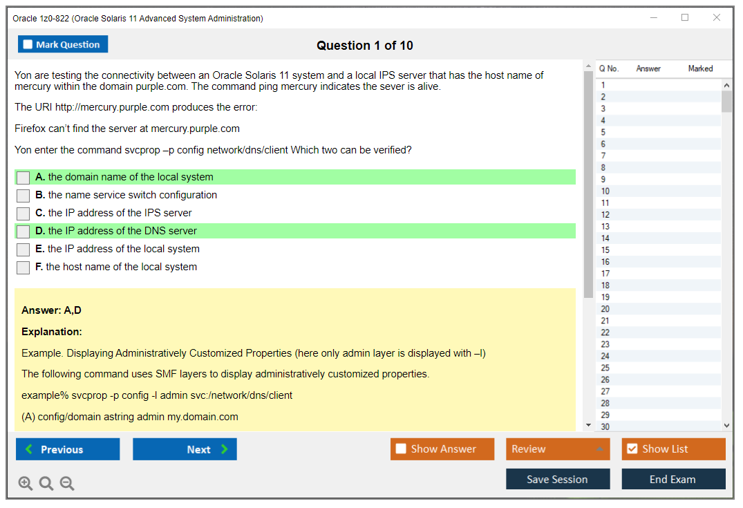 DumpsArena 1z0-822 Oracle Solaris 11 Advanced System Administration дампы действительно эффективны. Они сосредотачиваются исключительно на самых важных элементах вашего экзамена и предоставляют вам наиболее эффективную информацию наиболее доступным и понятным языком. Рассмотрите возможность продвижения своей карьеры с этой проверенной и наиболее достоверной формулой сдачи экзамена. Существует большая вероятность того, что большинство из этих вопросов вы получите на своем реальном экзамене 1z0-822.